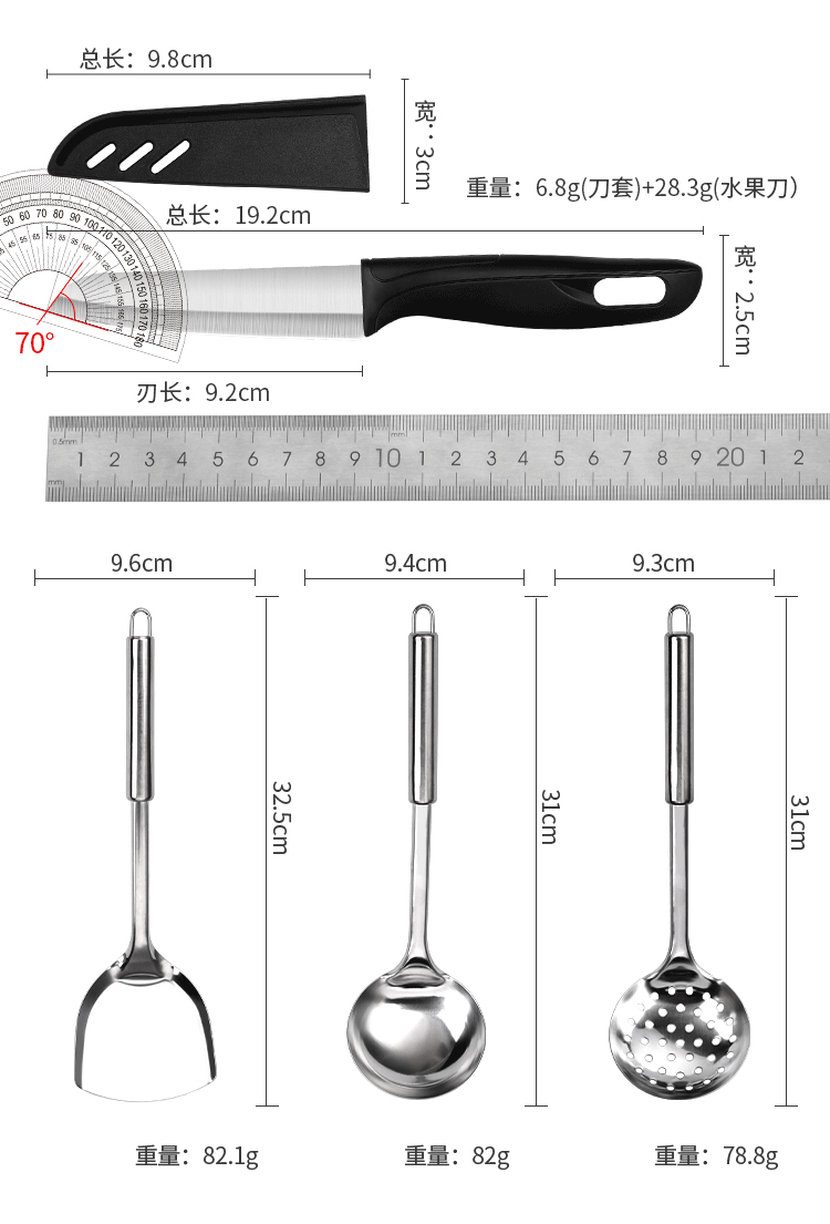 Palice seven-piece knife set, household kitchen knife and cutting board combination, kitchen chopping knife, peeling fruit knife, spatula set