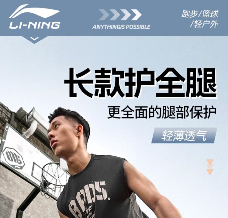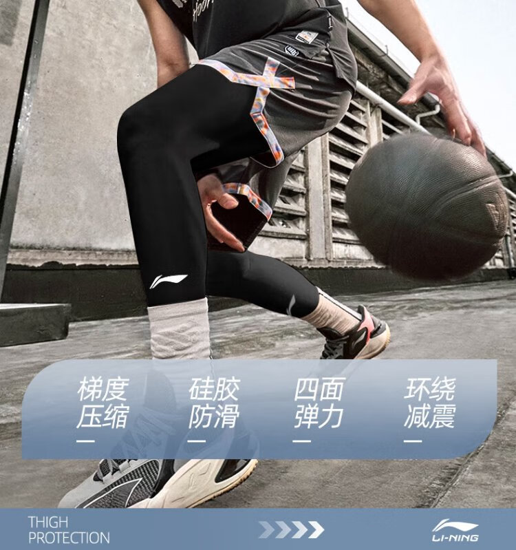 Li Ning leggings, basketball sports thigh protection, long calf protection, sports running men's three-point knee pads, breathable and pressurized