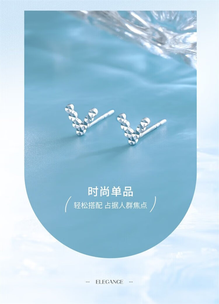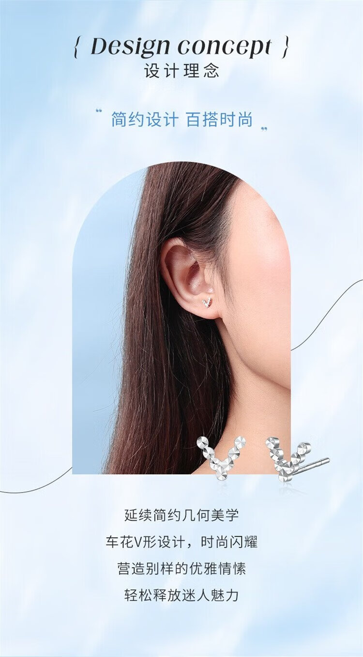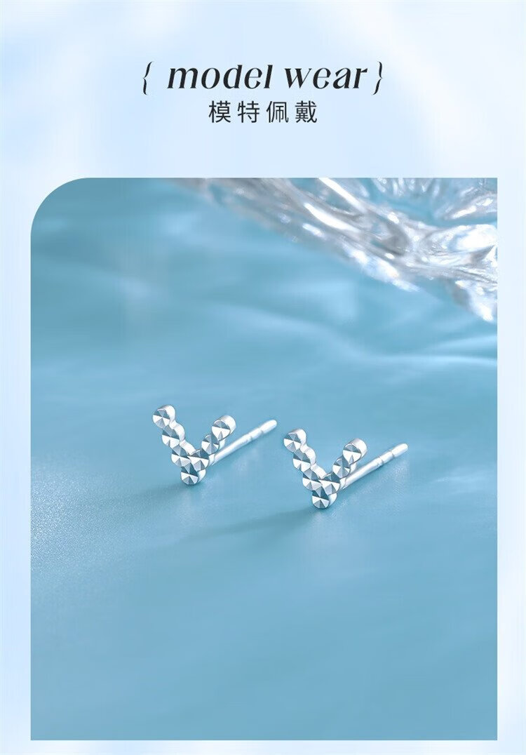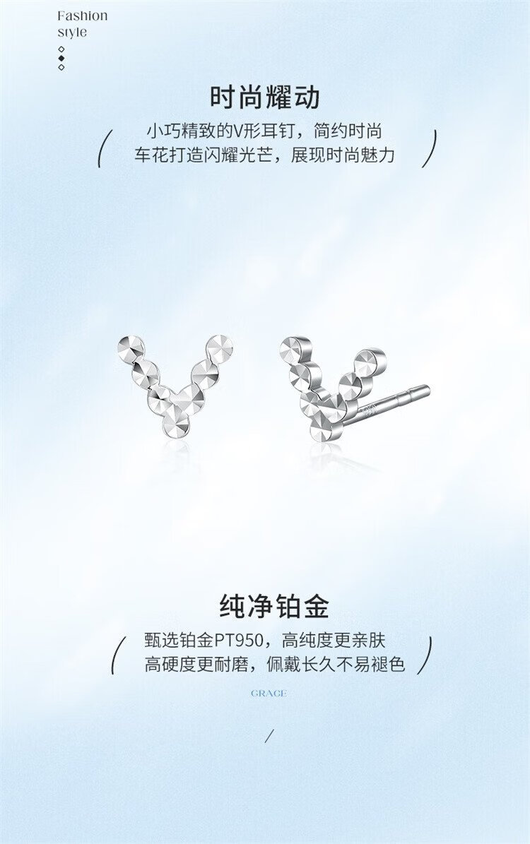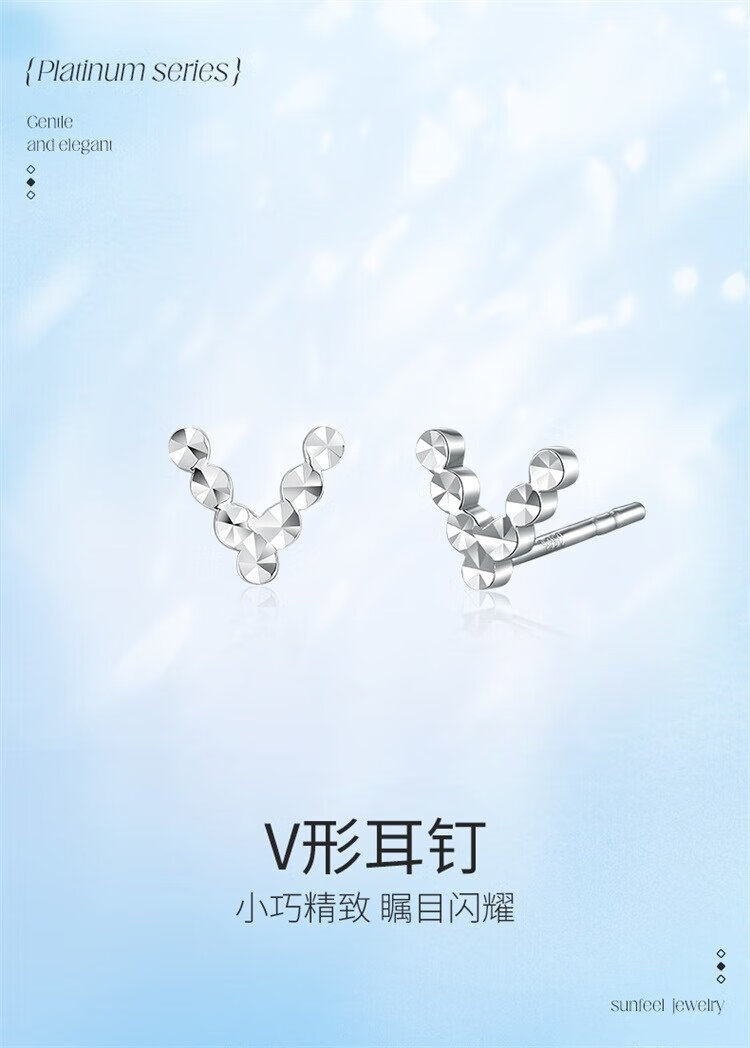 Safir birthday gift platinum earrings for women PT950 sparkling car flower V-shaped earrings for girlfriend, one pair, about 1 gram