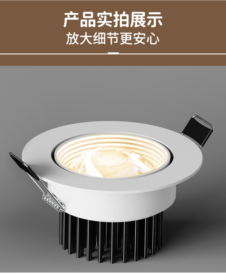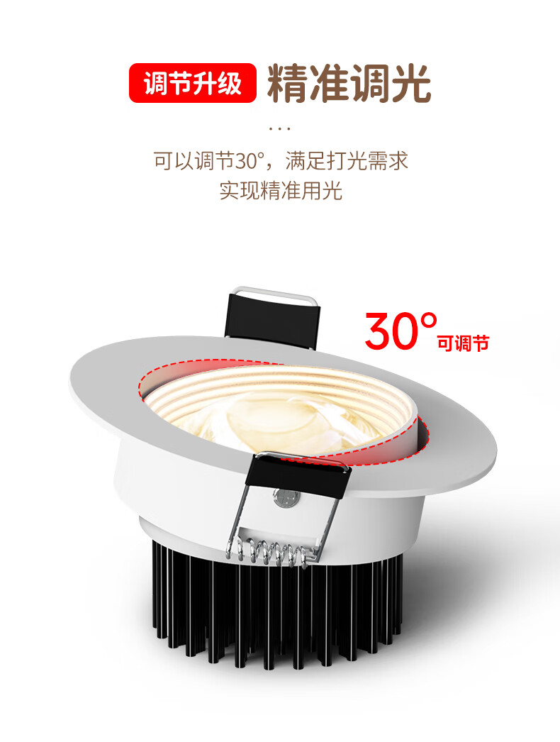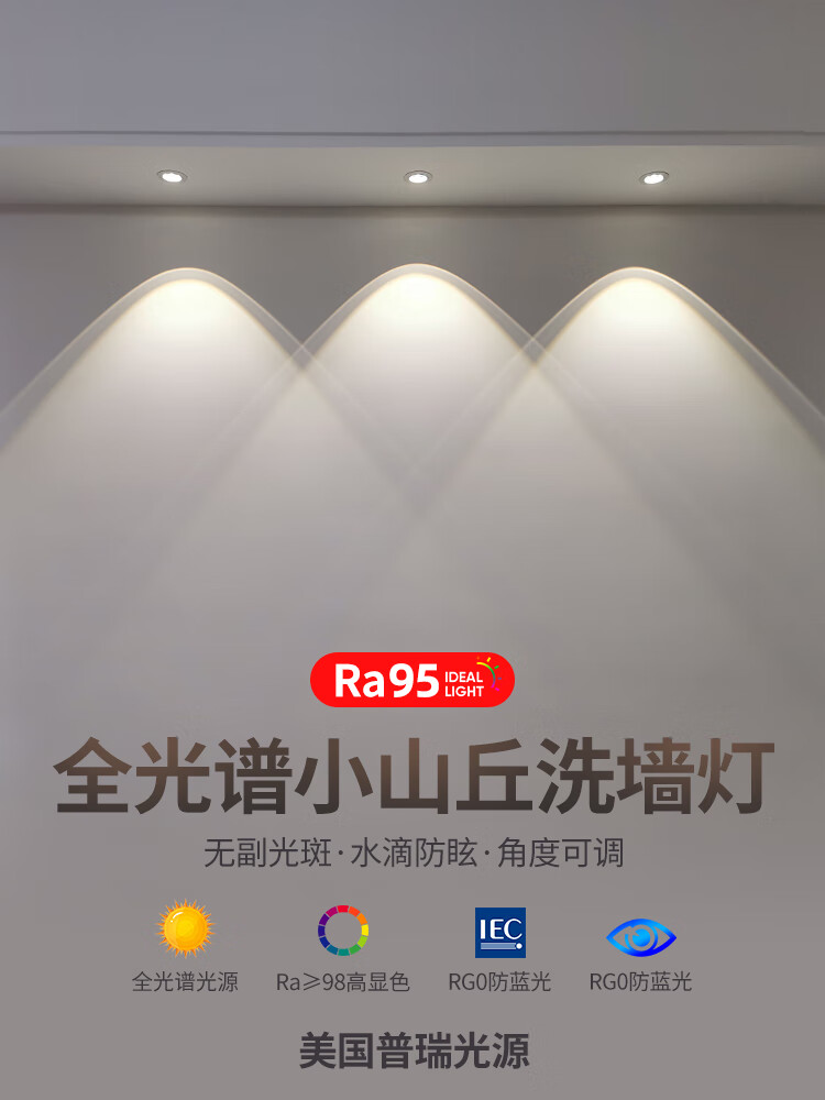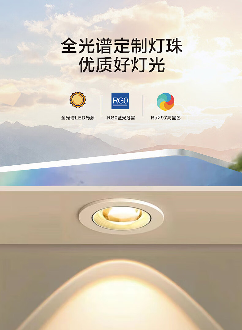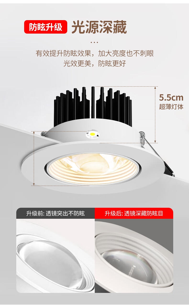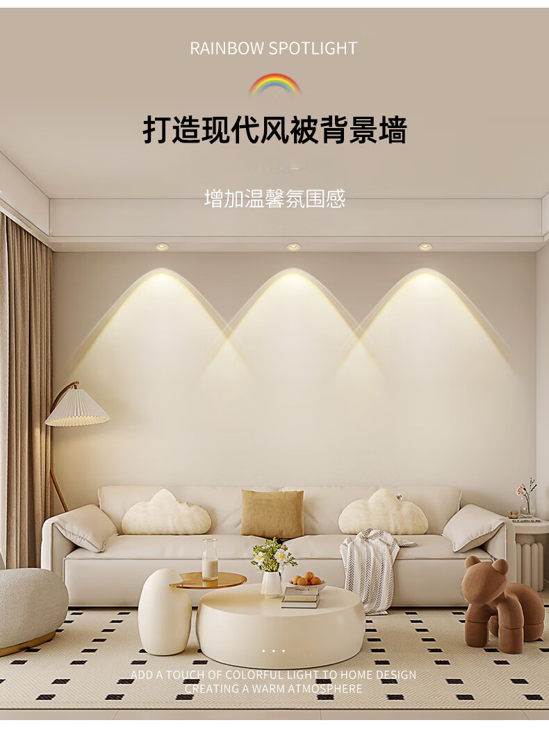Whale and Light Hill Spotlight Recessed Spotlight LED Ceiling Light Rainbow Spotlight Anti-Glare Spotlight Wall Washer All White-Rainbow Spotlight-Three Color Light 12-W Opening Hole 7-8cm