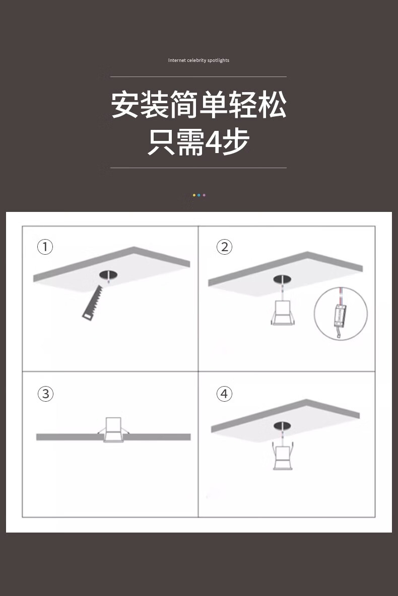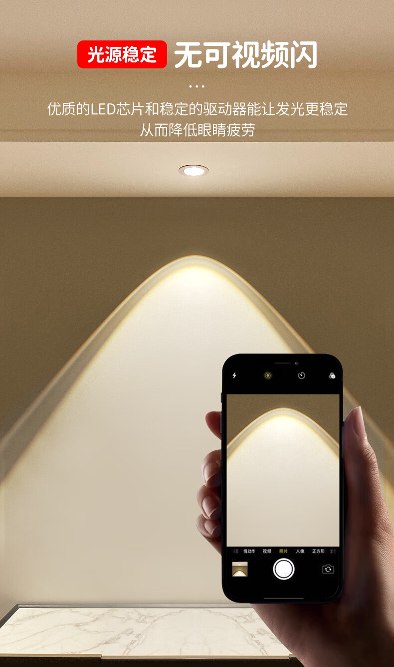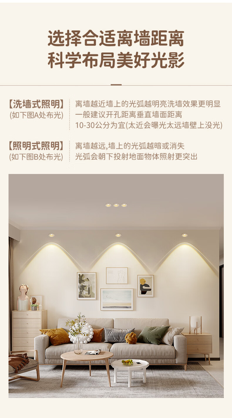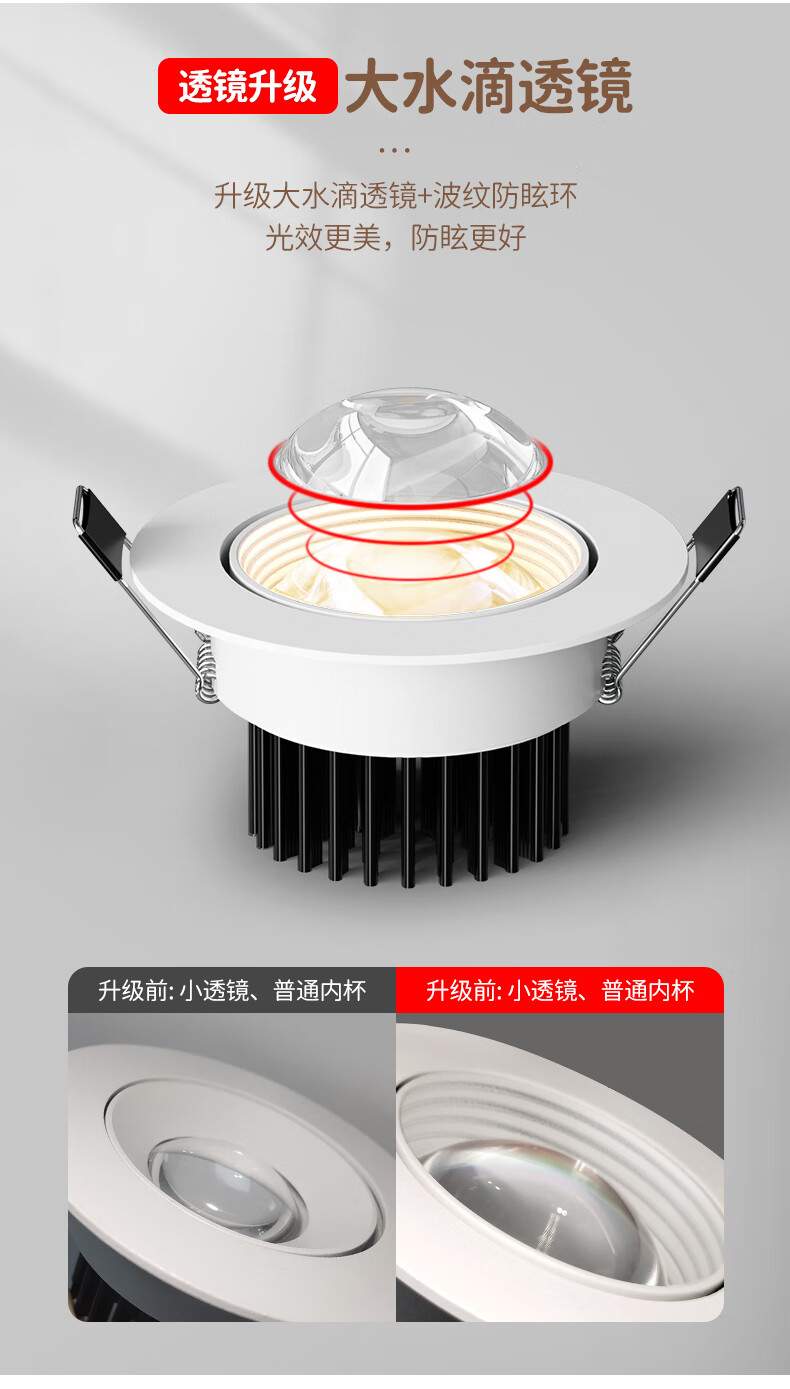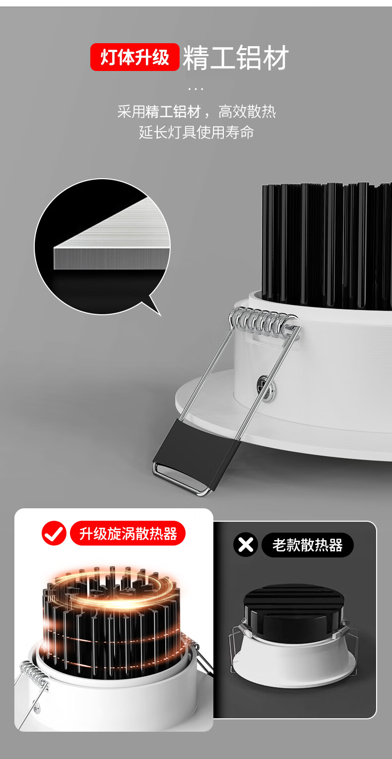 Whale and Light Hill Spotlight Recessed Spotlight LED Ceiling Light Rainbow Spotlight Anti-Glare Spotlight Wall Washer All White-Rainbow Spotlight-Three Color Light 12-W Opening Hole 7-8cm