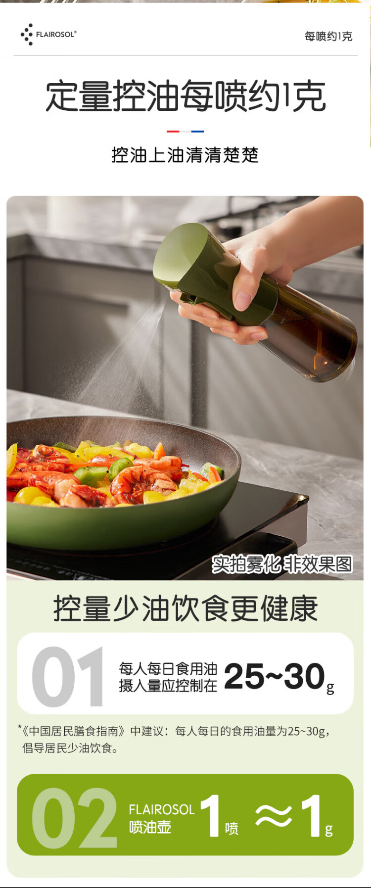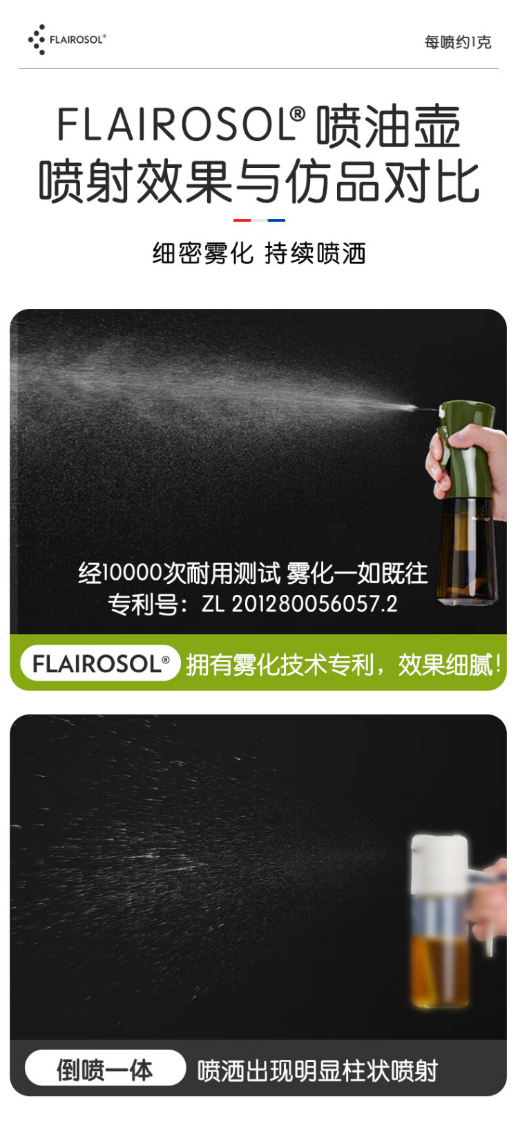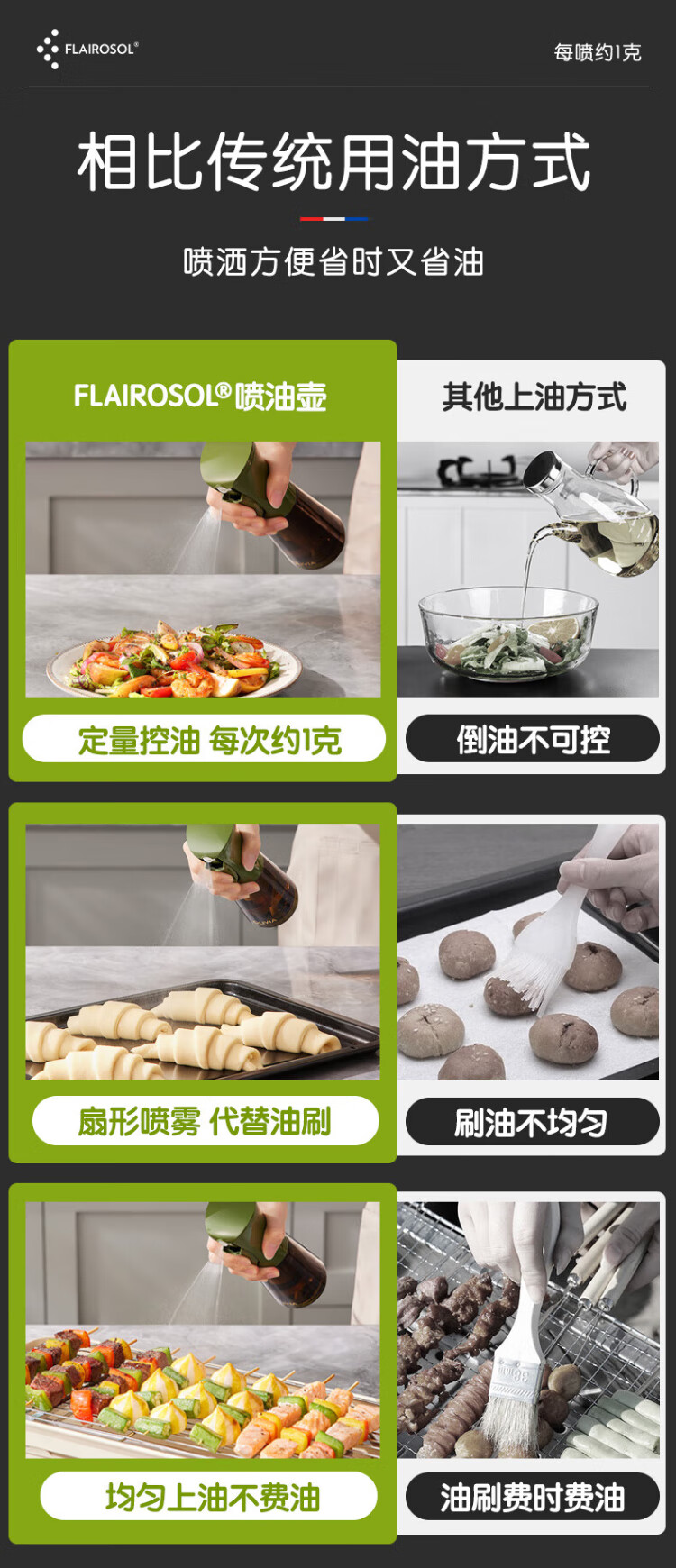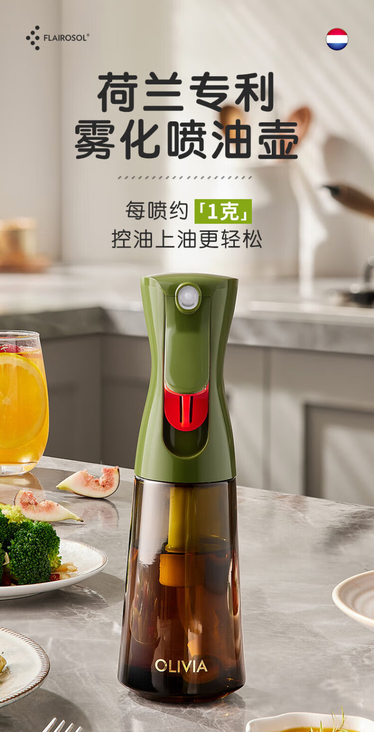 FLAIROSOL new oil spray bottle Dutch patented atomized oil spray pot air fryer home kitchen green oil control bottle 200ML