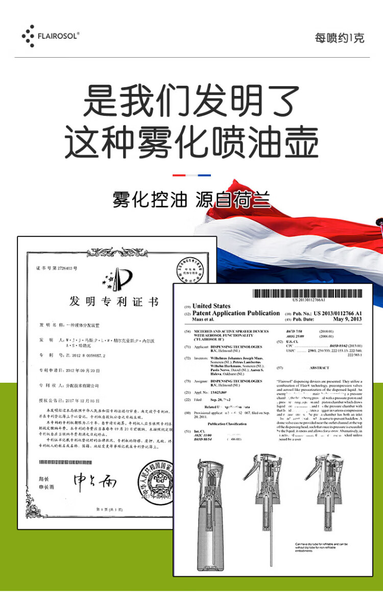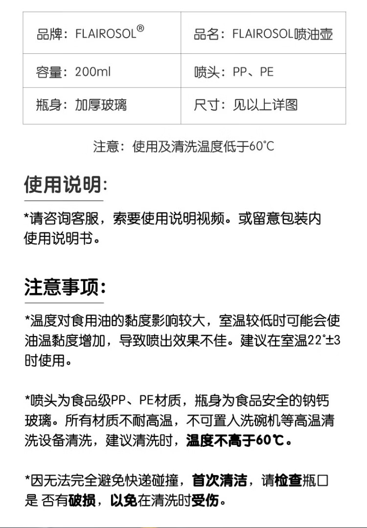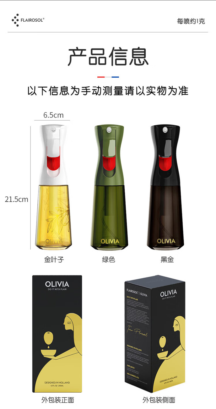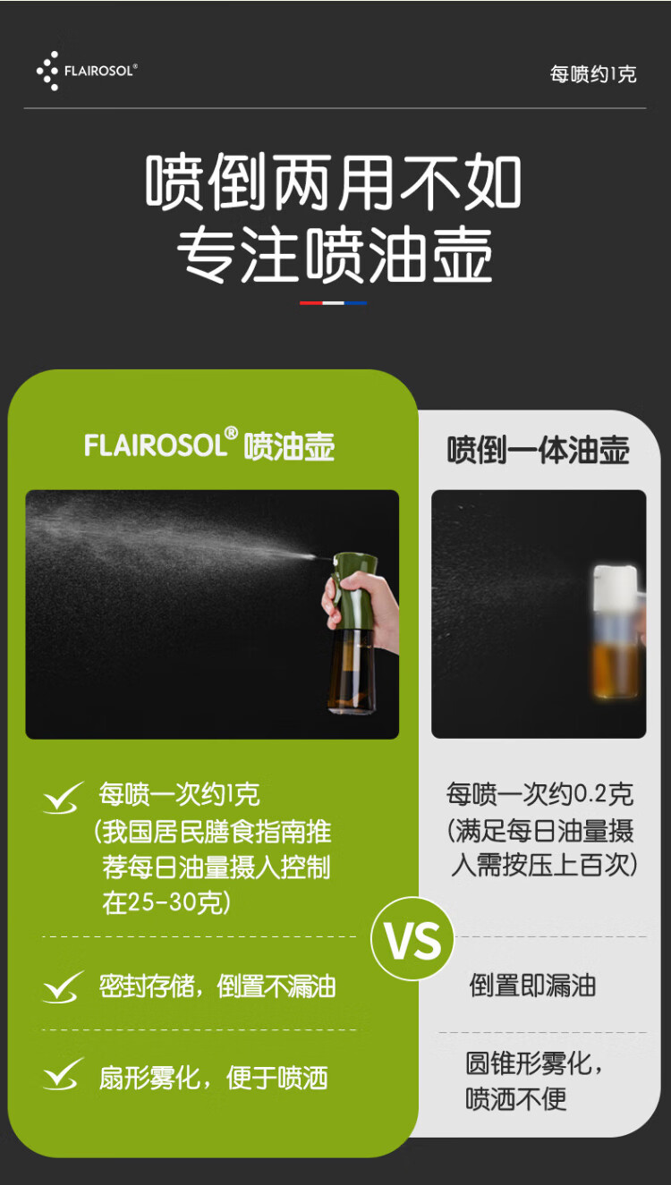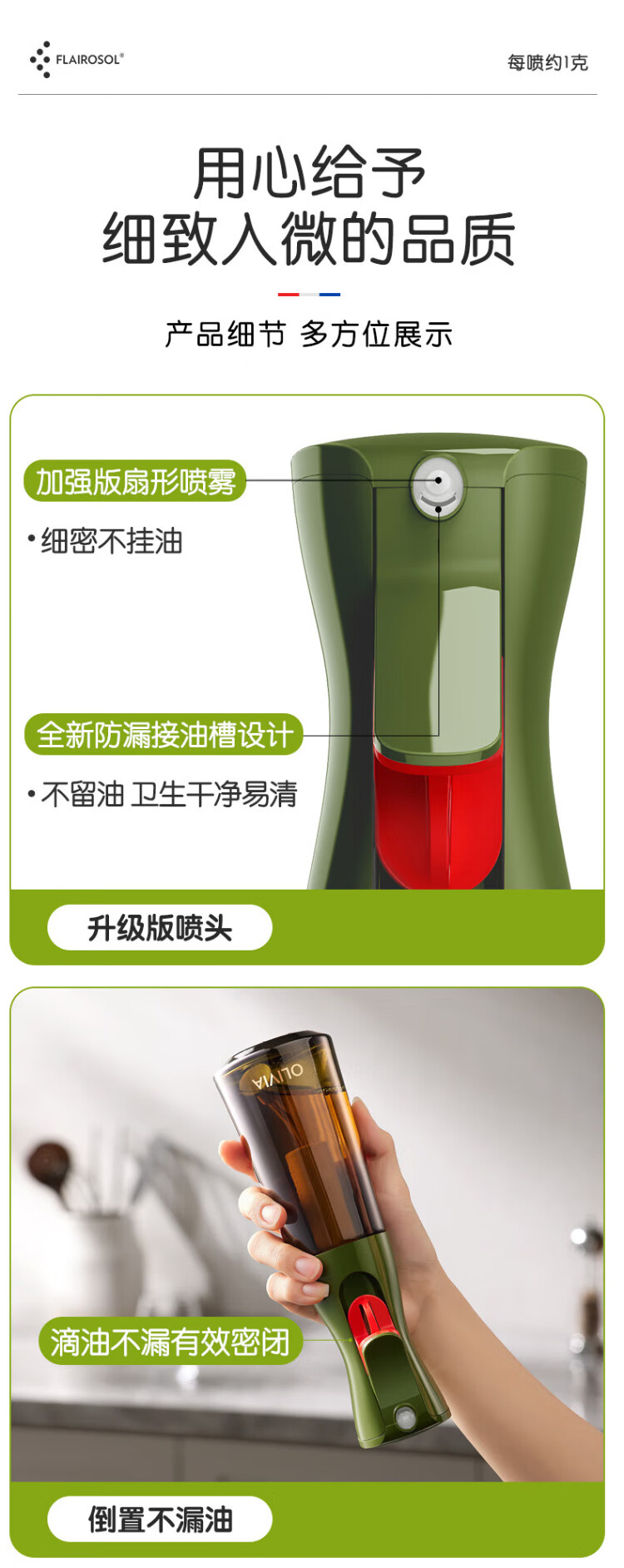 FLAIROSOL new oil spray bottle Dutch patented atomized oil spray pot air fryer home kitchen green oil control bottle 200ML
