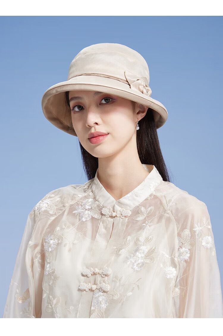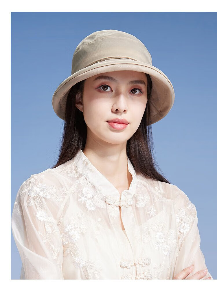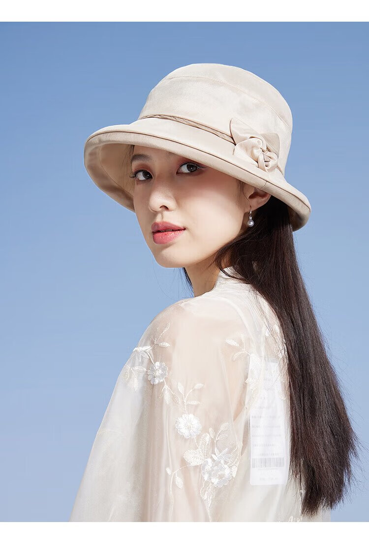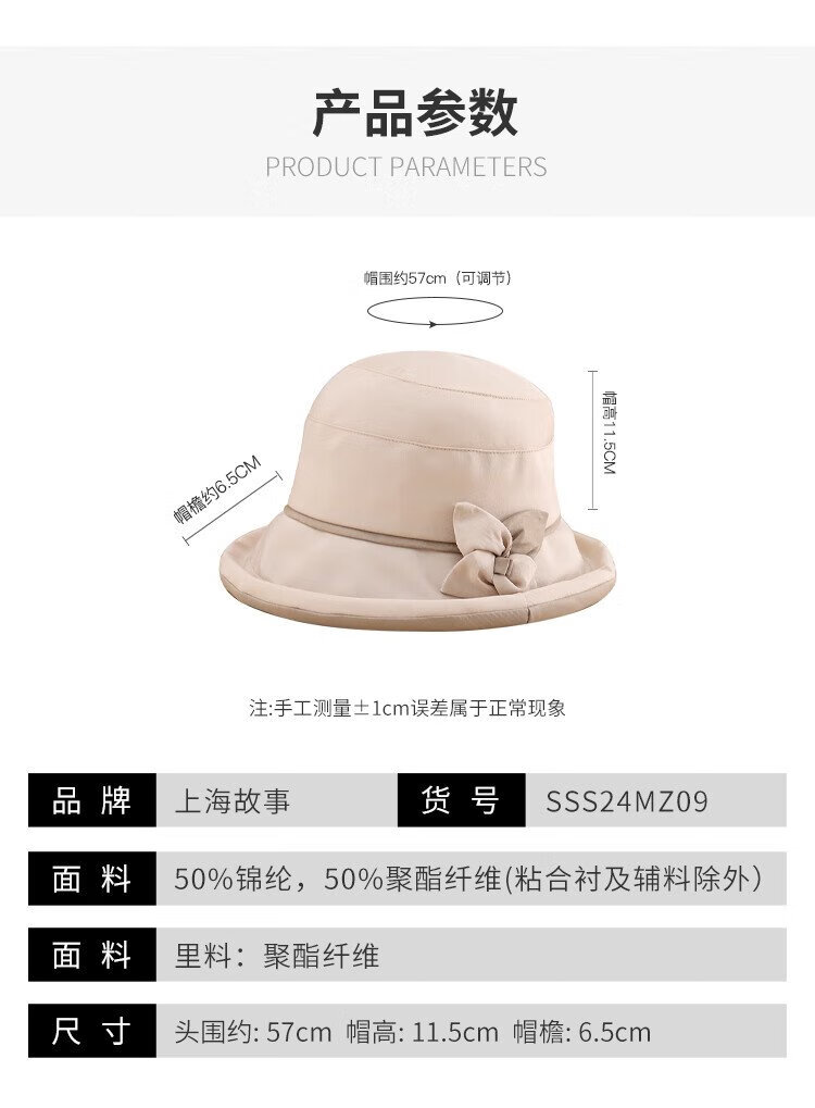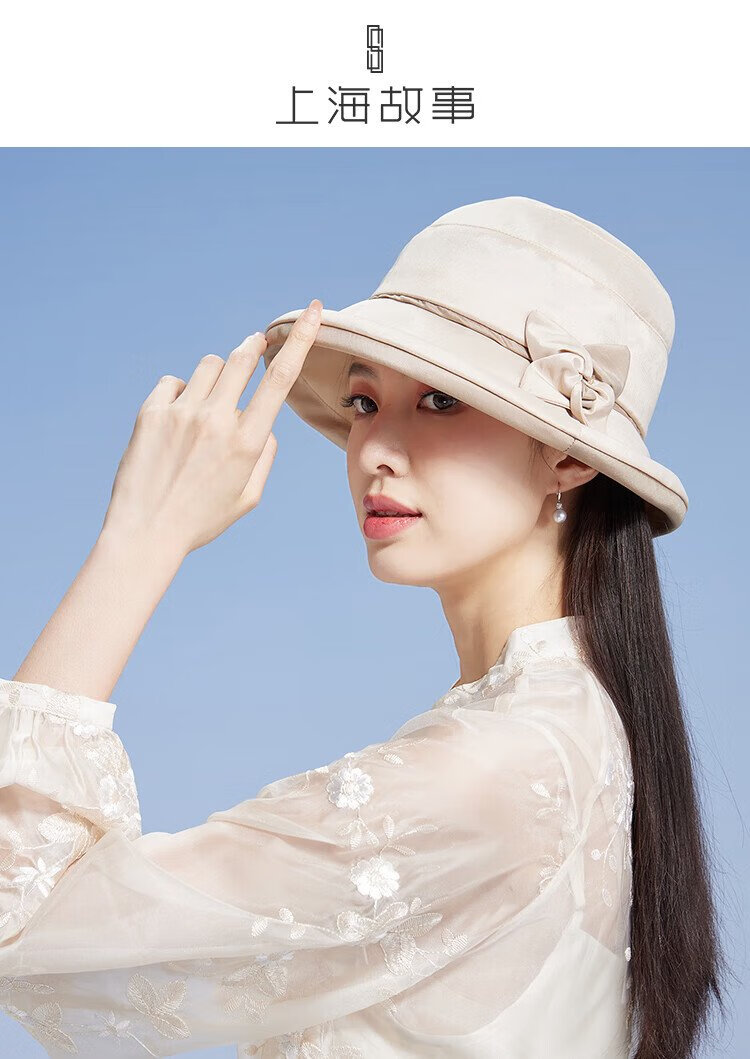 Shanghai Story Hat Women's Spring and Summer Sun Protection Fisherman Hat Two-Color Three-dimensional Flower Roll Brim Outdoor Foldable Sun Hat Khaki