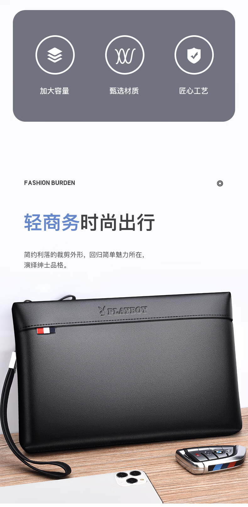 Playboy (PLAYBOY) wallet men's large capacity men's bag soft leather clutch bag men's bag envelope hand bag birthday gift for husband and father