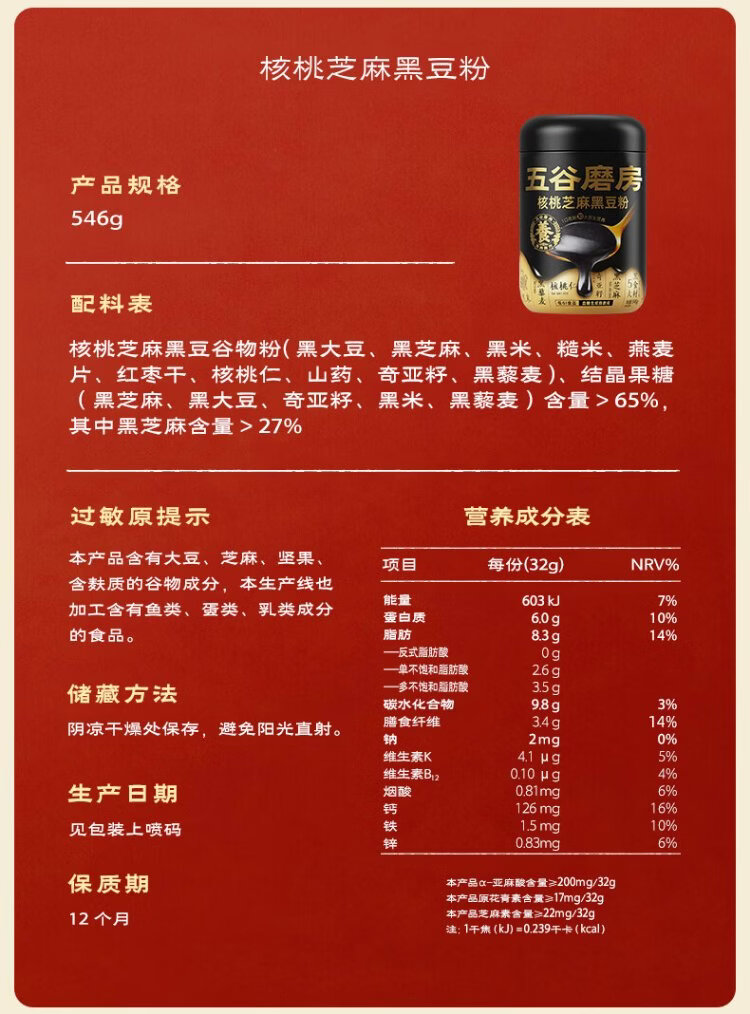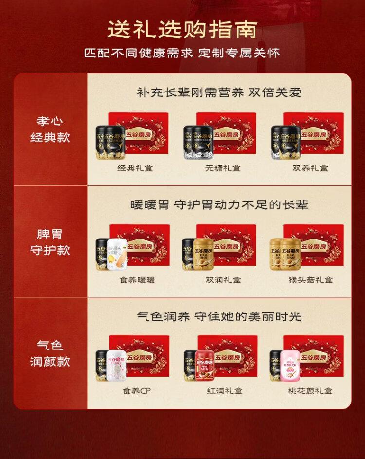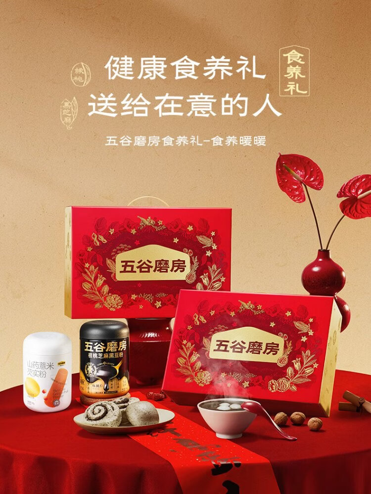 Wugu Mill Food Nourishment Gift Low GI black sesame paste walnut sesame black bean powder stomach nourishing yam powder new year gift box 1092g