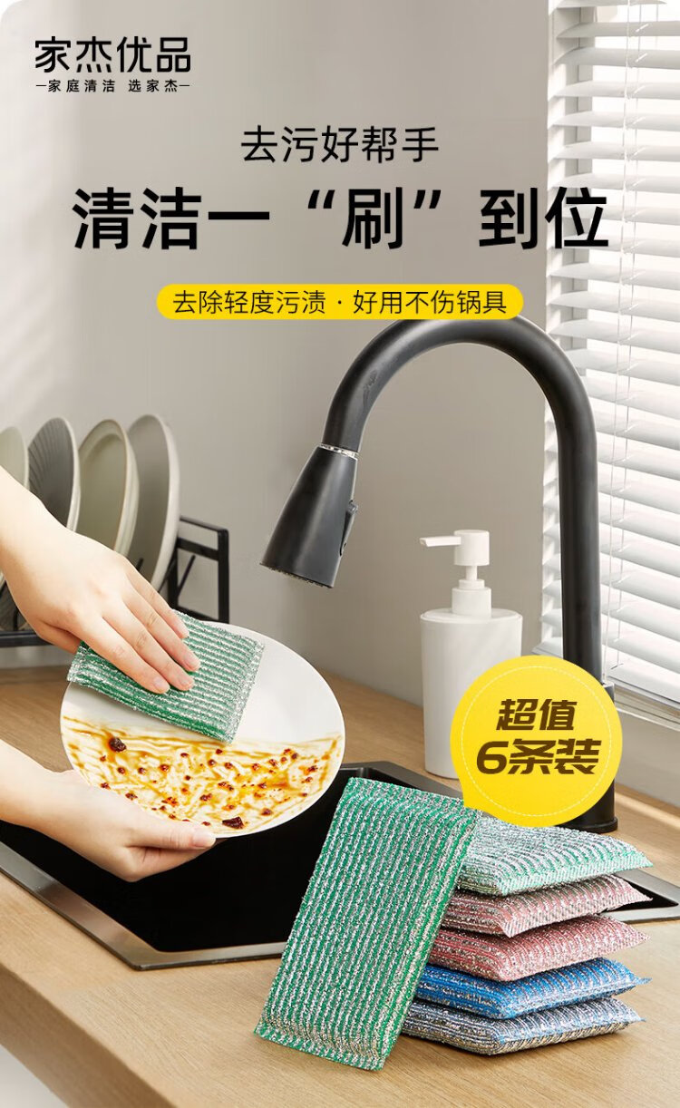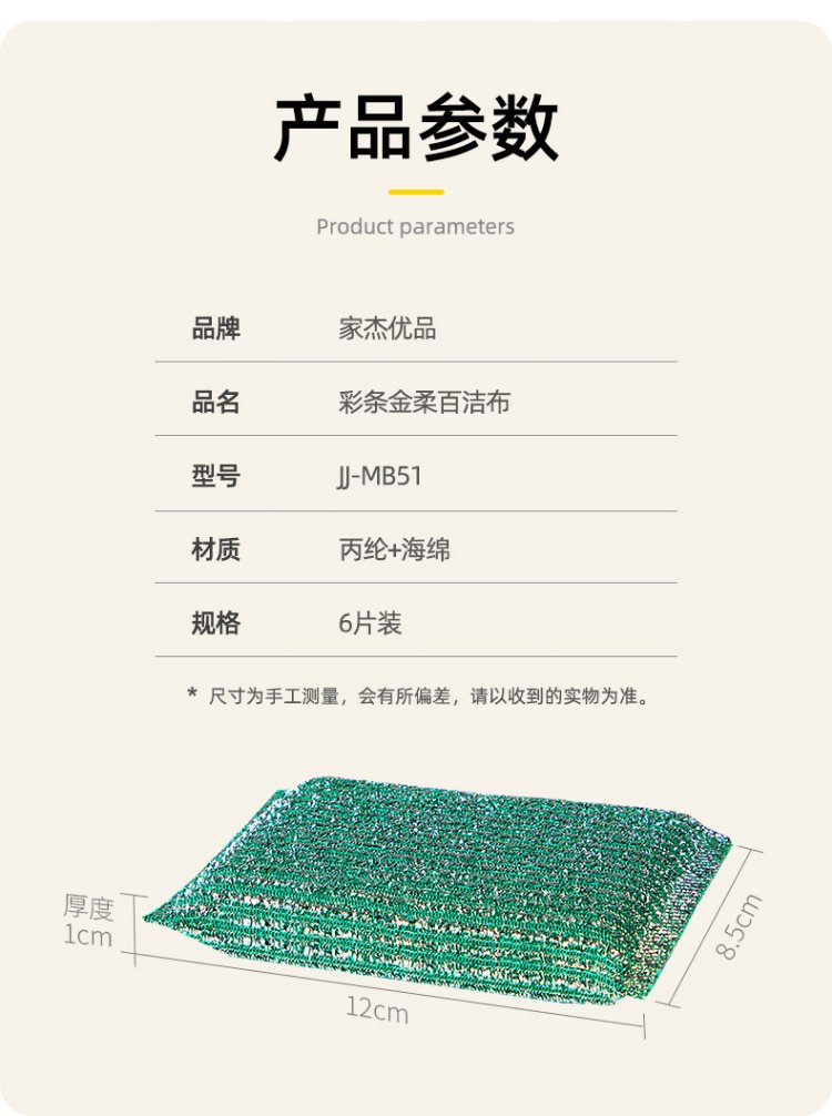 Jiajie Youpin Color Strip Gold Soft Cleaning Cloth 6 Pieces Dishwashing Cleaning Sponge Degreasing Rag Kitchen Household Artifact
