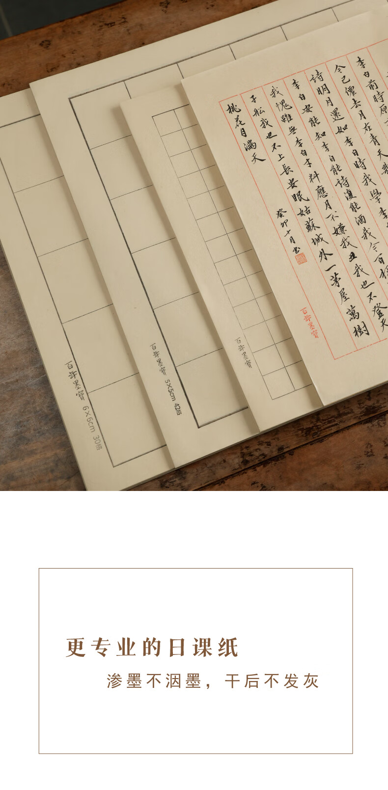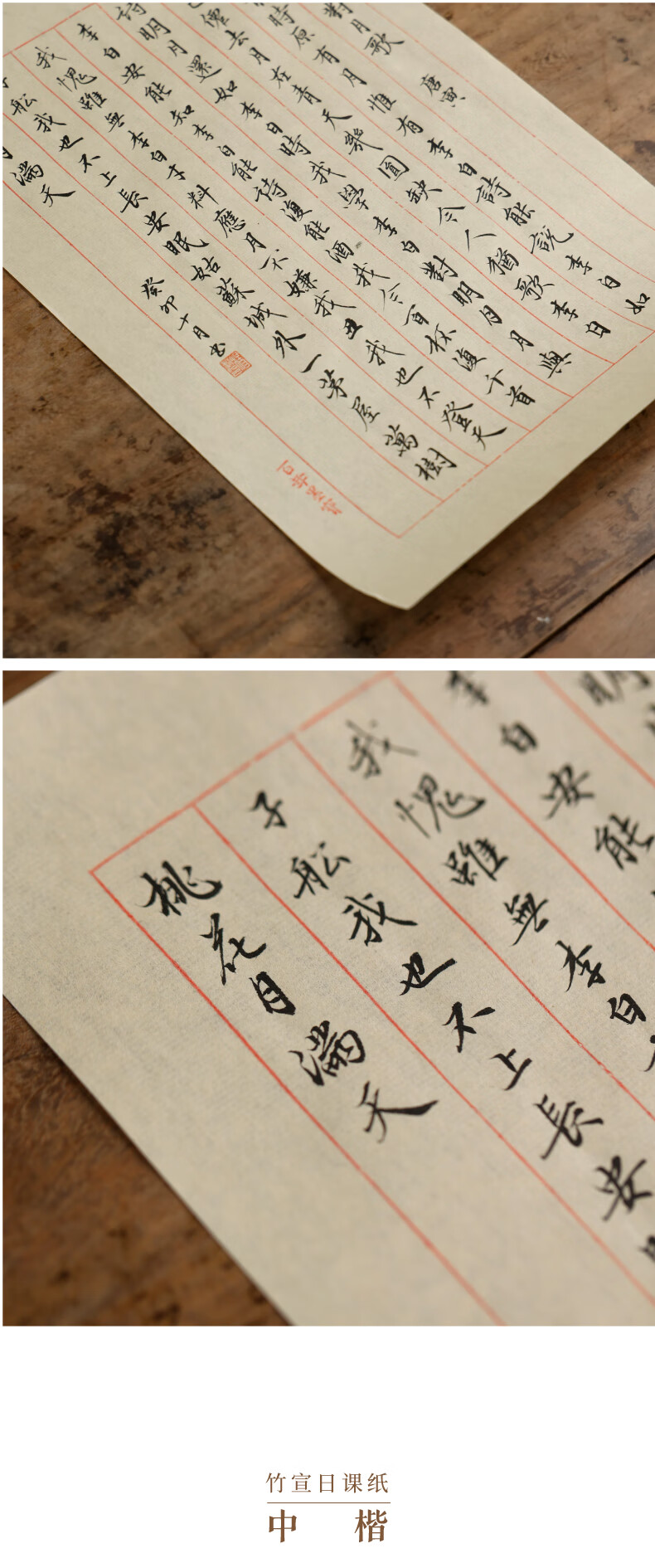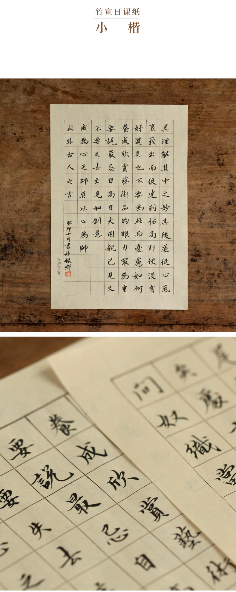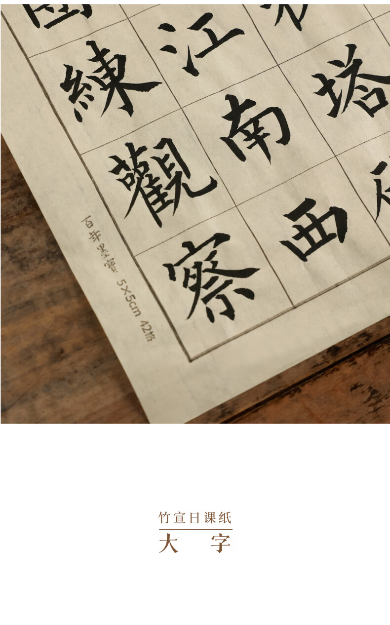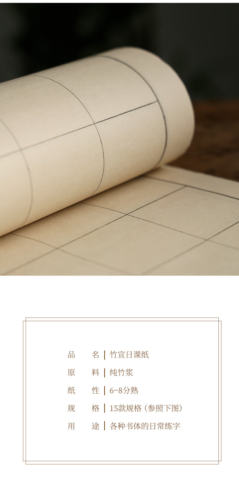 Chinese and ink half-cooked bamboo pulp daily lesson paper, calligraphy practice paper for beginners, 2cm squares, 50 sheets, four treasures of the study, calligraphy practice paper