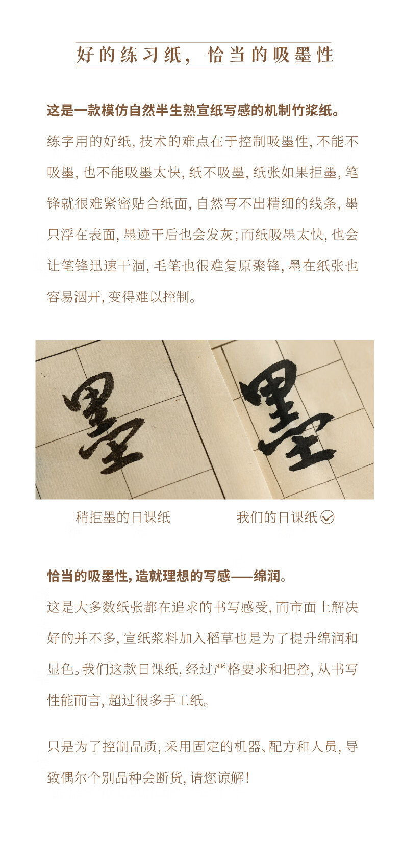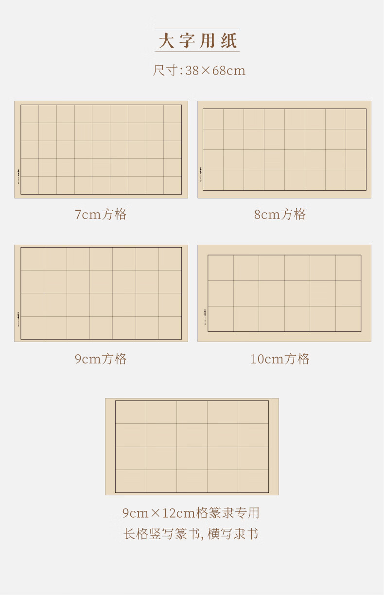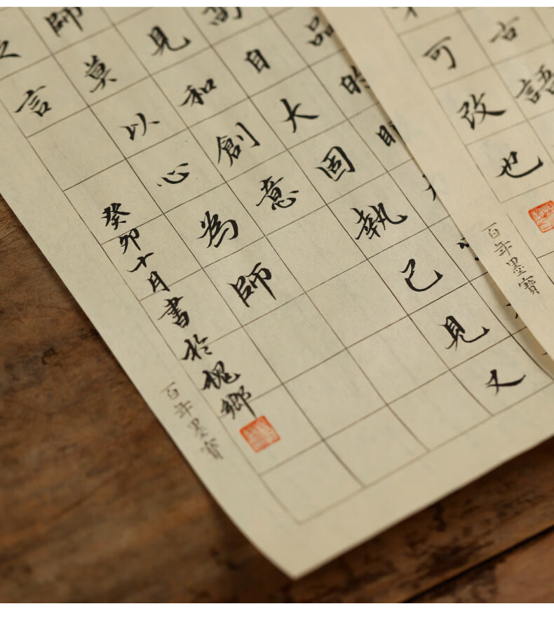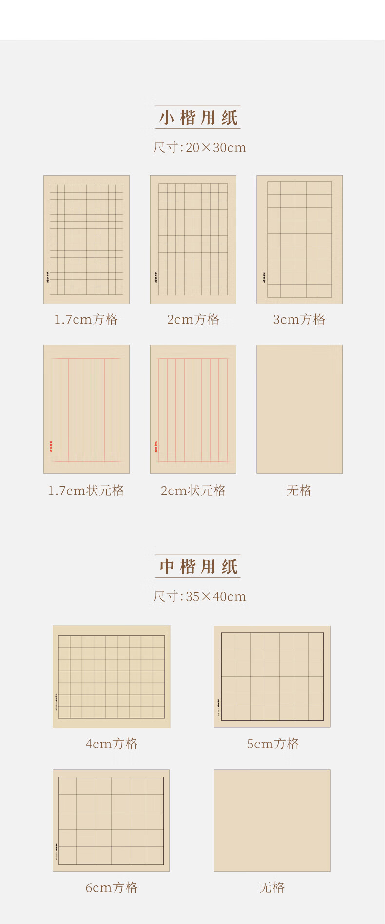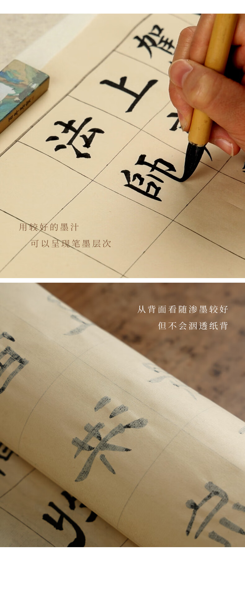Chinese and ink half-cooked bamboo pulp daily lesson paper, calligraphy practice paper for beginners, 2cm squares, 50 sheets, four treasures of the study, calligraphy practice paper