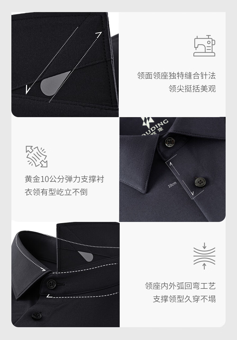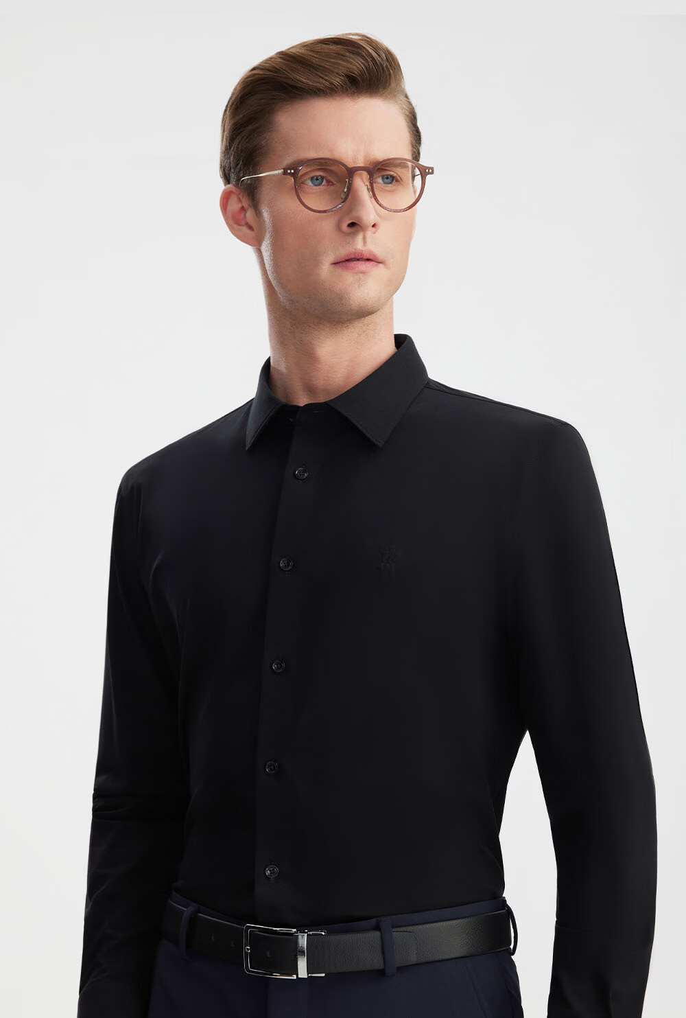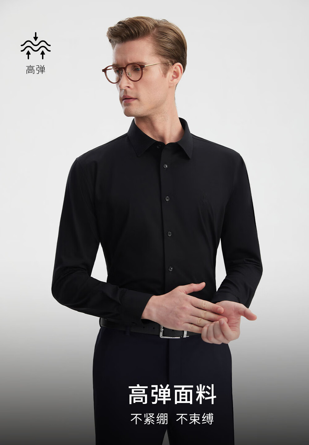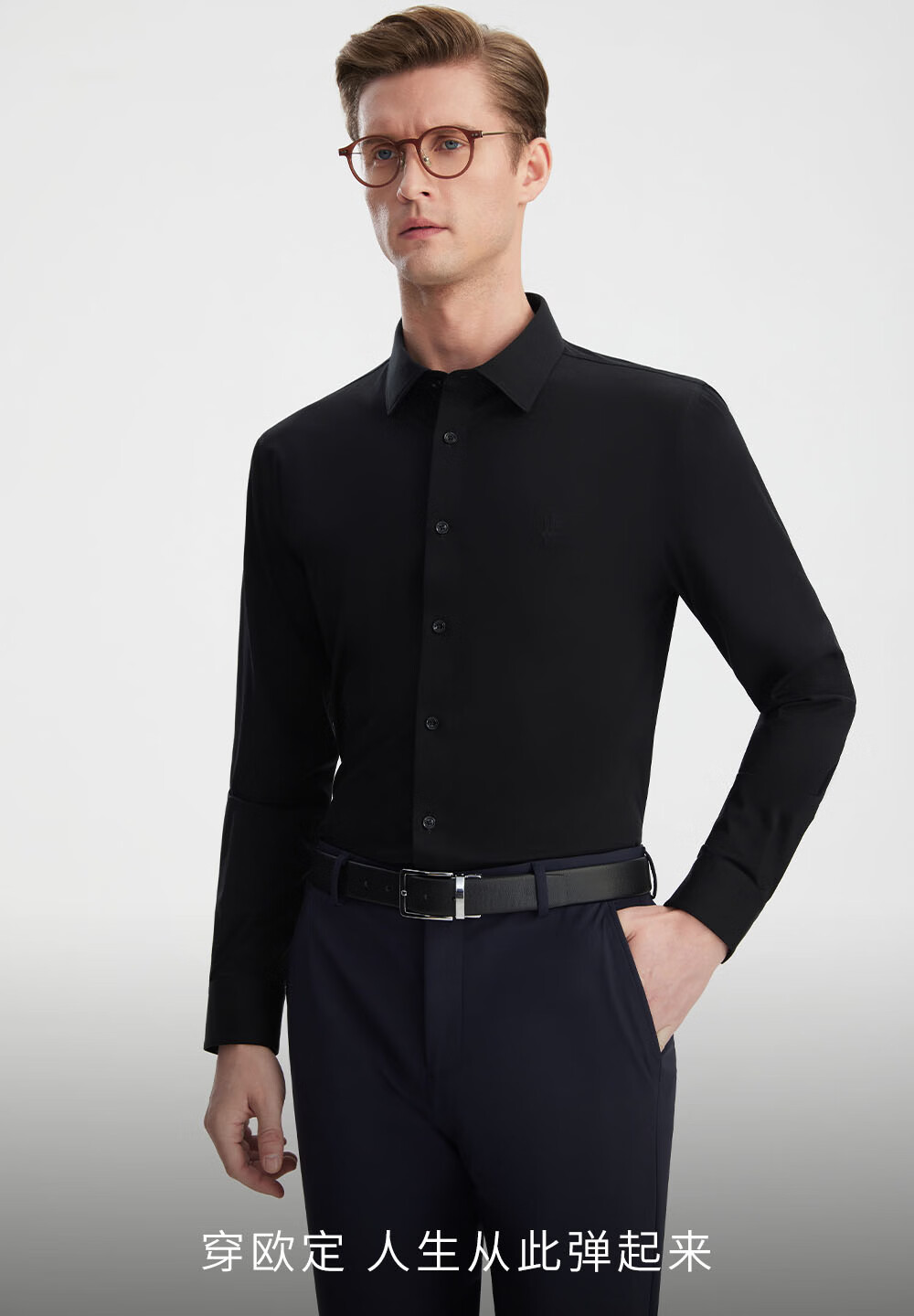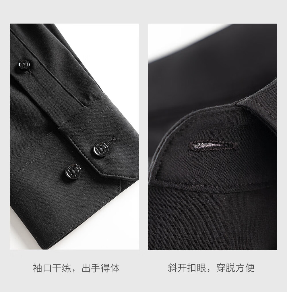 Ou Ding Elizabeth ink glaze black high elastic shirt men's no-iron long-sleeved mulberry silk black shirt ink glaze black 43