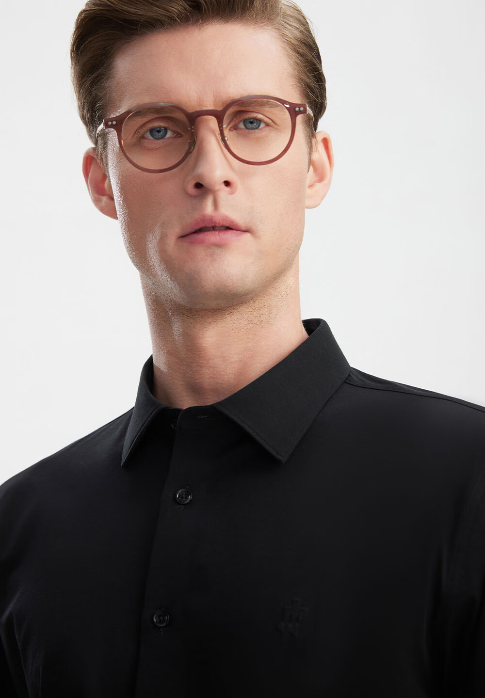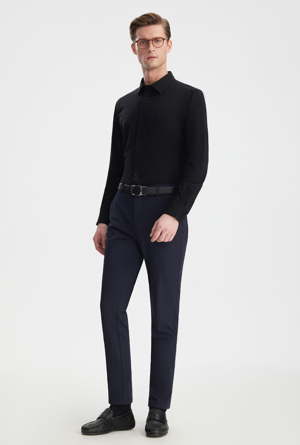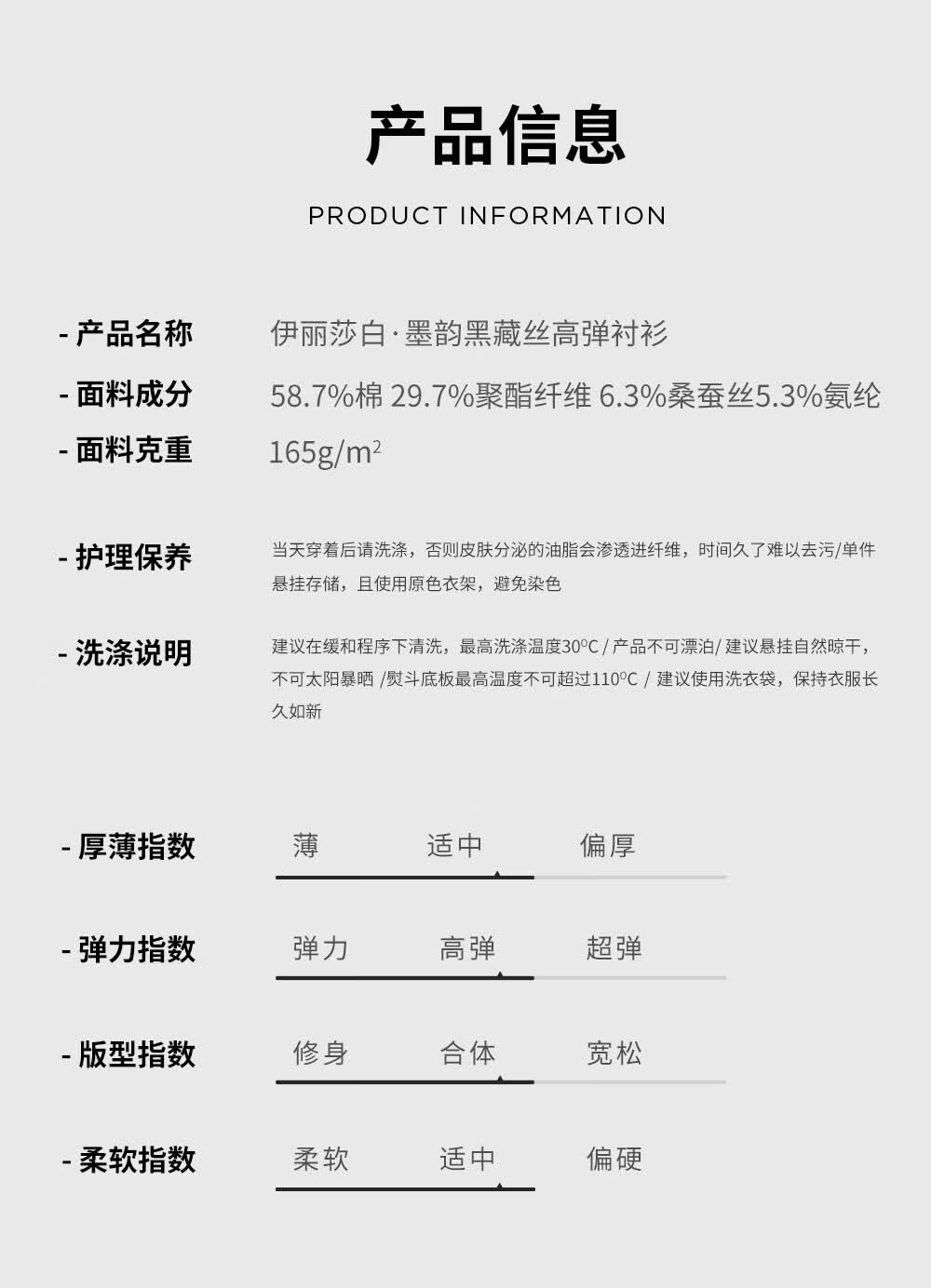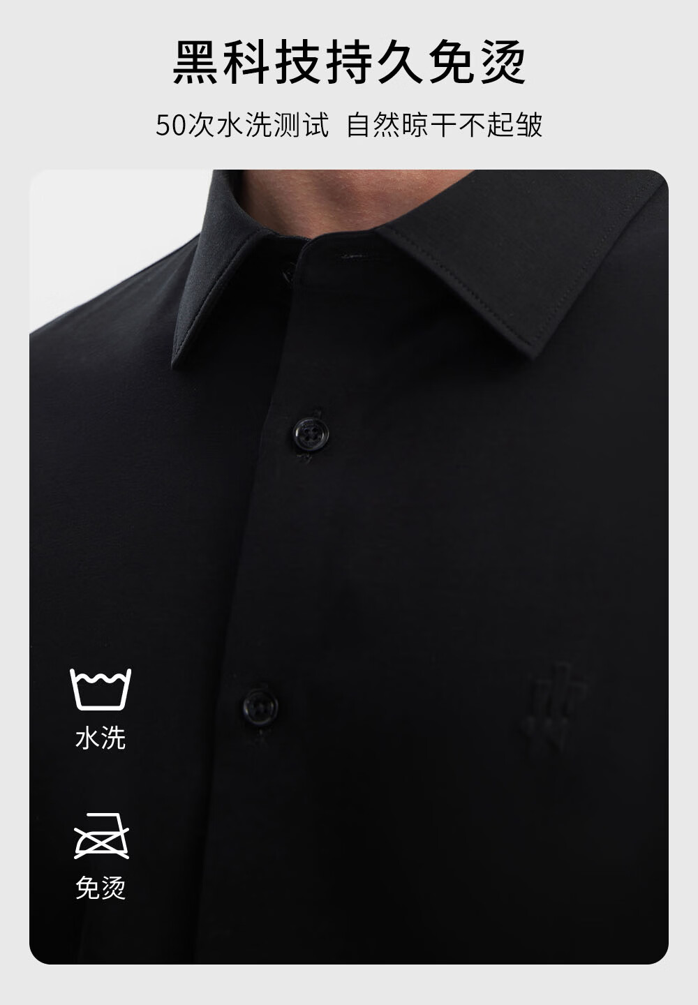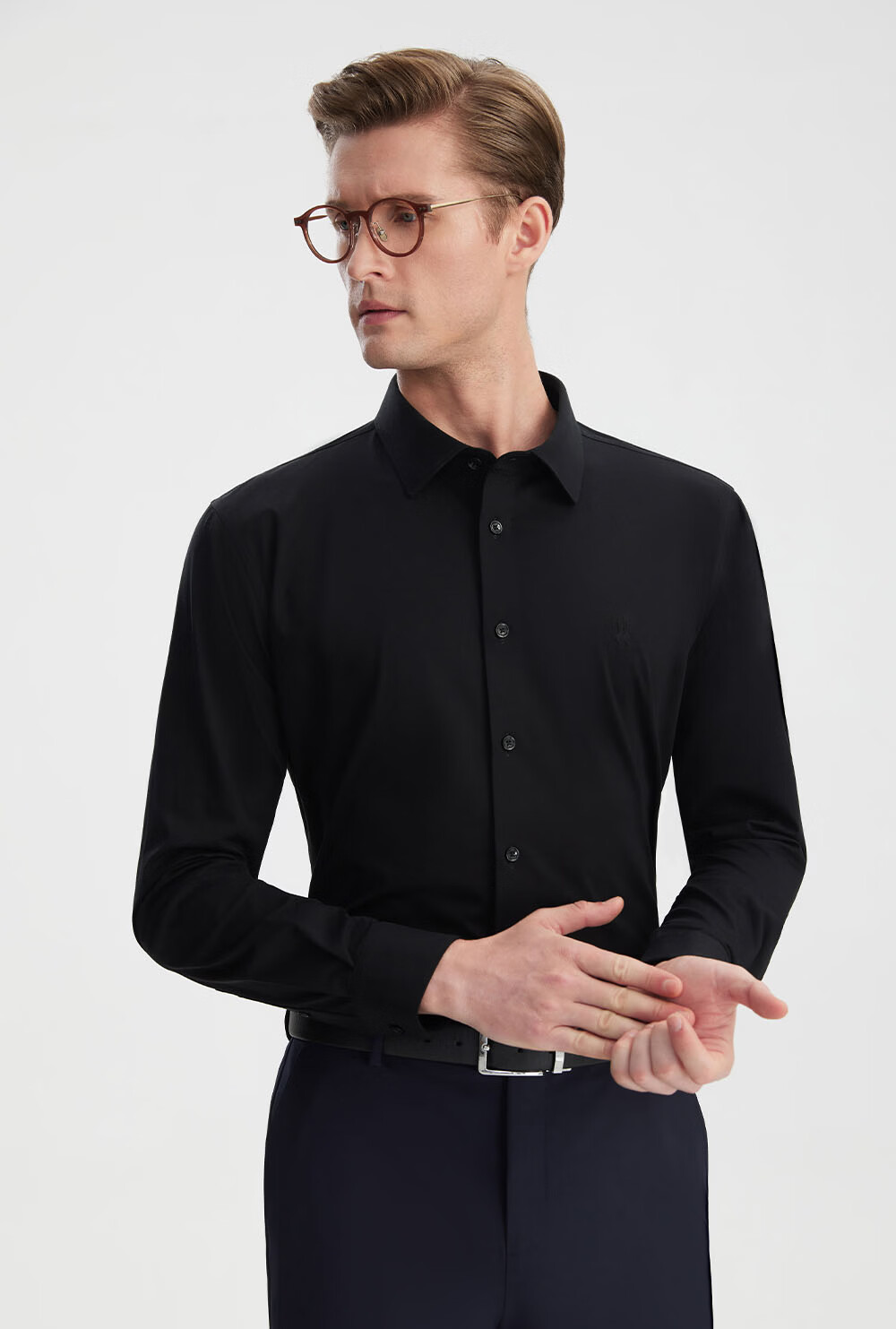 Ou Ding Elizabeth ink glaze black high elastic shirt men's no-iron long-sleeved mulberry silk black shirt ink glaze black 43