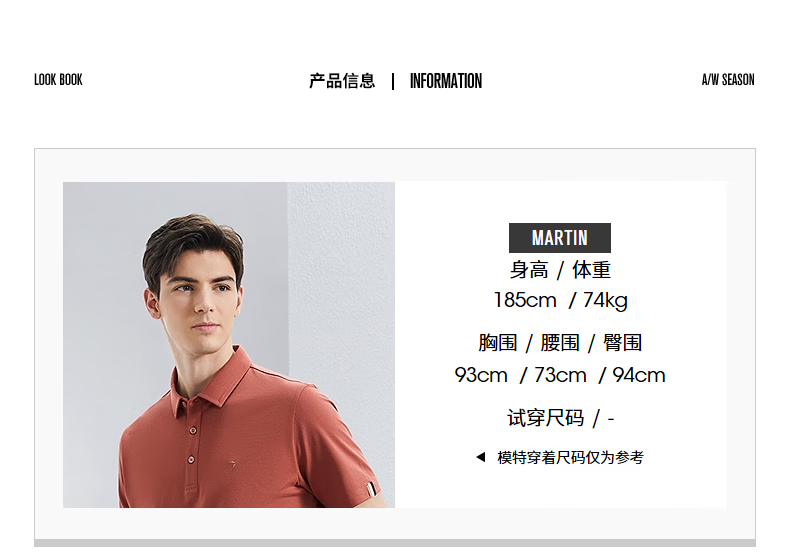 China (cm) 165 / 88-90 170 / 96-98 175 / 108-110 180 / 118-122 185 / 126-130