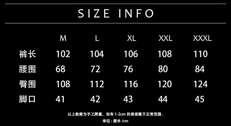 Outseam (cm) 99 cm 101.5 cm 104 cm 106.5 cm 109 cm