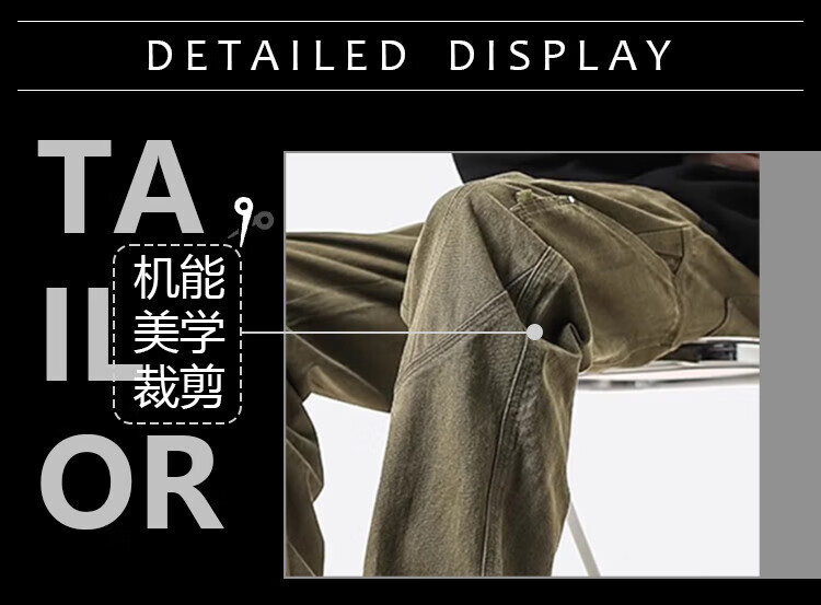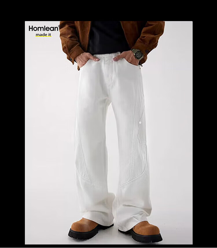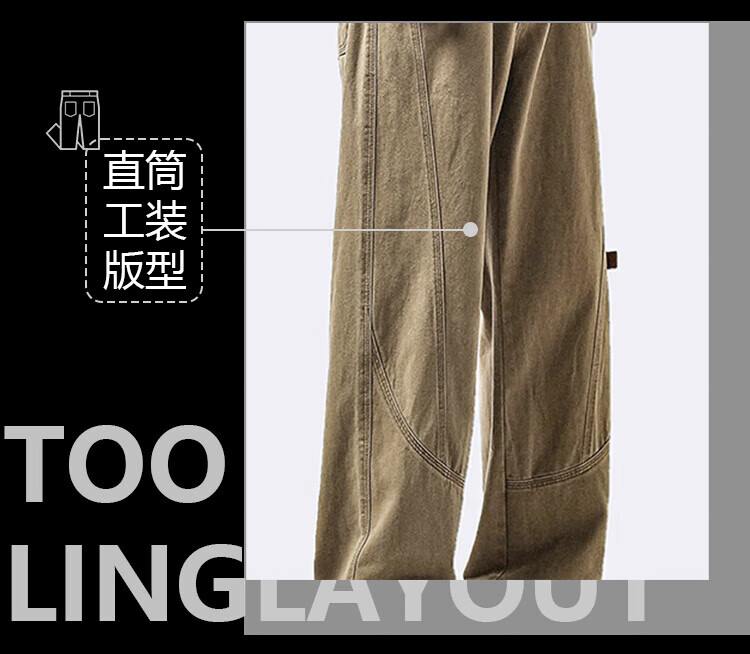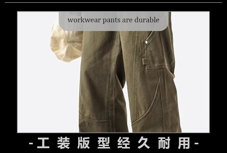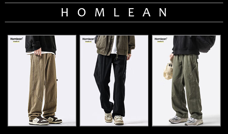 Homlean American pure cotton casual pants men's spring and summer niche trendy brand retro loose workwear long pants HS60 Khaki XL
