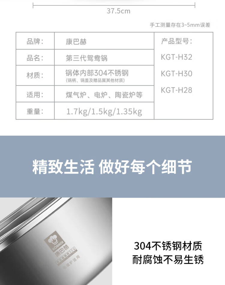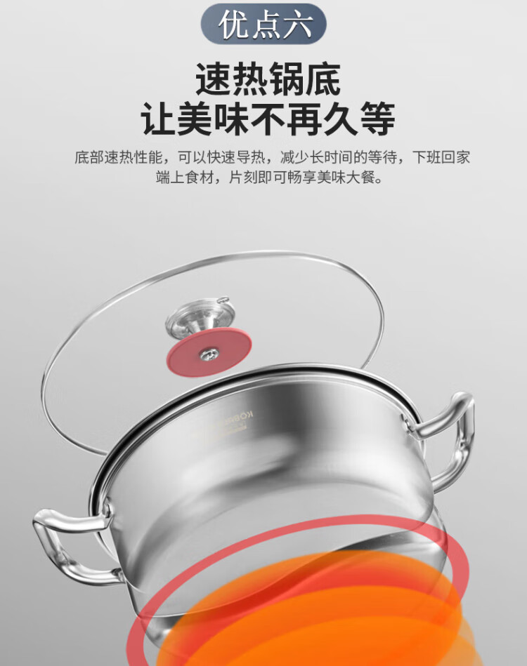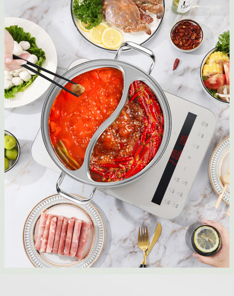 Kangbach (KBH) Olla caliente de acero inoxidable 304, olla de pato mandarín, olla de doble propósito, olla caliente de fondo compuesto espesado, olla de sopa multifuncional, olla shabu-shabu