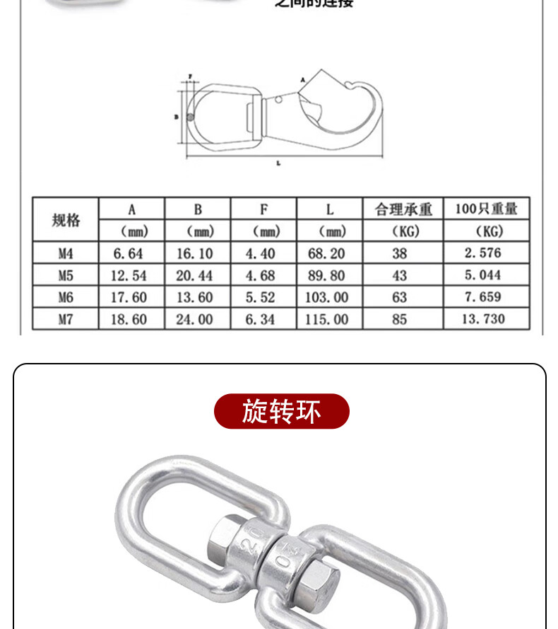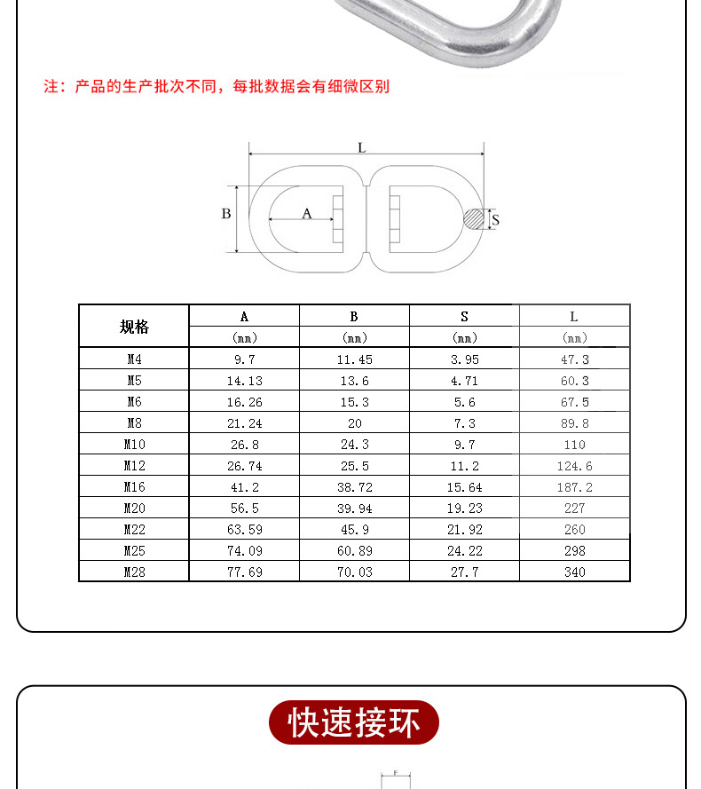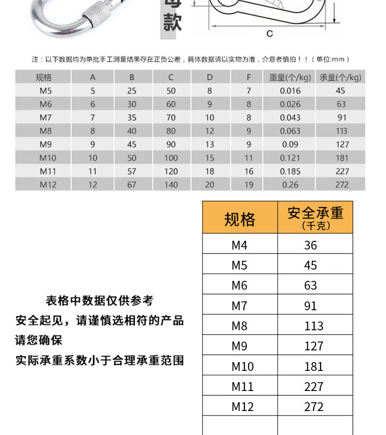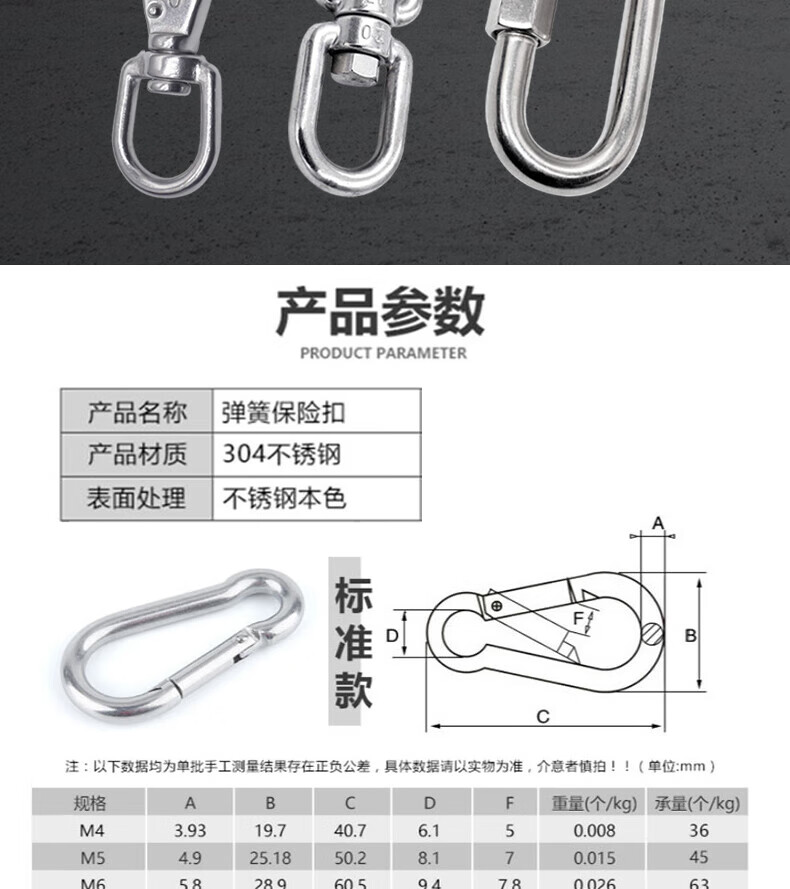 Bingyu 304 stainless steel spring buckle chain buckle key chain water bottle buckle connecting buckle BH-608 M8 standard type Jingcang Suda