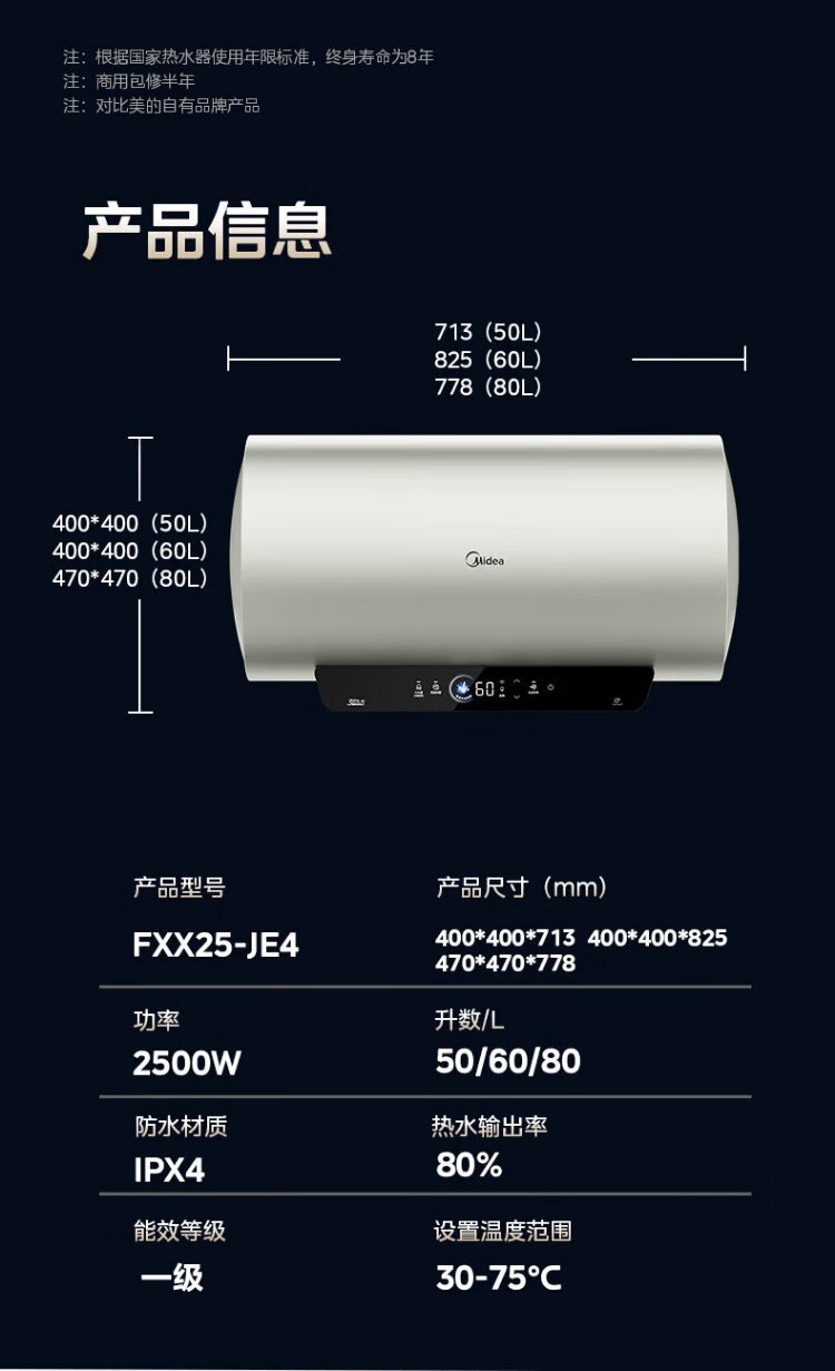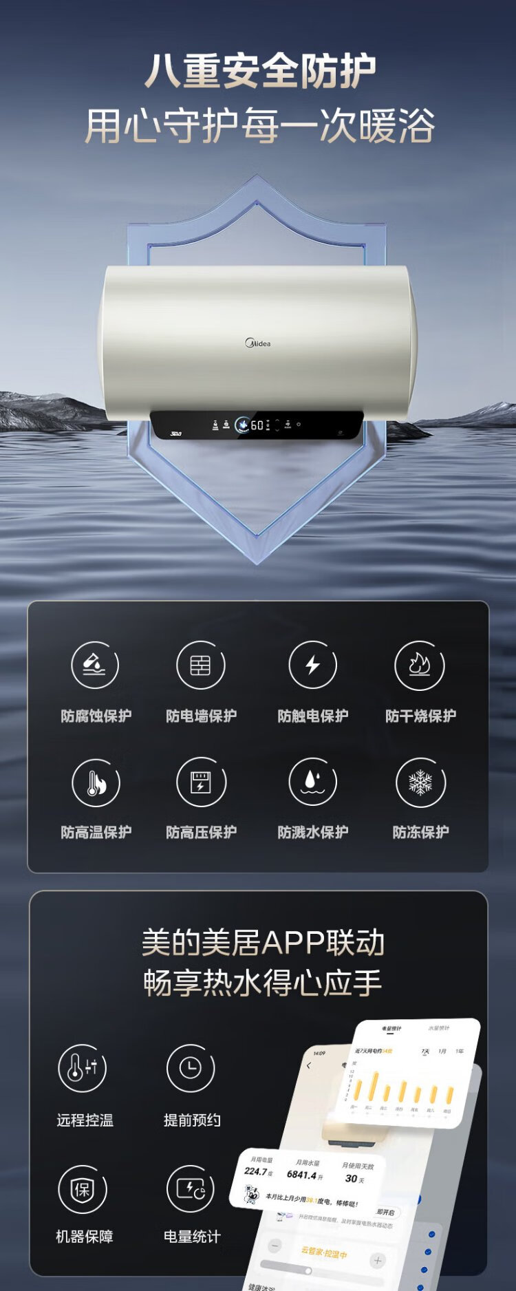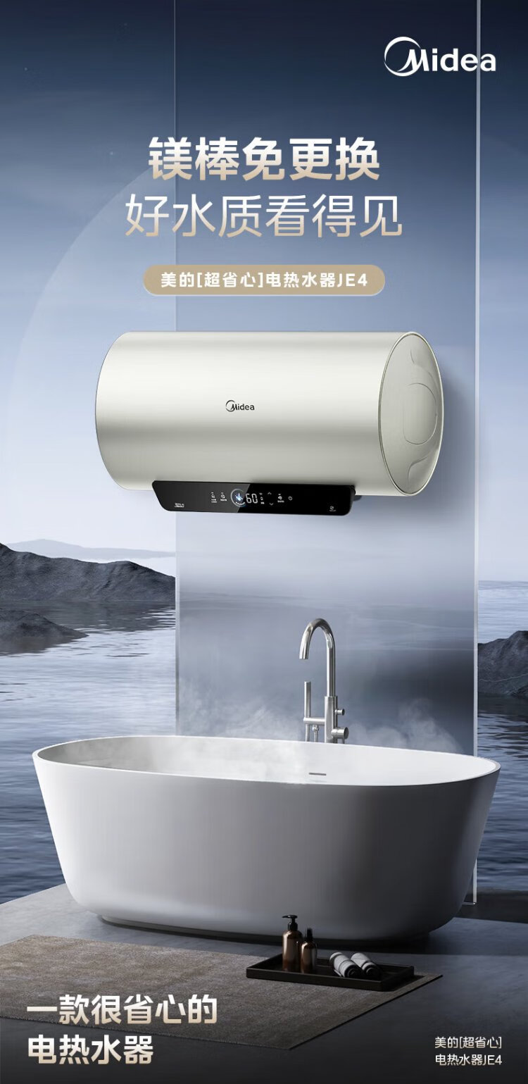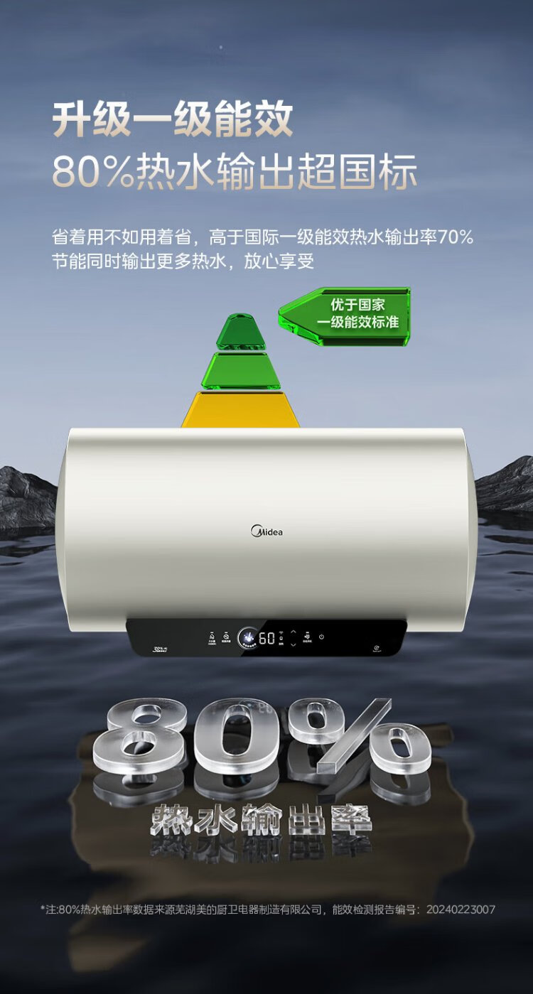 Midea's national subsidy is 20% lifetime free of replacement magnesium rod 60 liters 2500W first class energy efficiency 40 times durable heating pipe household electric water heater F6025-JE4 (HE)