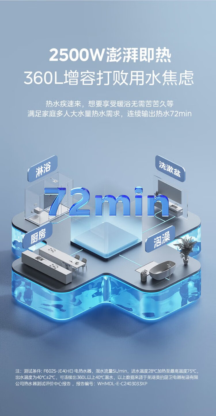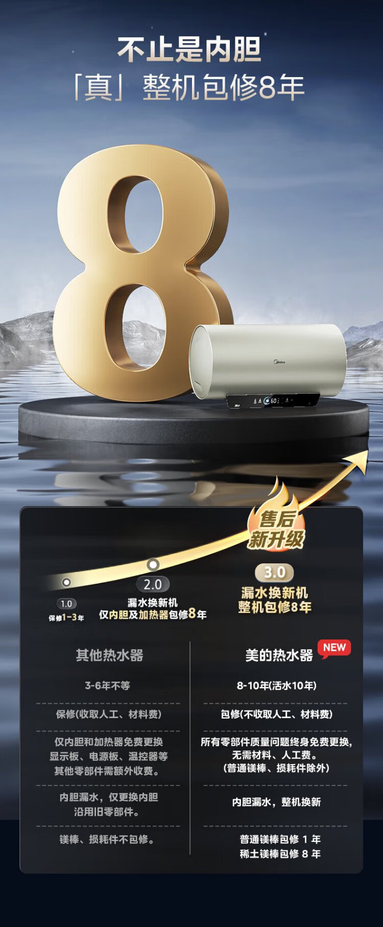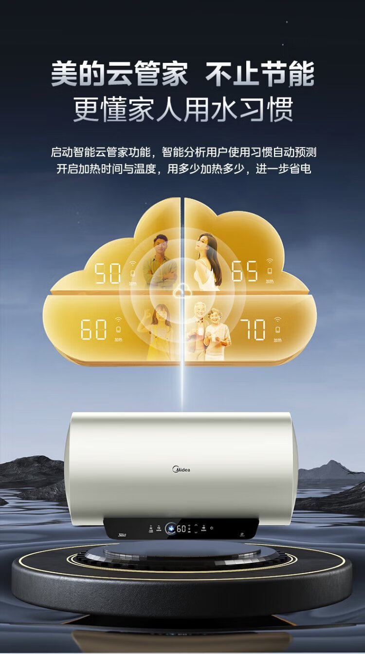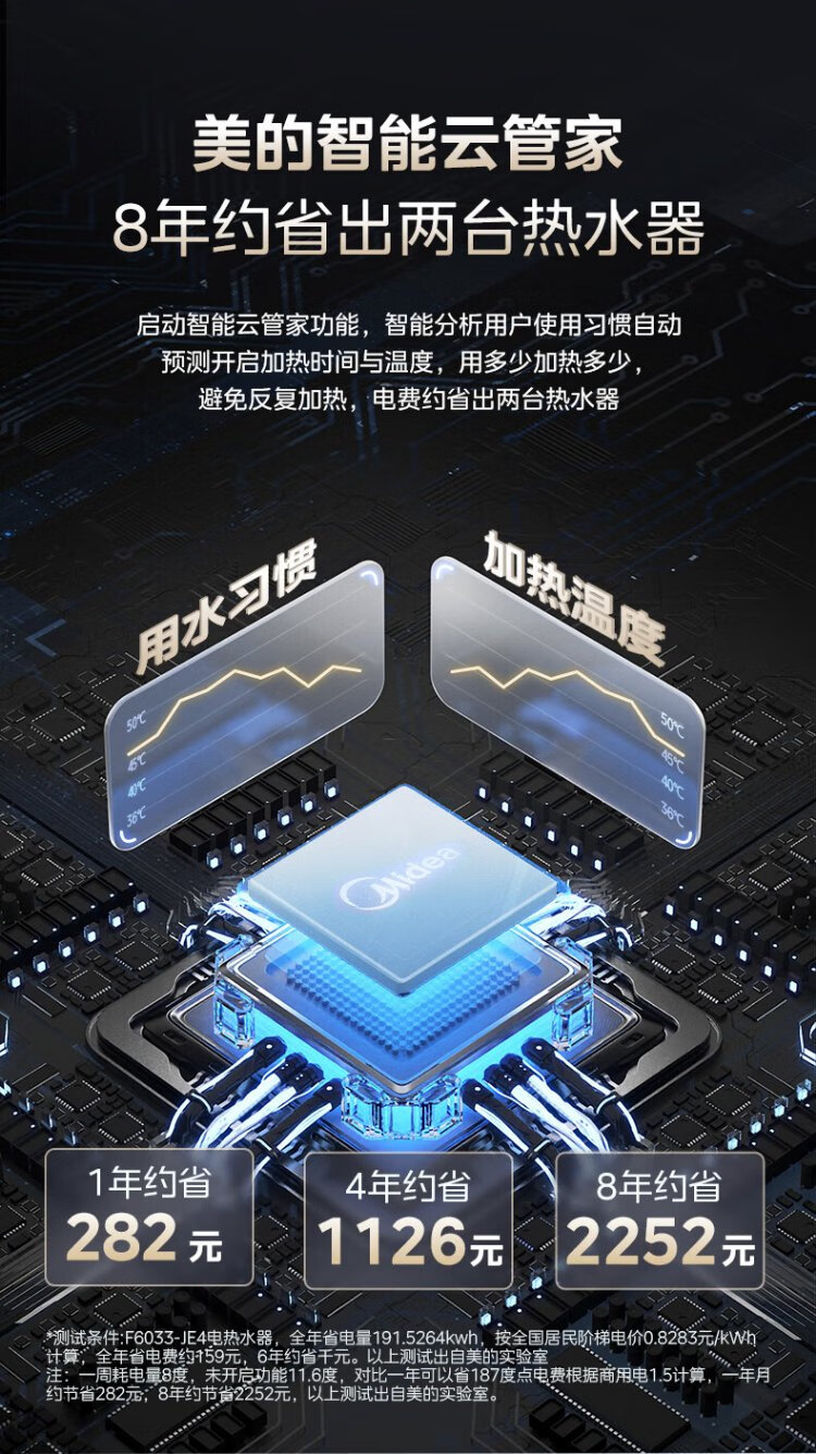 Midea's national subsidy is 20% lifetime free of replacement magnesium rod 60 liters 2500W first class energy efficiency 40 times durable heating pipe household electric water heater F6025-JE4 (HE)