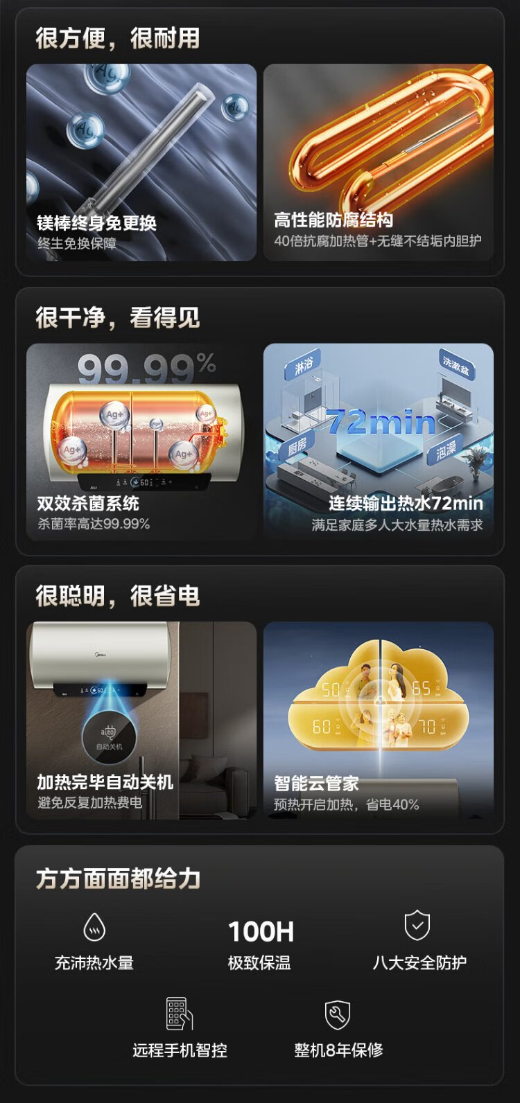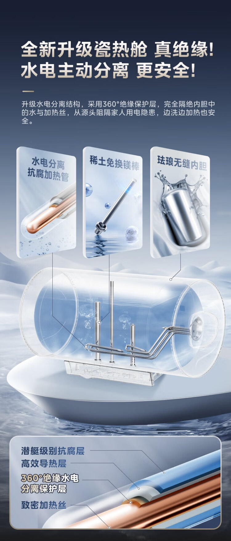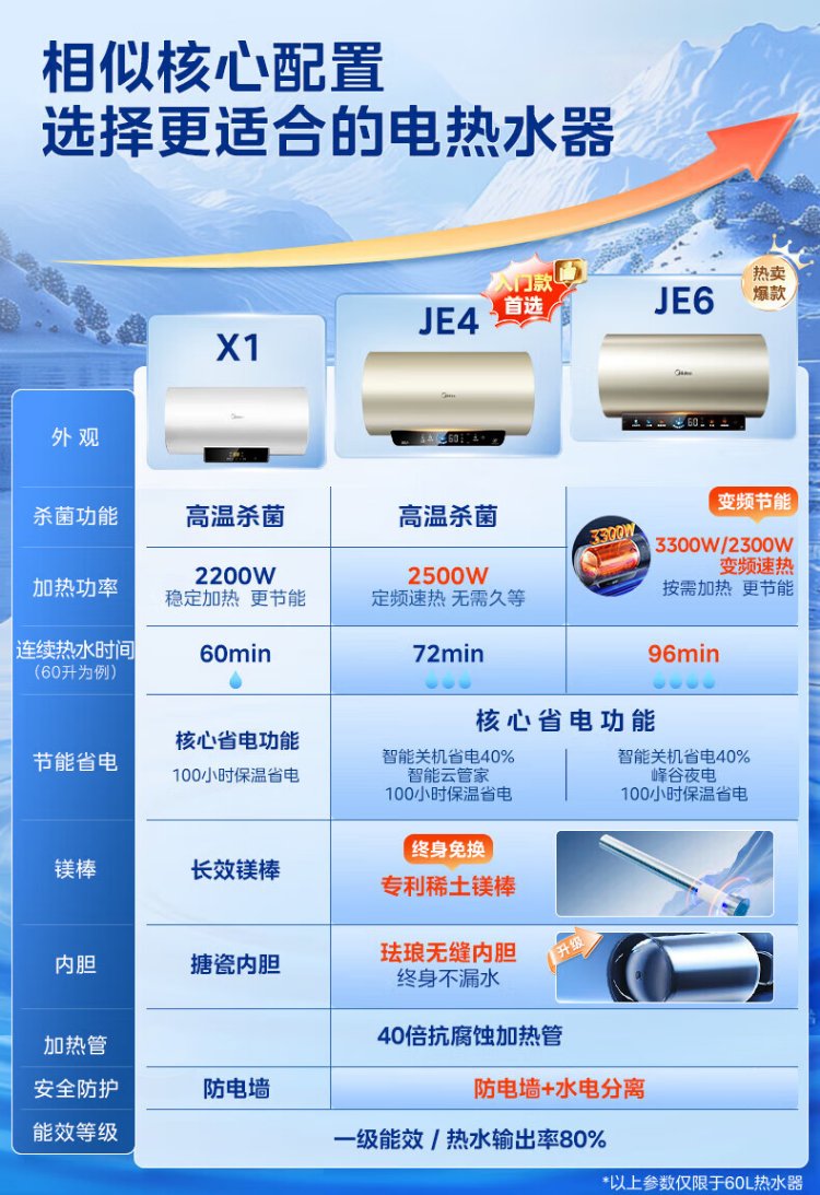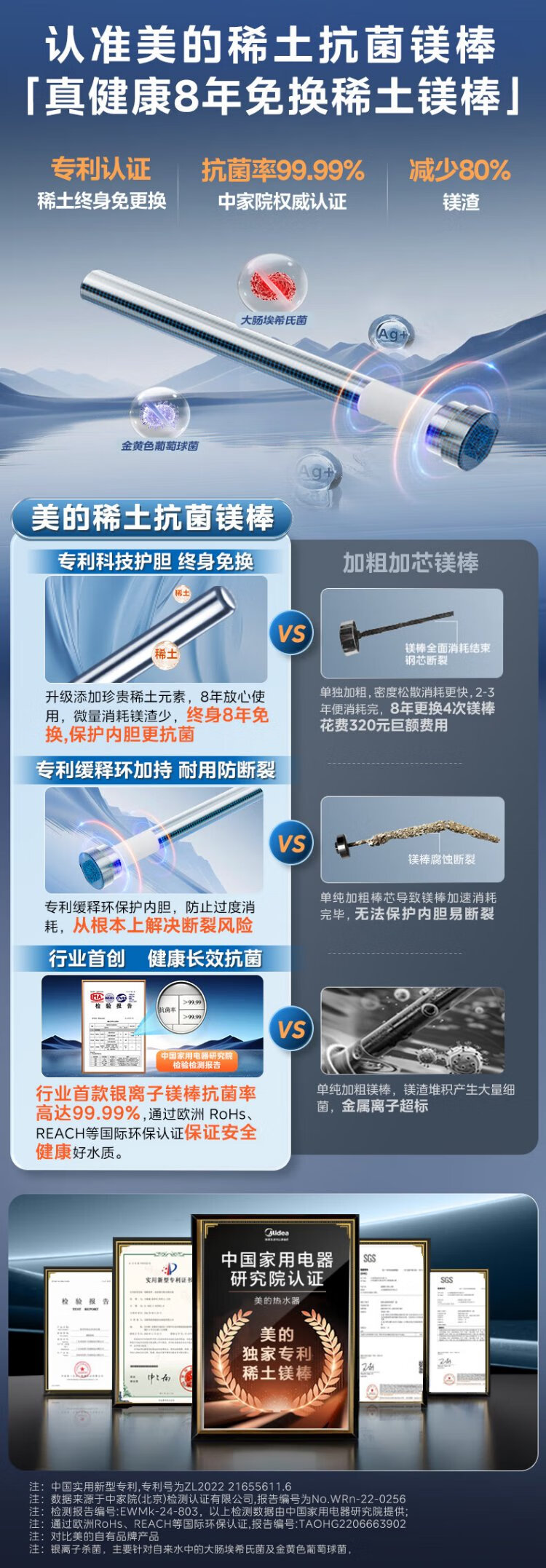 Midea's national subsidy is 20% lifetime free of replacement magnesium rod 60 liters 2500W first class energy efficiency 40 times durable heating pipe household electric water heater F6025-JE4 (HE)