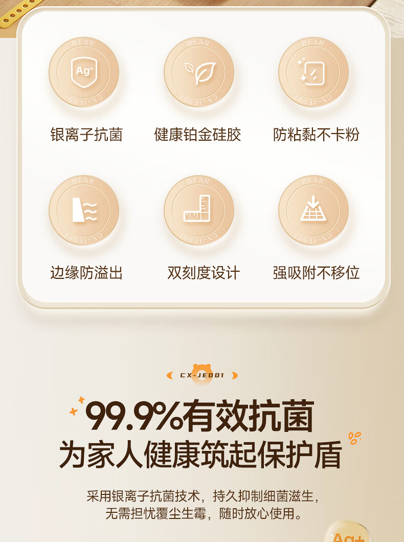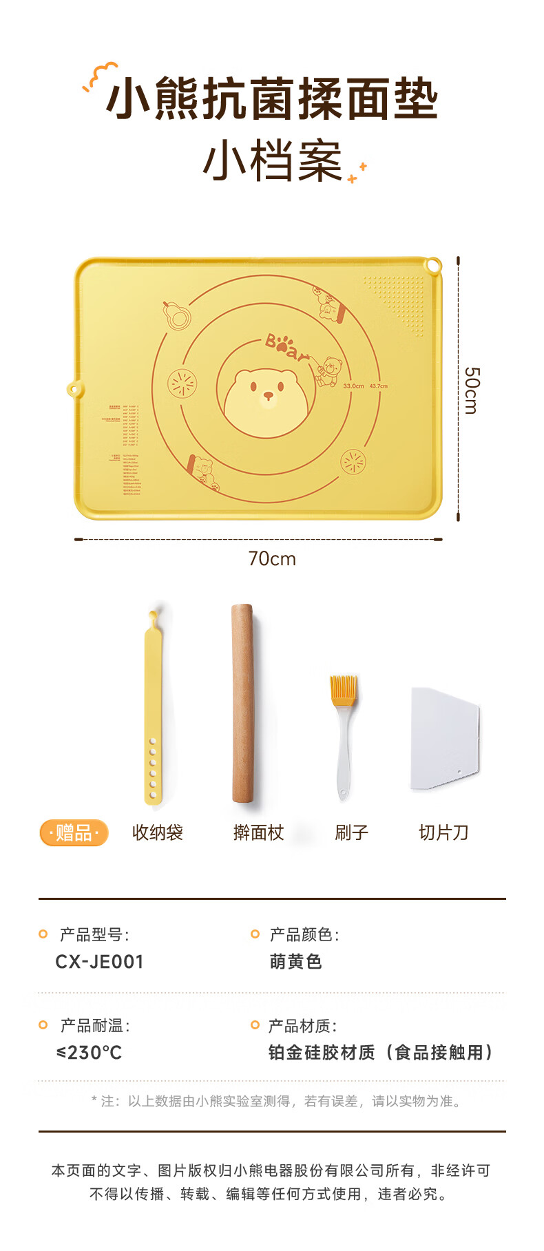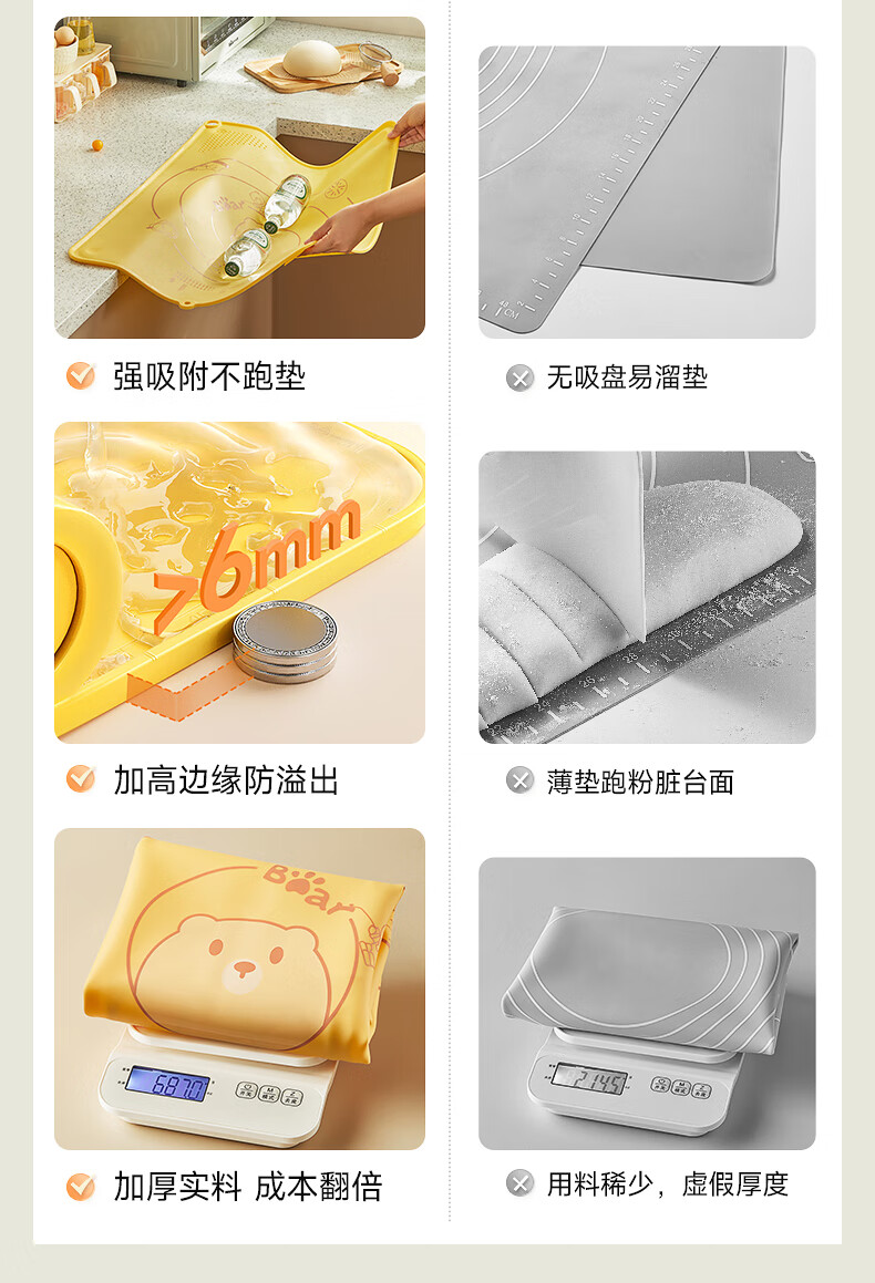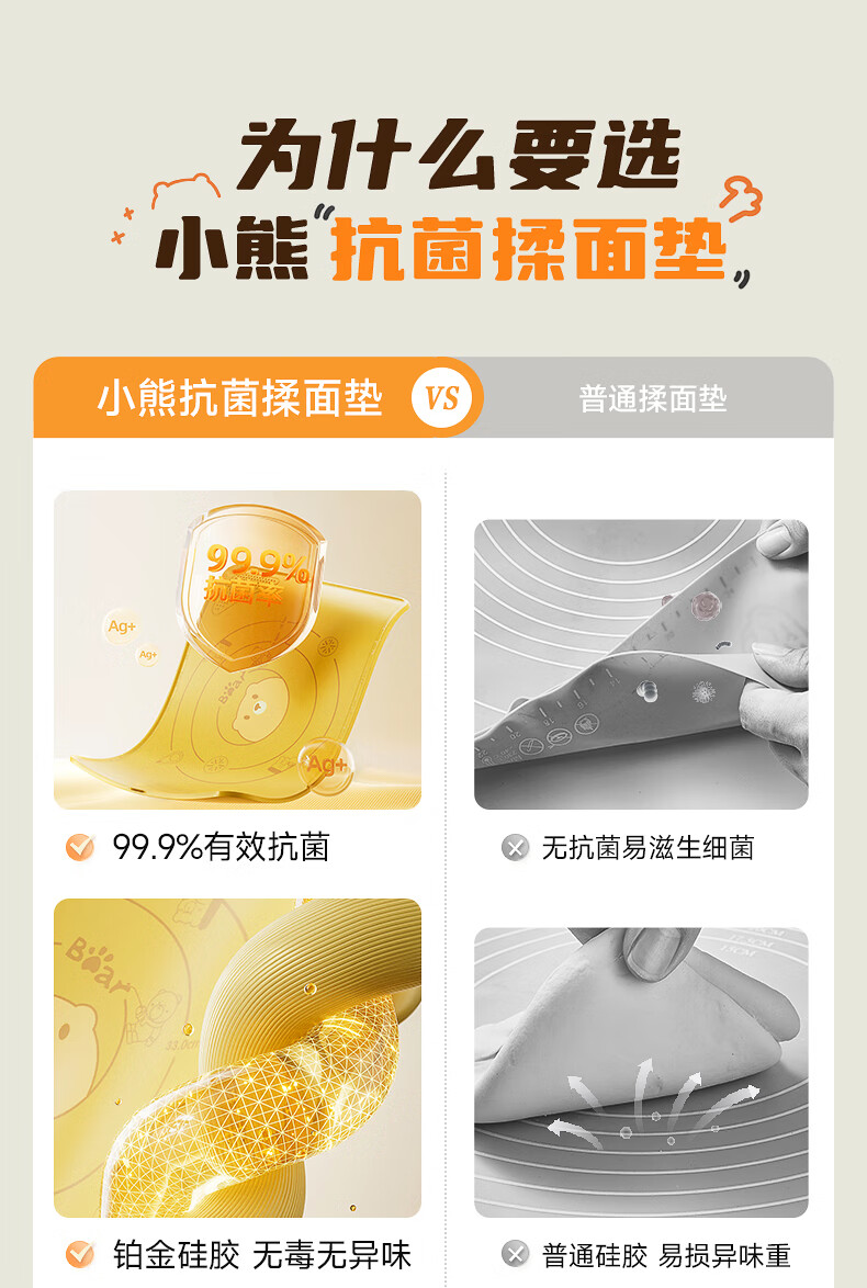Bear kneading mat 99.9% antibacterial silicone food grade rolling mat 70*50 baking chopping board extra large upgraded and thickened