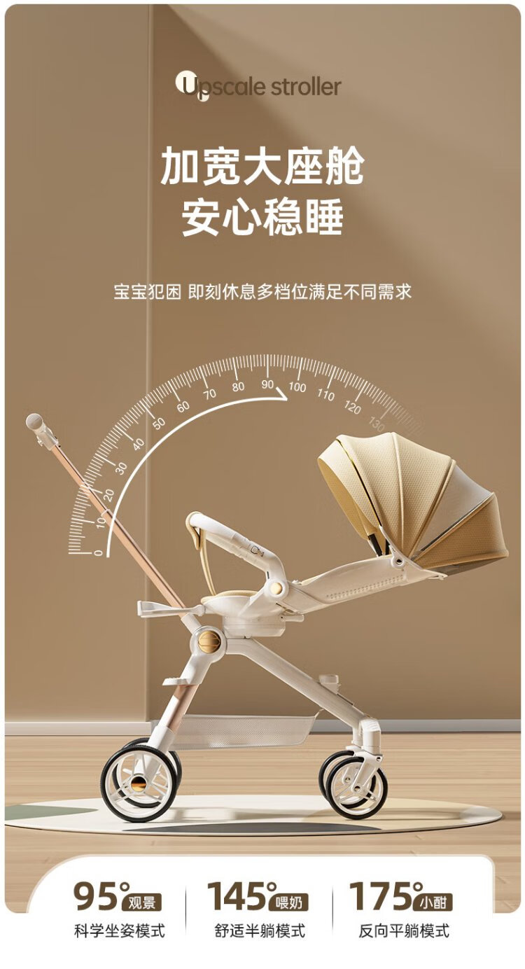 QULEBEAR baby walking artifact two-way baby stroller can sit and lie down multi-functional high view baby lightweight umbrella stroller fresh green