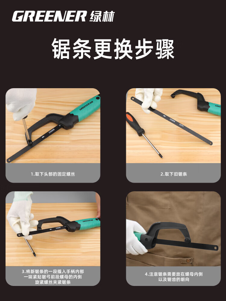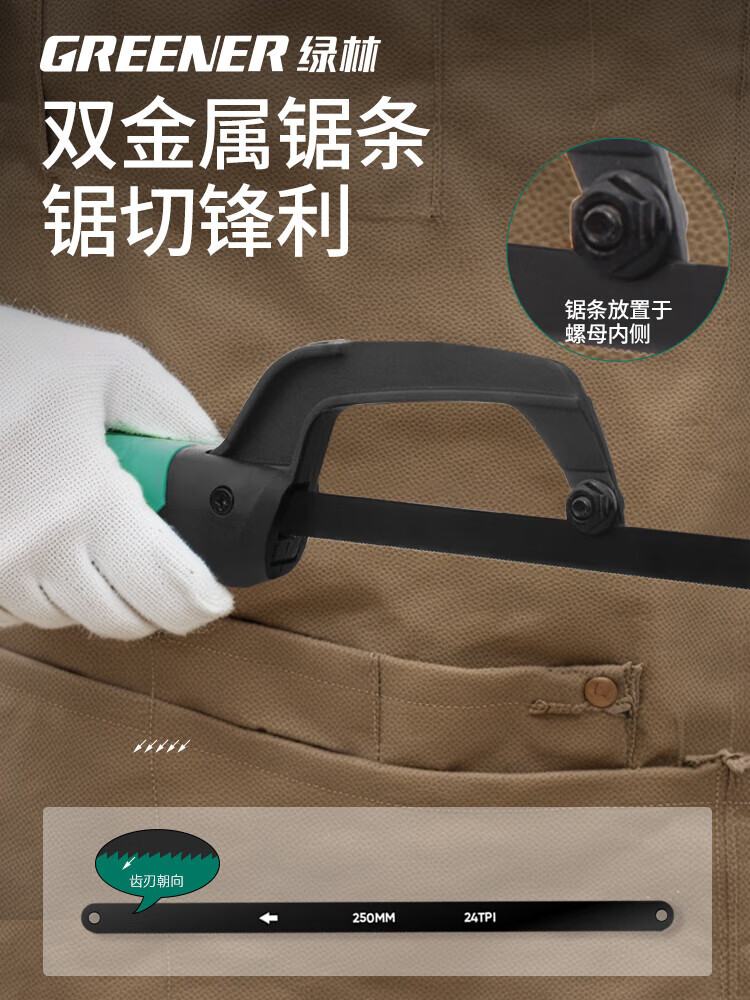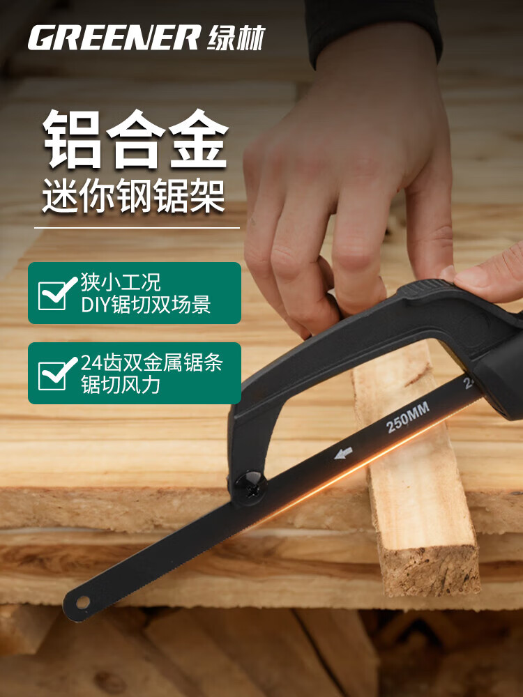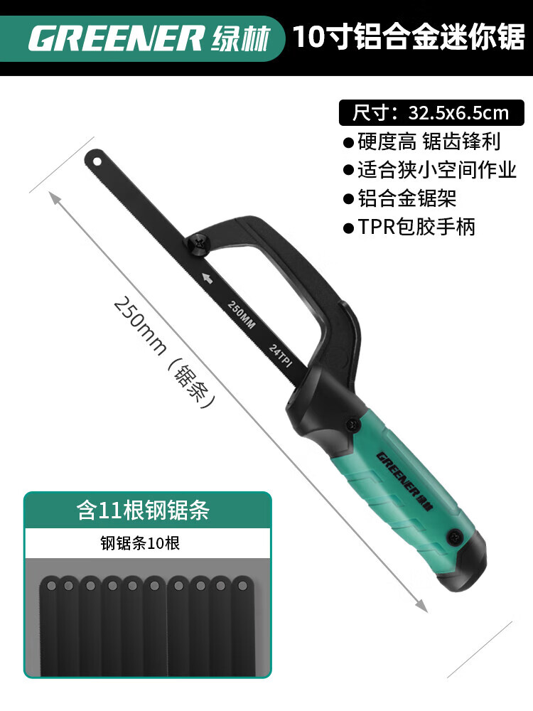 Green forest household mini hacksaw stand hand saw pocket saw hand saw bow 10 inch aluminum alloy saw with 11 saw blades