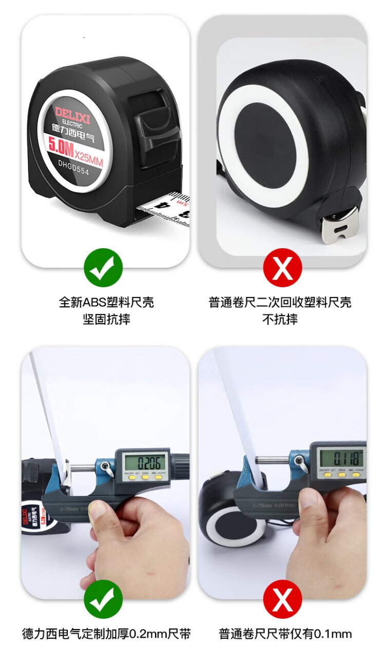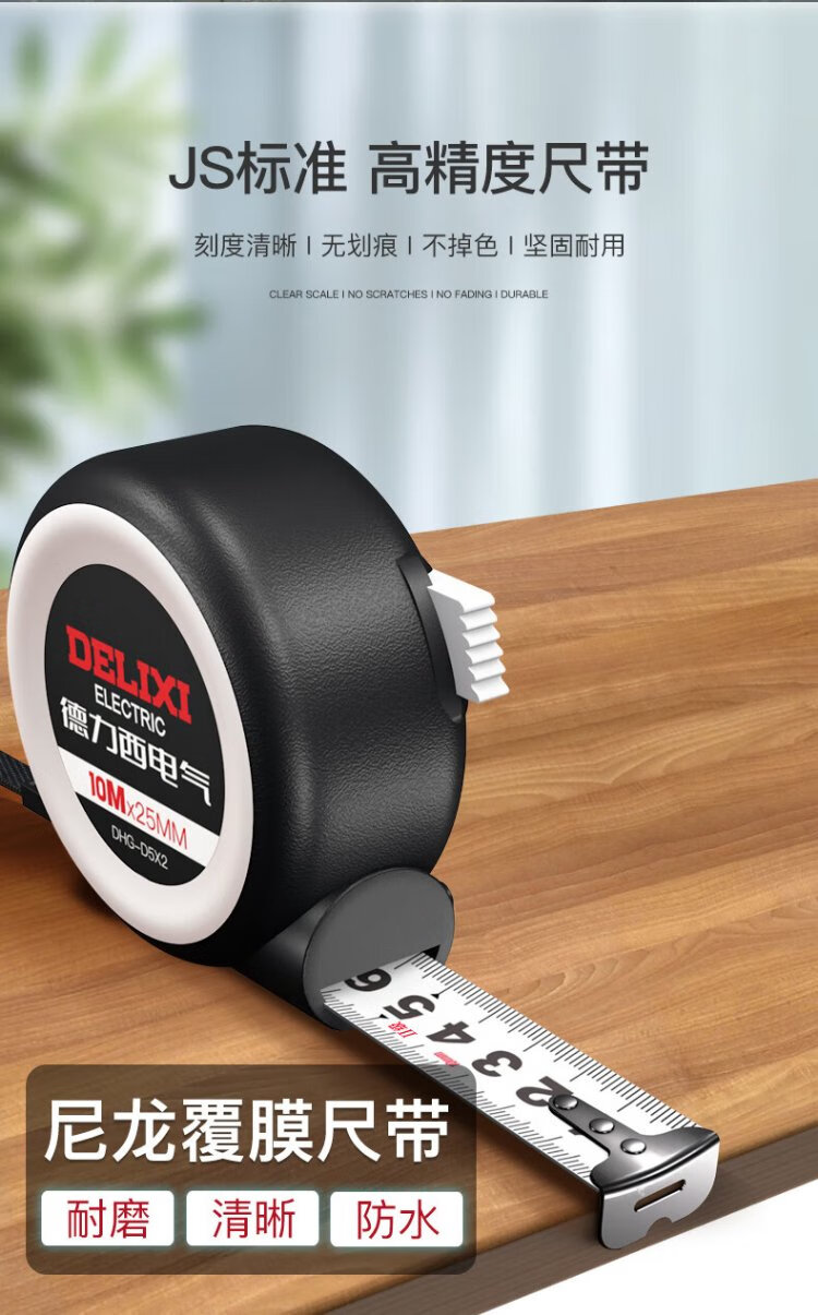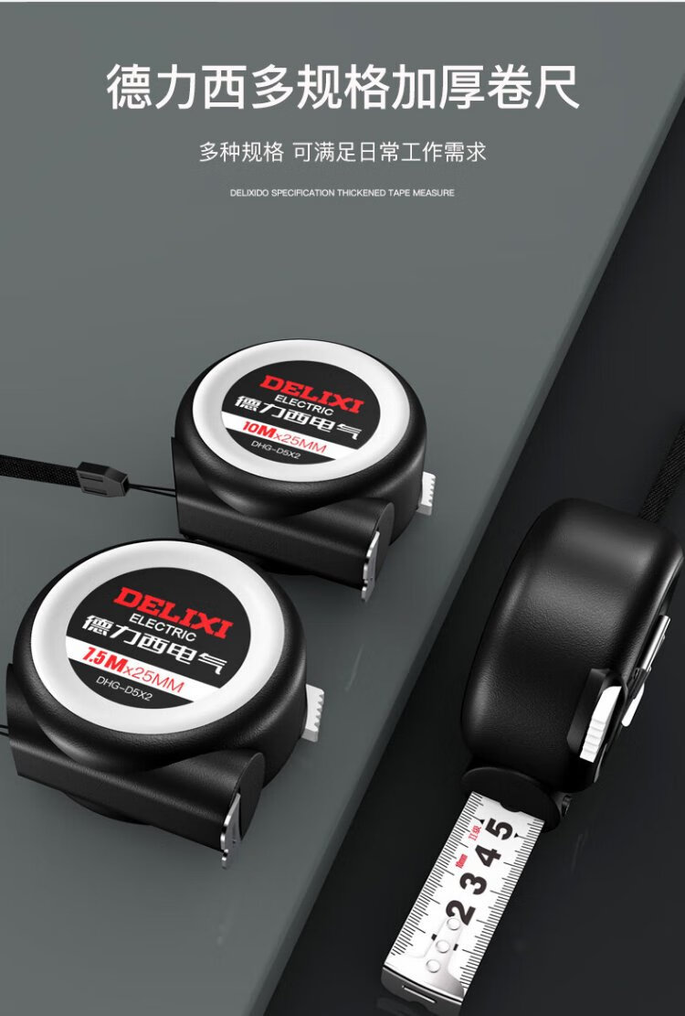 DELIXI ELECTRIC steel tape measure household wear-resistant, drop-proof, high-precision self-locking measurement thickened woodworking ruler 5-19