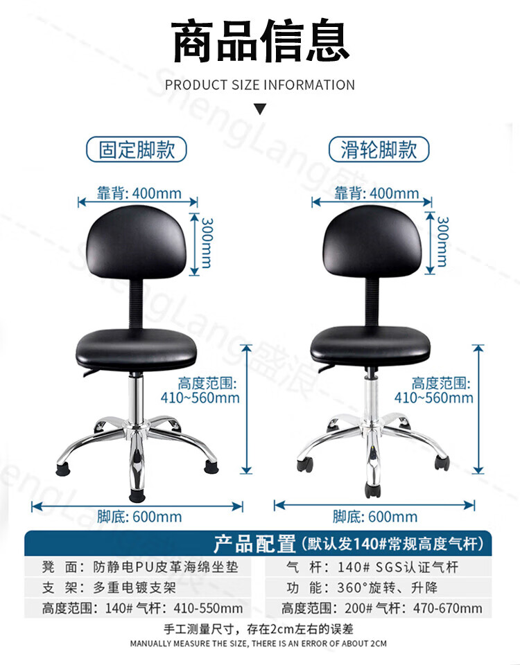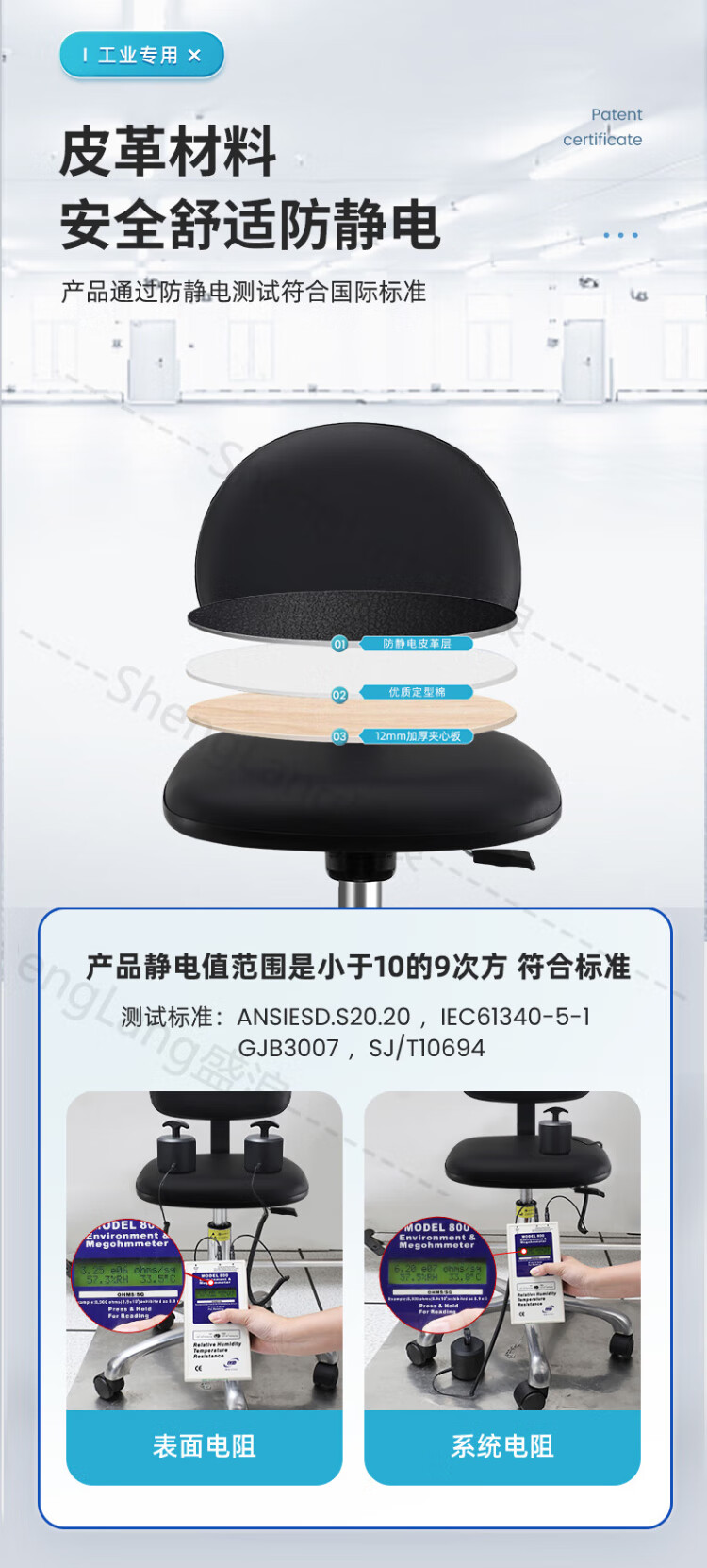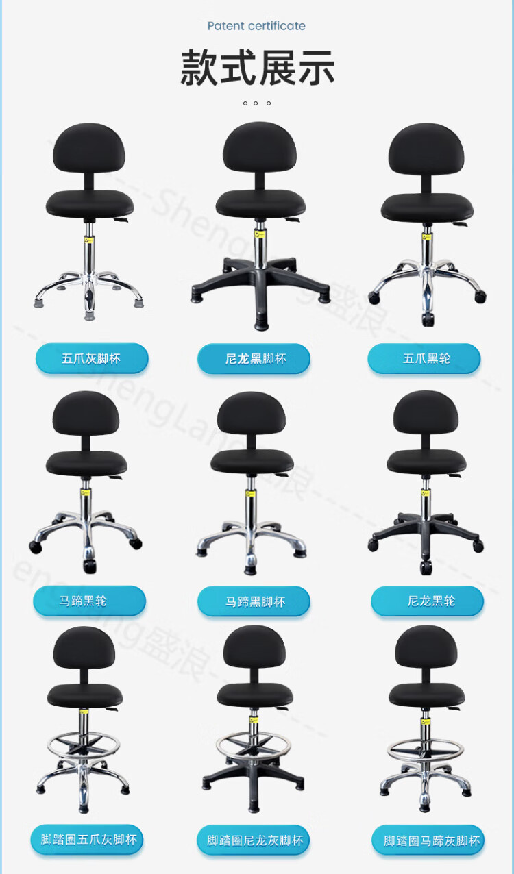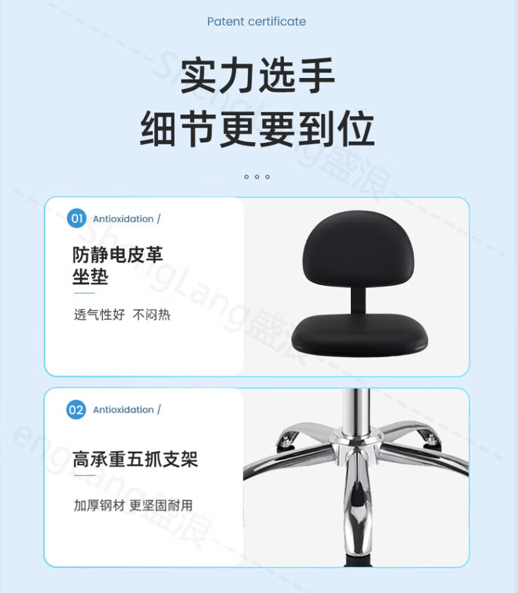 Shenglang Anti-static Chair Leather Operating Chair Laboratory Stool Bar Chair Workshop Work Chair Pulley-Electroplated Steel Claw