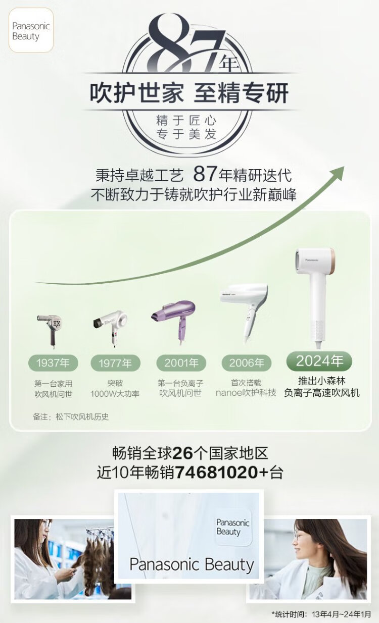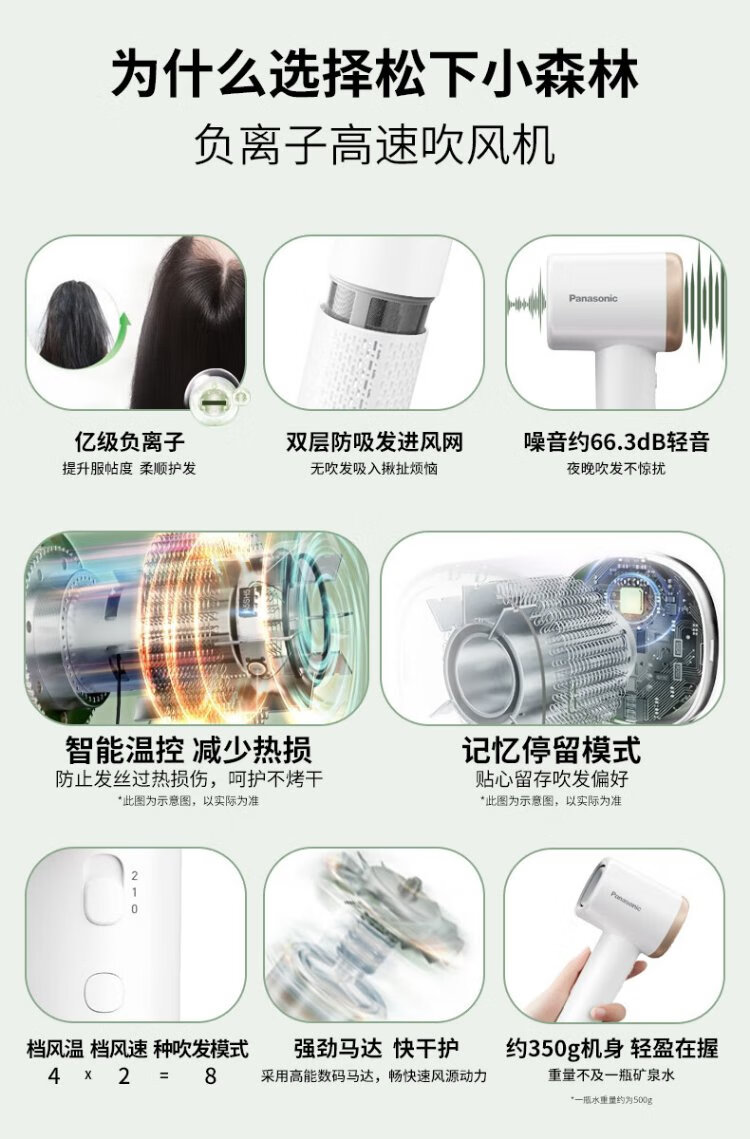 Panasonic National Subsidy Household High-speed Hair Dryer Hair Dryer Barrel High-Power Quick-drying Negative Ion Temperature Control Send Girlfriend Gift Little Forest EH-NE6L