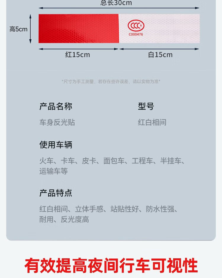 Jizhong Liangli car reflective stickers, truck reflective strips, vehicles, strong reflective warning stickers at night, truck trailers, annual inspections, fluorescent stickers, body reflective strips, 3 meters, 10 sheets