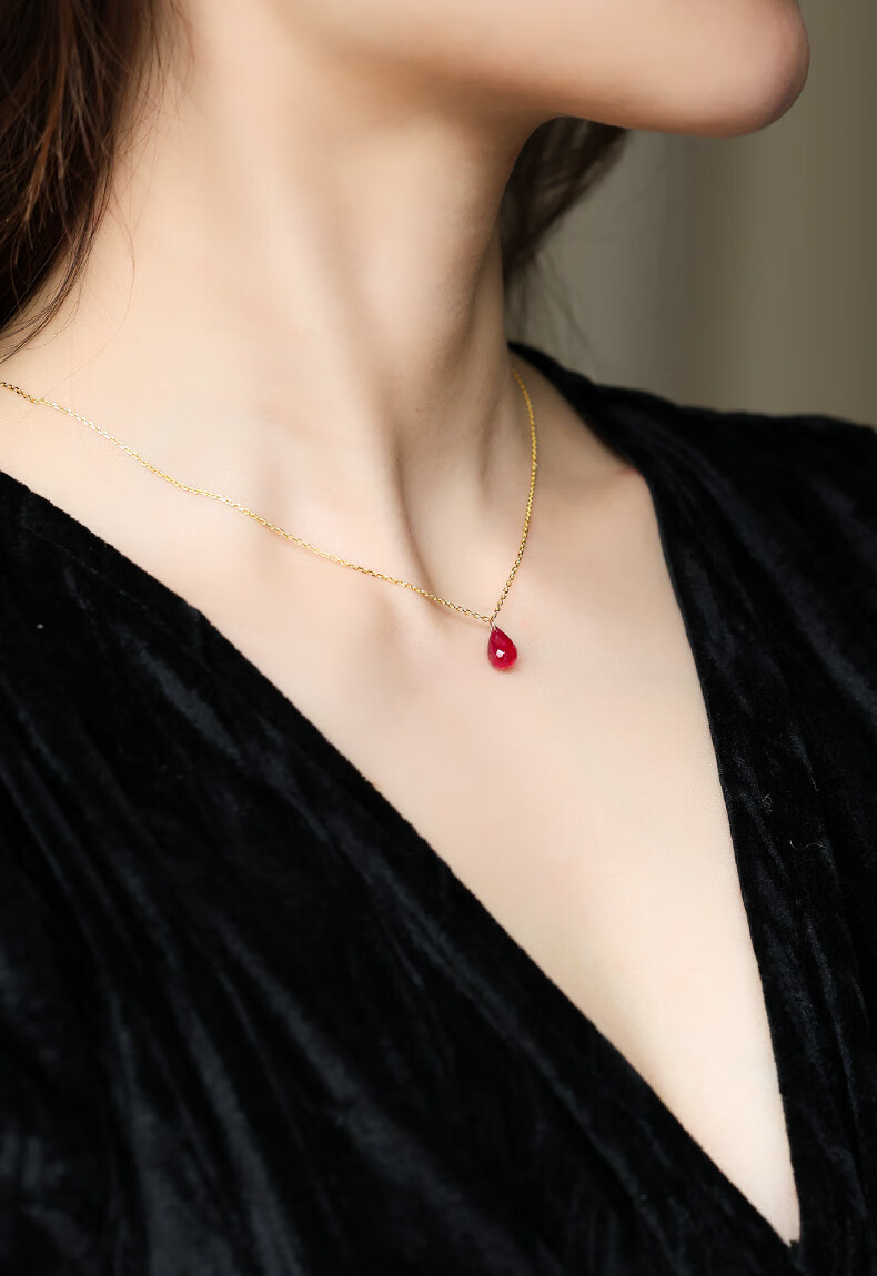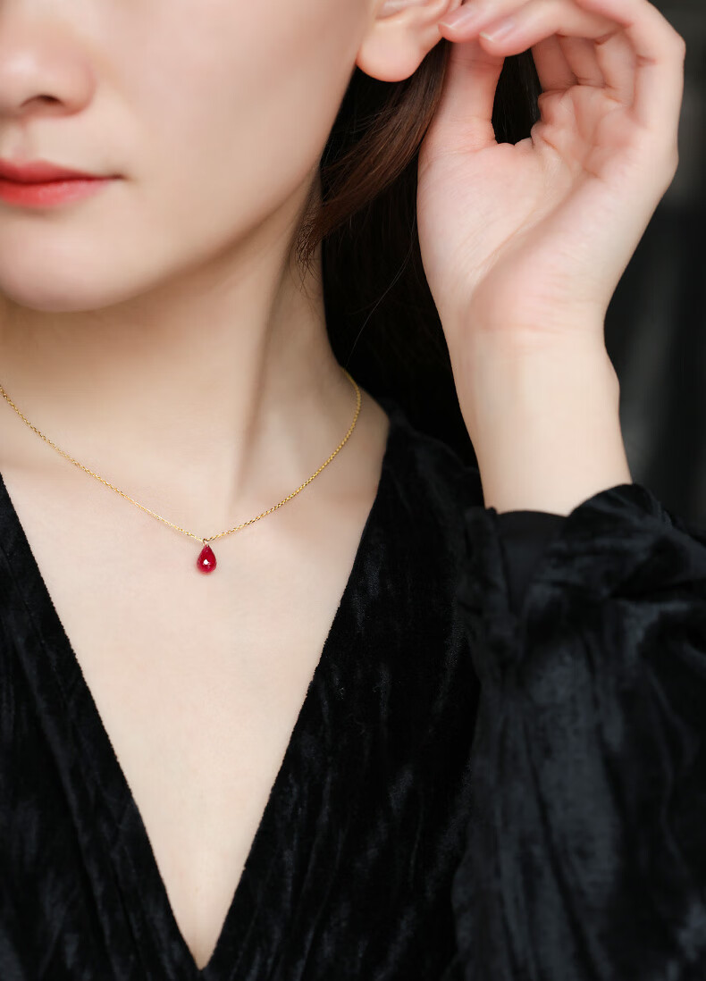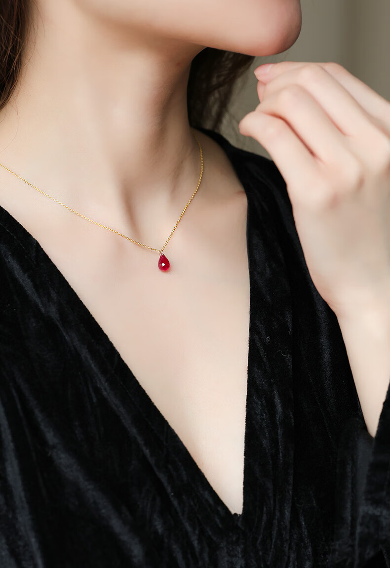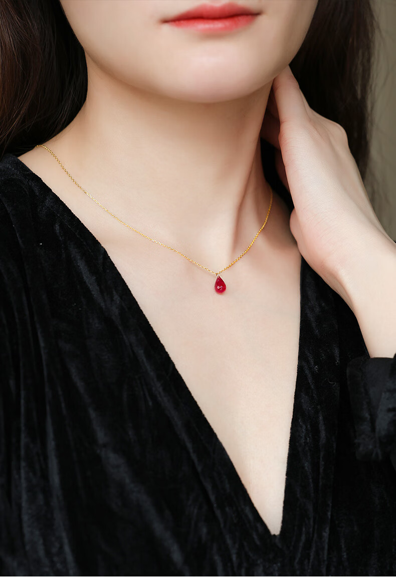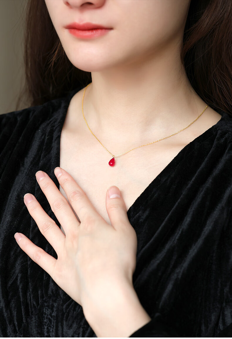 Ruohua (RUOHUA) 4-5mm faceted pigeon blood ruby pendant for women S925 silver color treasure necklace as a birthday gift for girlfriend Ziming