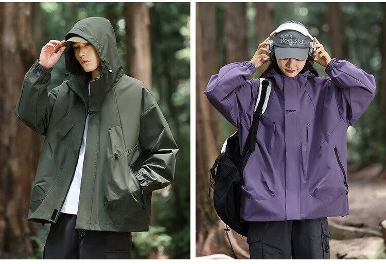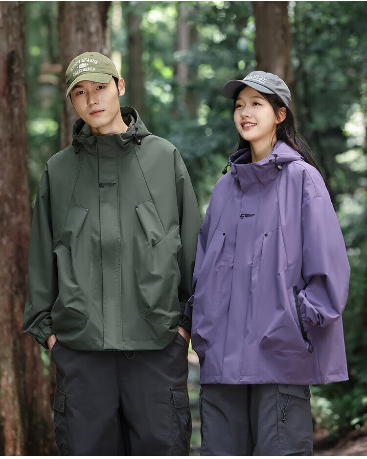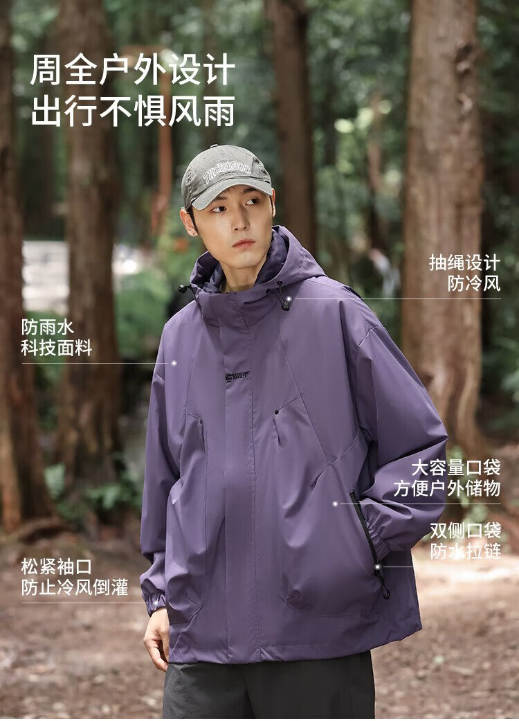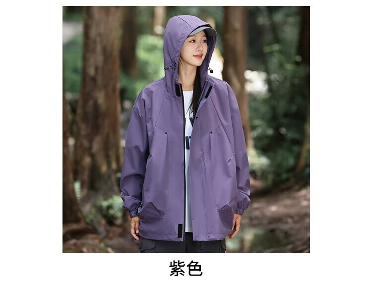 ROMON Jacket Men's and Women's Outdoor Sports Mountaineering Clothes Hooded Jacket Windproof Waterproof Windbreaker Purple M