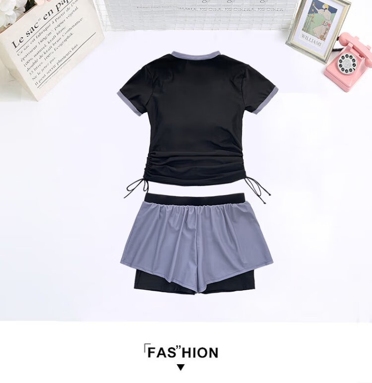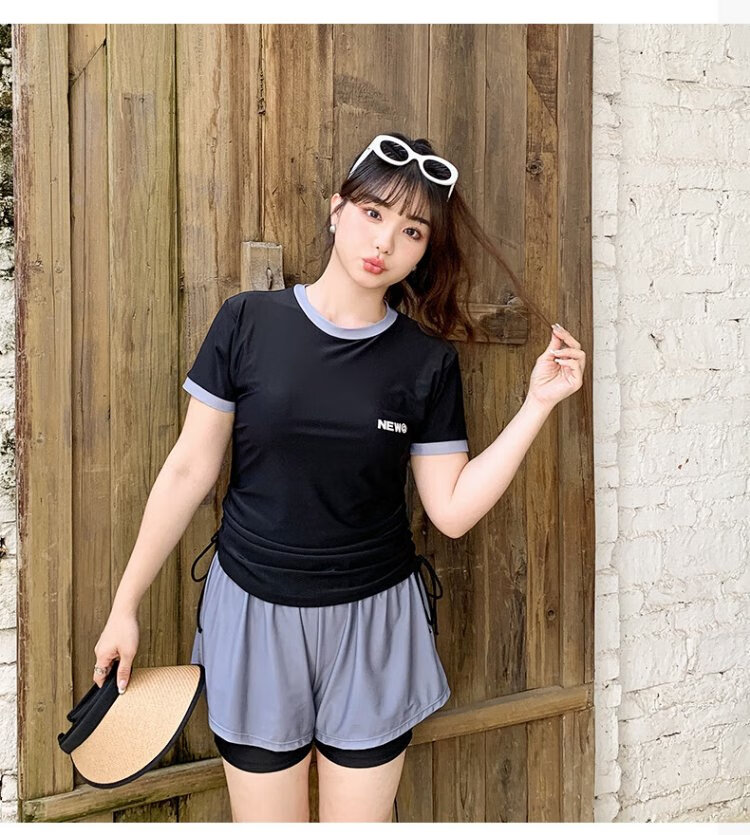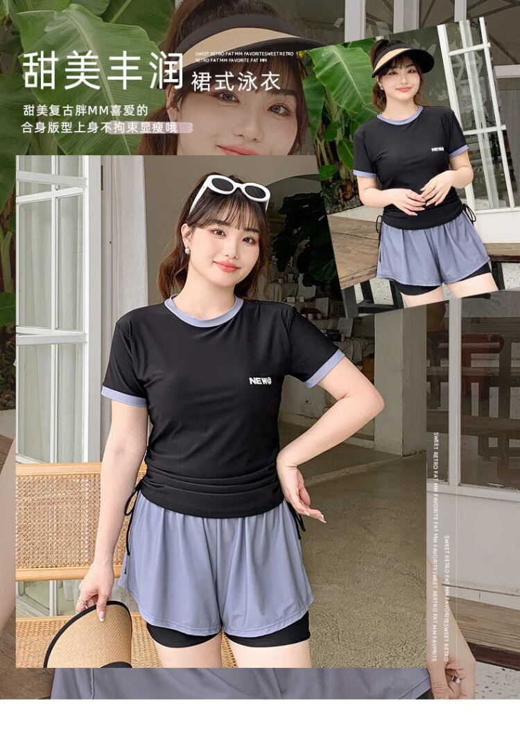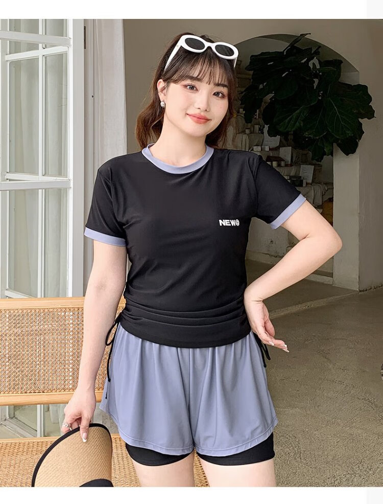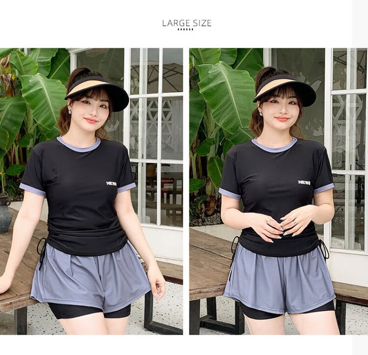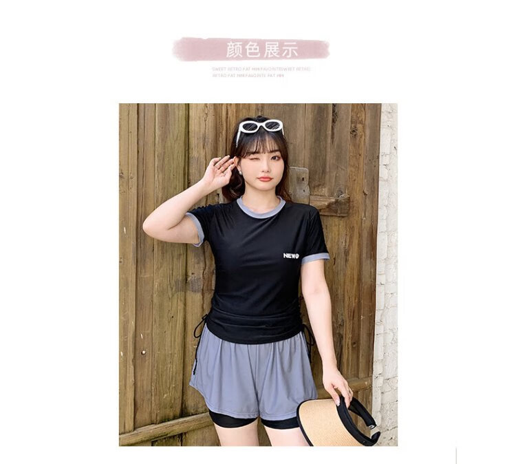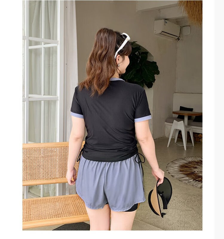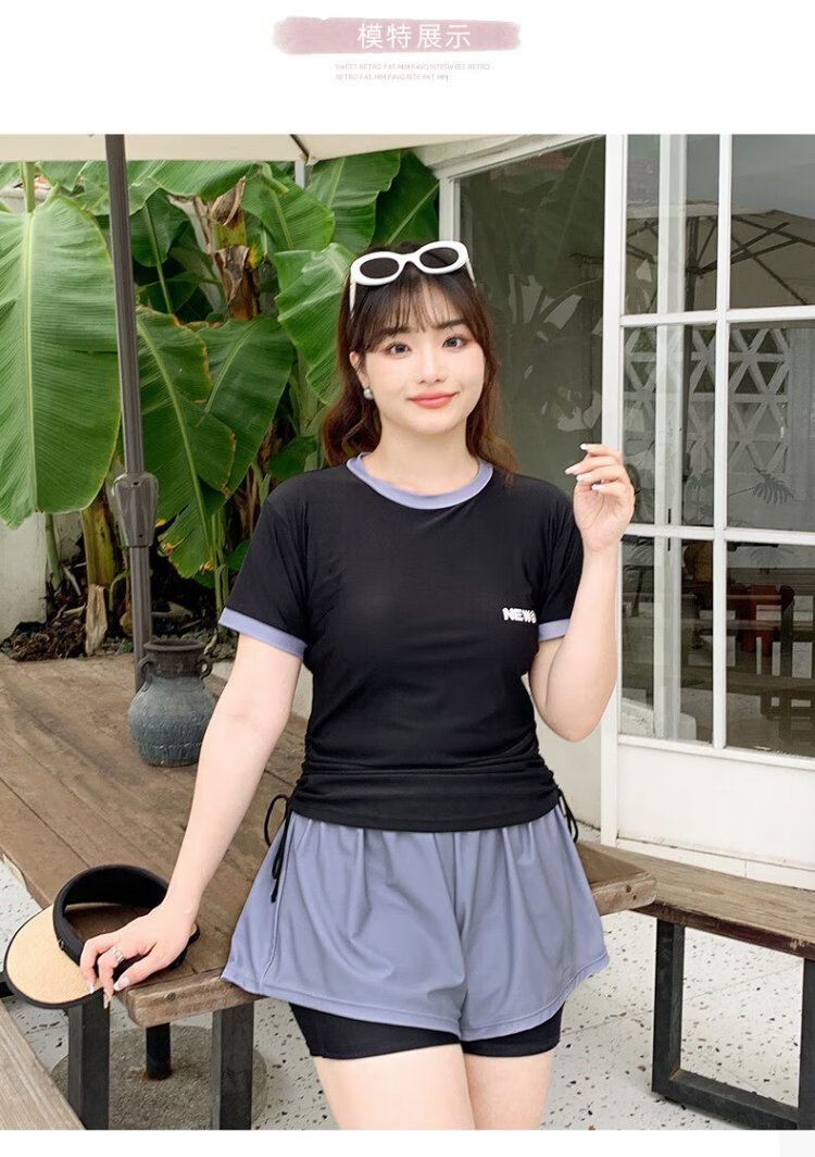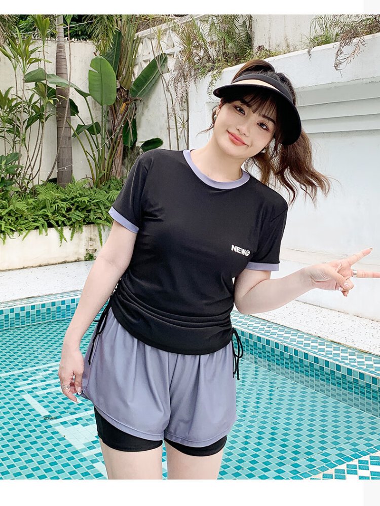 Yu Zhaolin sports swimsuit women's short-sleeved large size fat mm sports splicing color split conservative belly-covering slimming swimsuit