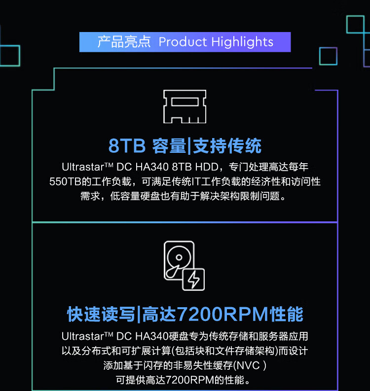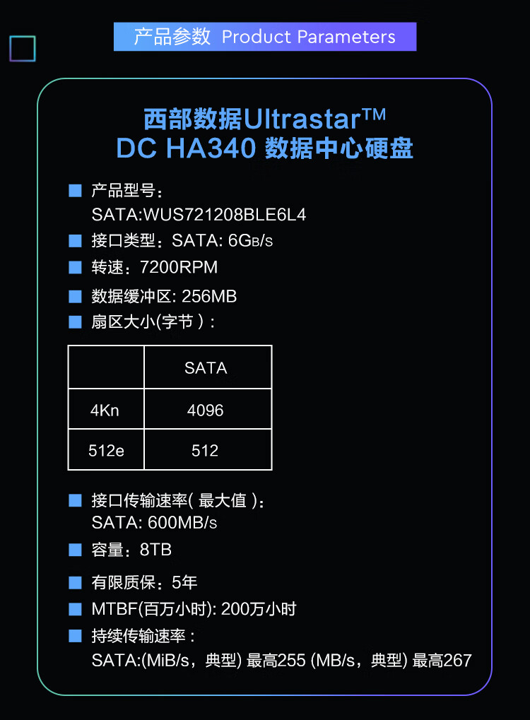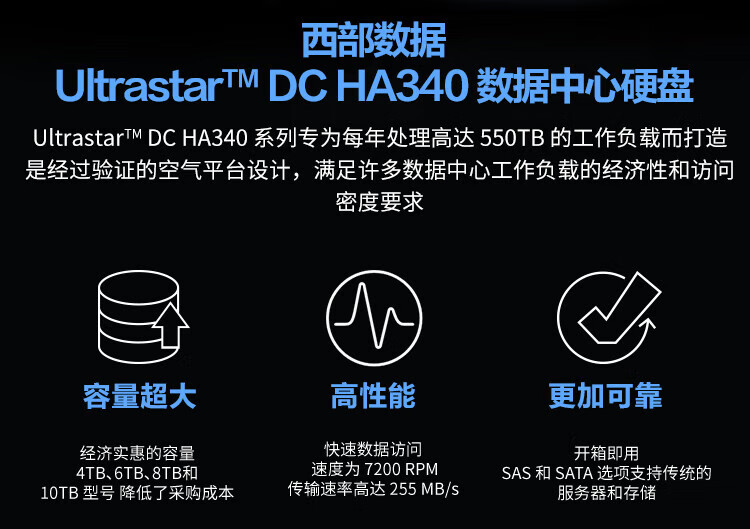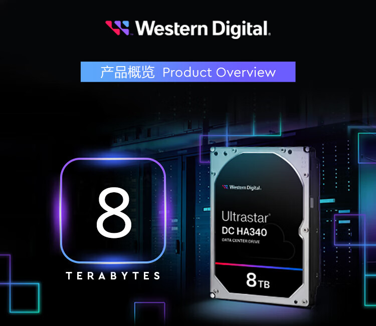 Western Digital (WD) 8TB enterprise-class mechanical hard drive DC HA340 SATA 7200 rpm 256MB CMR vertical server hard drive 3.5-inch WUS721208BLE6L4