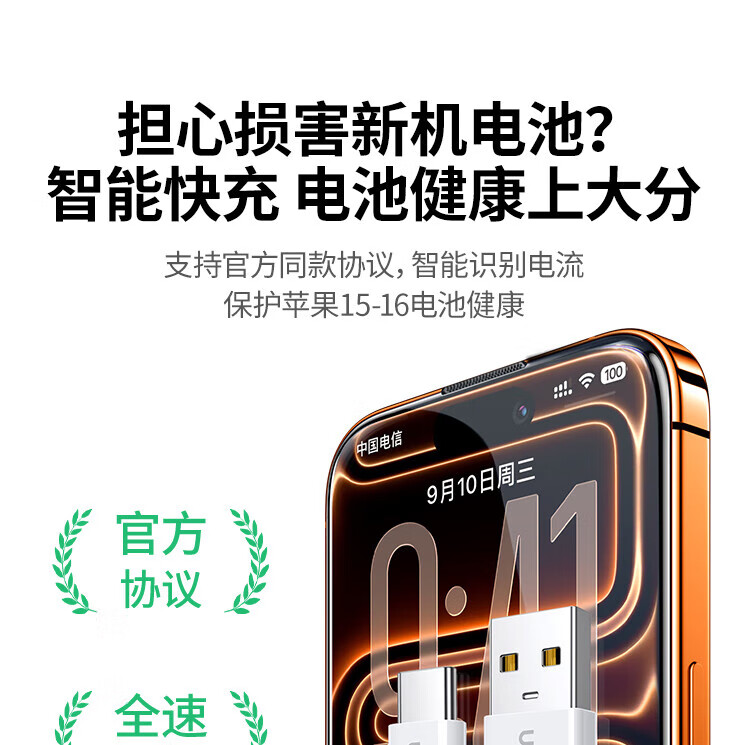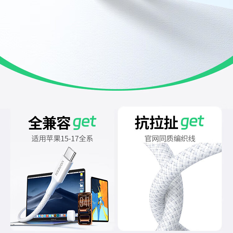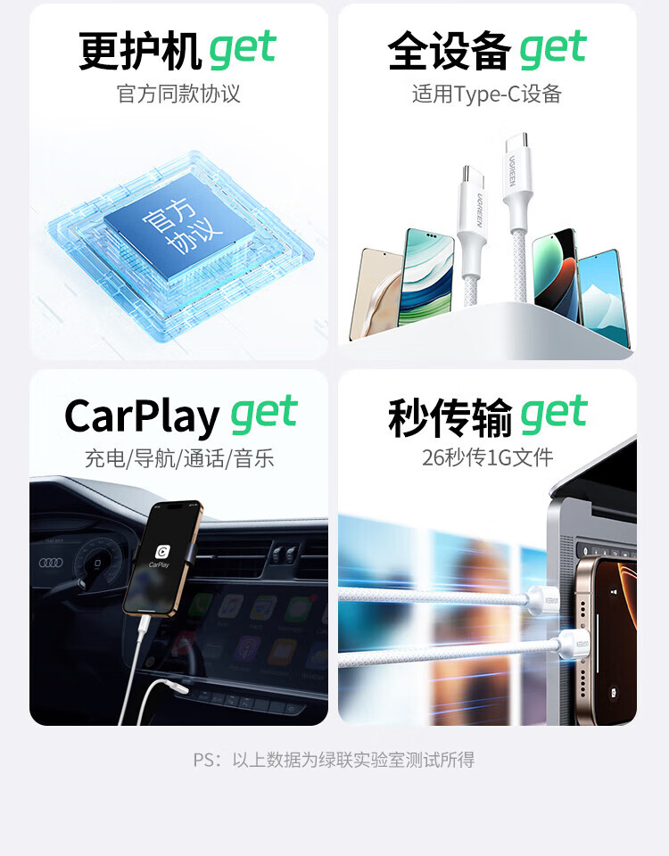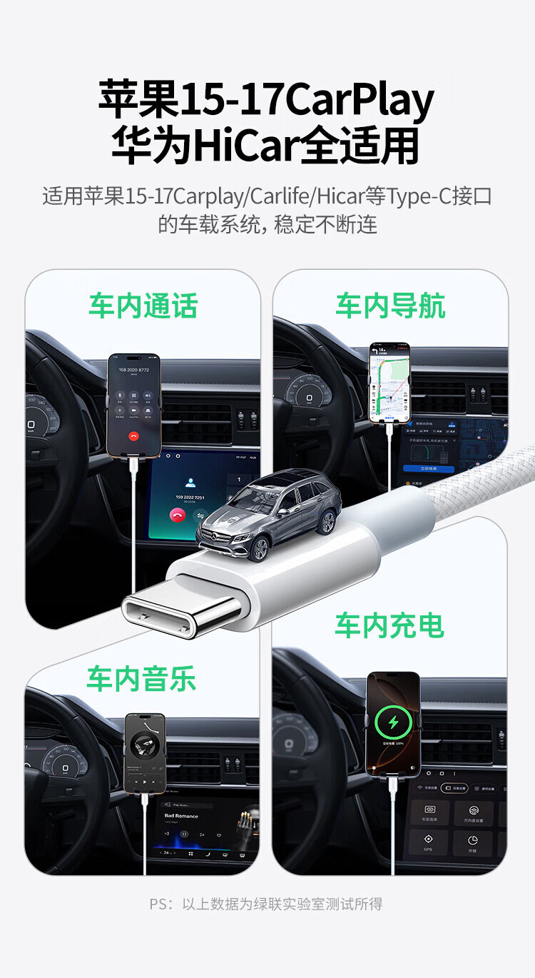 Greenlink is suitable for Apple 17/16/15 charging cable Type-C data cable USB-C car CarPlay cable iPhone 17/16e/15ProMax Huawei Honor fast charging cable 1 meter