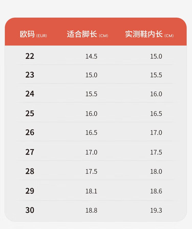 Length (cm) 22.8 23.1 23.5 24.1 24.5 25.1 25.7 26 26.7 27.3 27.9 28.6 29.2