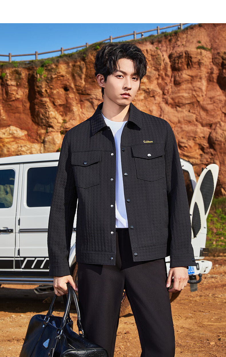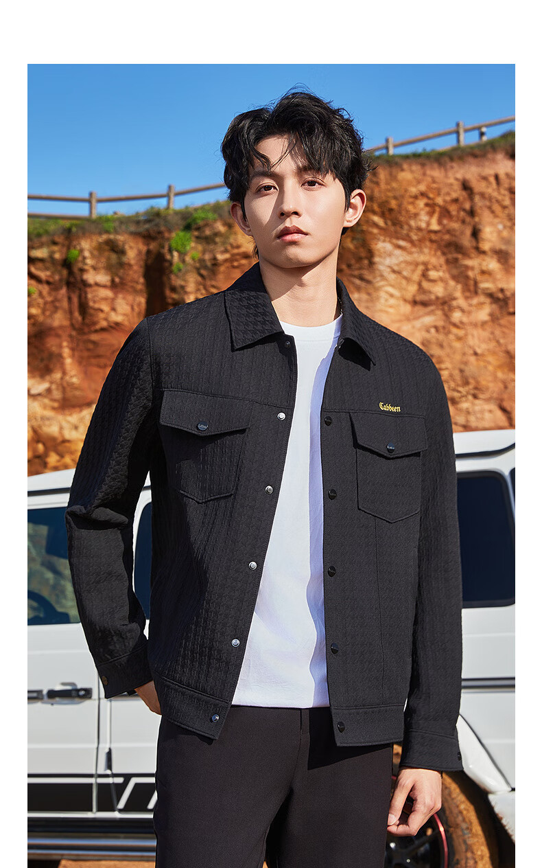 Carbine houndstooth textured jacket 24 autumn coat LOGO embroidered street anthracite 01 50