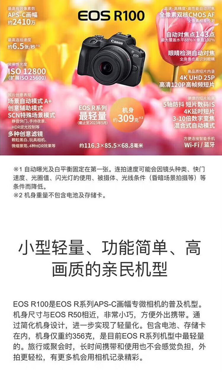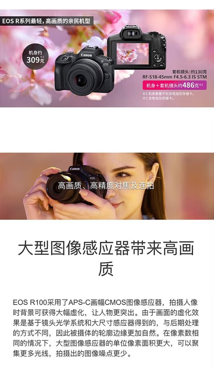 Canon r100 entry-level mirrorless camera Vlog shooting 4K high-definition video selfie photo half-frame mirrorless student travel home basic shooting kit