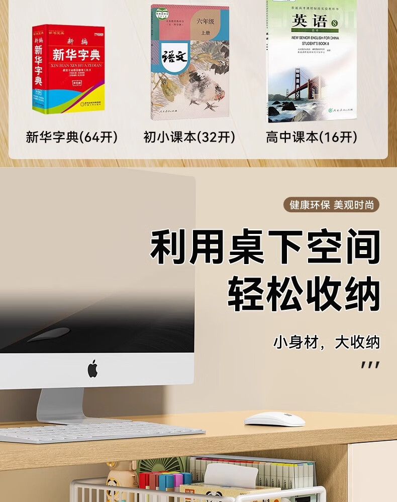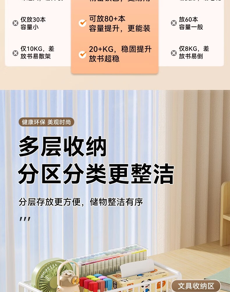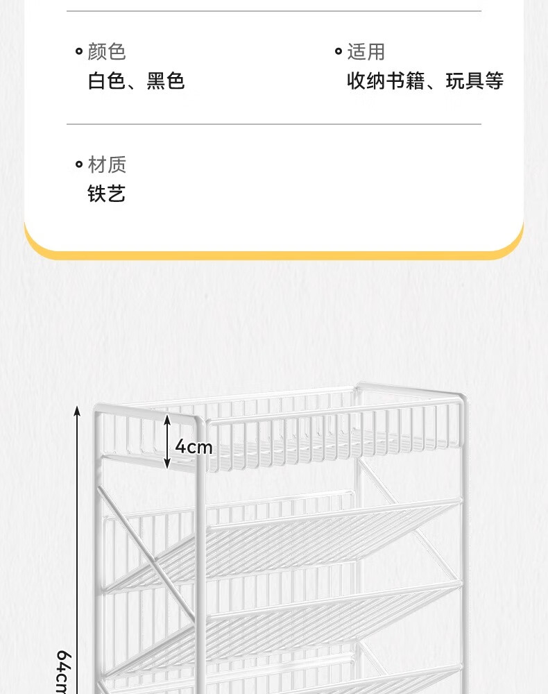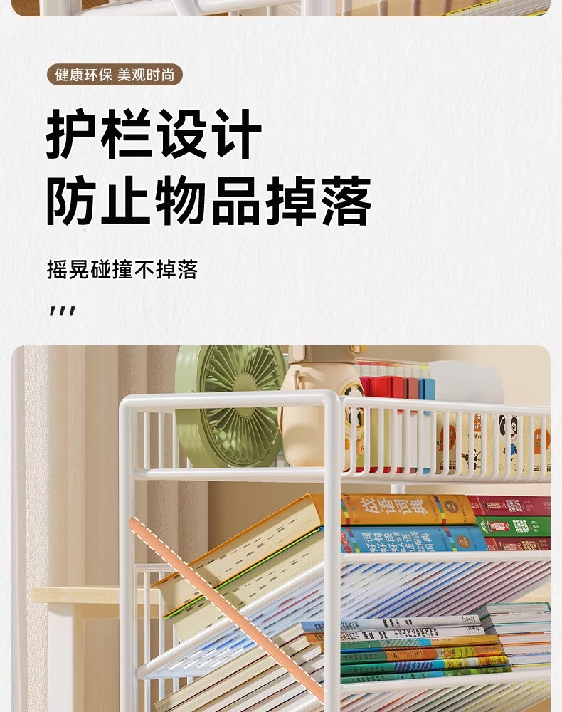 Jungle movable tableside storage small bookshelf classroom desk student books wheeled storage rack bookshelf five-layer white