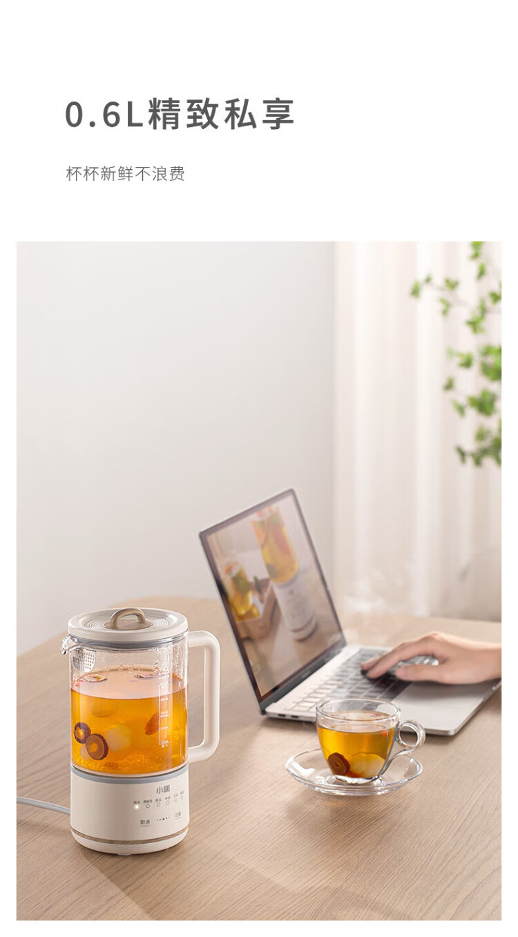 Small mini health pot health cup office small capacity scented tea small single person glass teapot mini desktop 0.6L boiling water stewing insulation integrated constant temperature YSH01