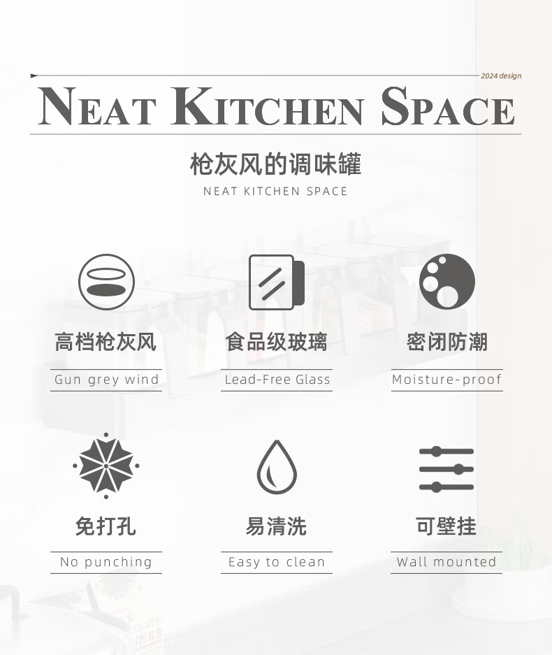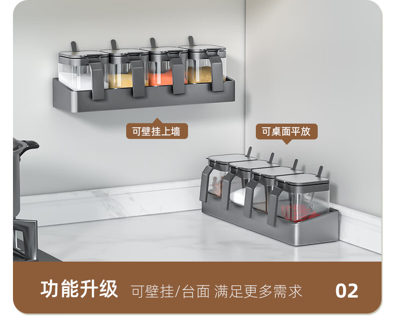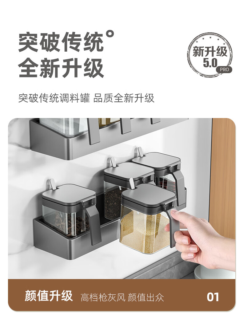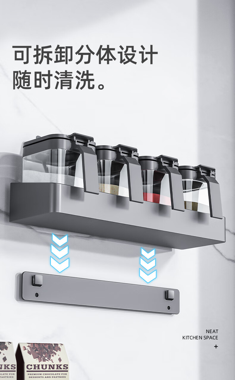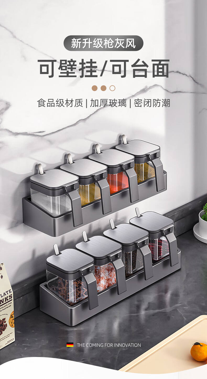 Newair seasoning box storage rack combination set seasoning jar bottle storage rack home kitchen wall hanging salt shaker sealed and moisture-proof