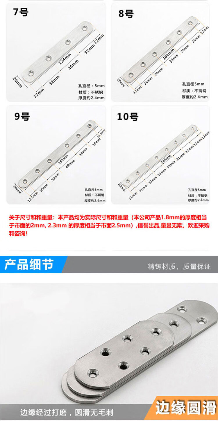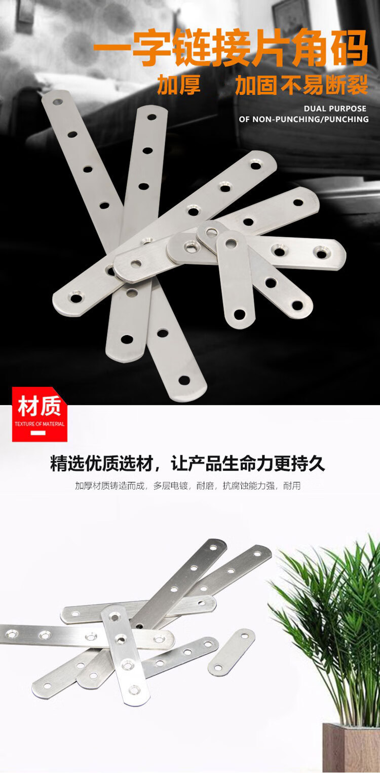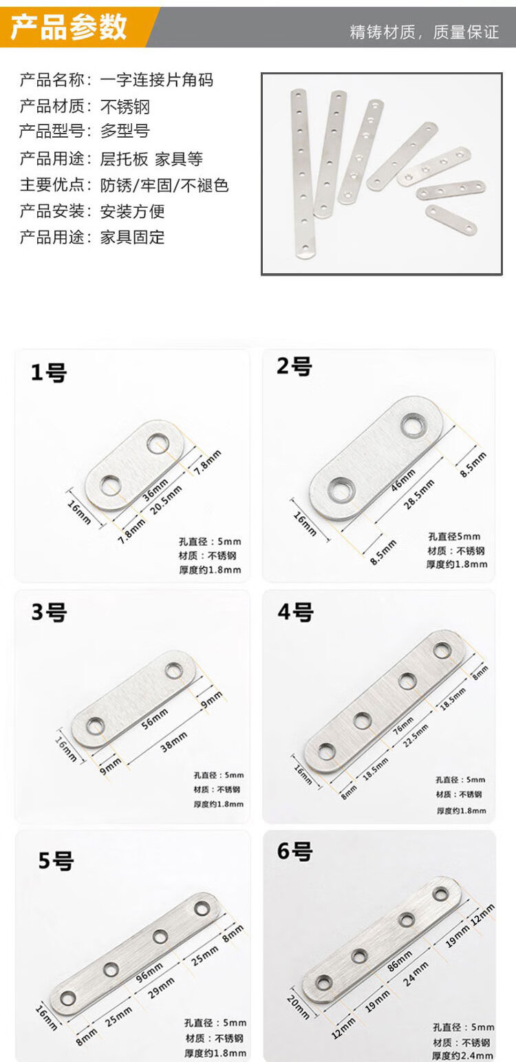 Bingyu bx-13 stainless steel straight piece corner code straight fastening connector 10 pieces (with screws) No. 1 and 2 holes 36*16mm (thickness 1.8mm)