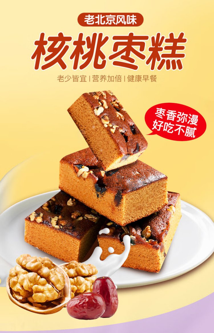 Maisuyuan Old Beijing date cake, red dates, walnut cake, bread, breakfast biscuits, cakes, snacks, snacks, Beijing specialty 2Jin Jin is equal to 0.5 kg