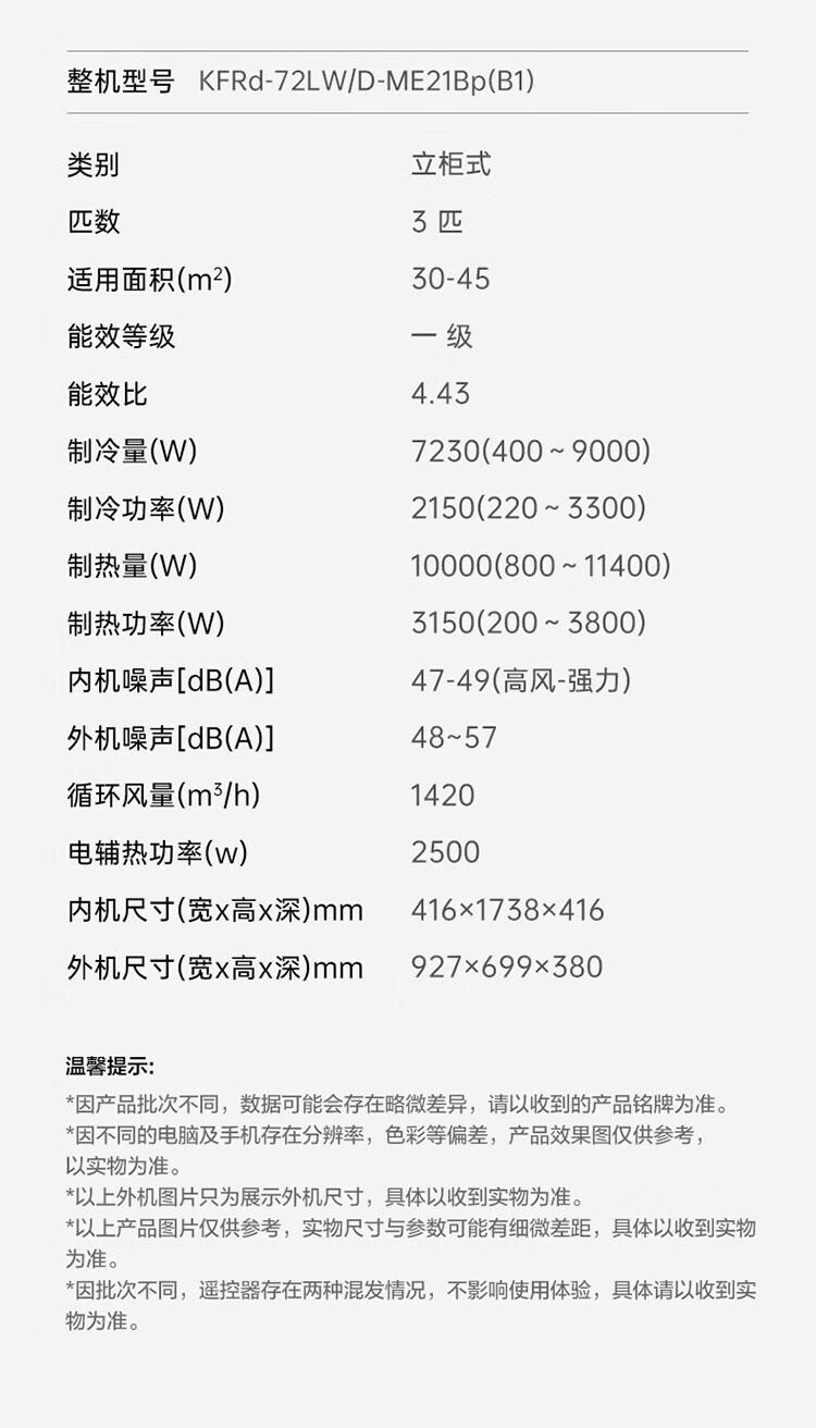 TCL air conditioner 3 new level energy efficiency energy saving frequency conversion cooling and heating smart air conditioning vertical air conditioning cabinet KFRd-72LW/D-ME21Bp (B1) trade-in national subsidy