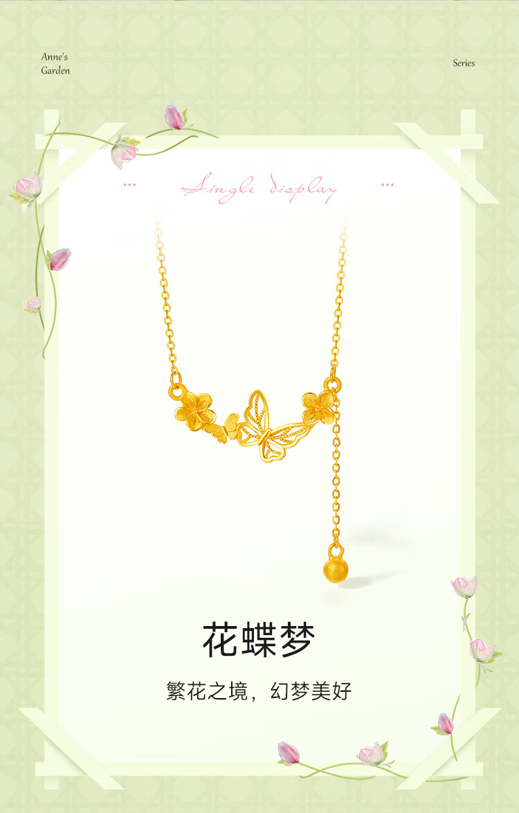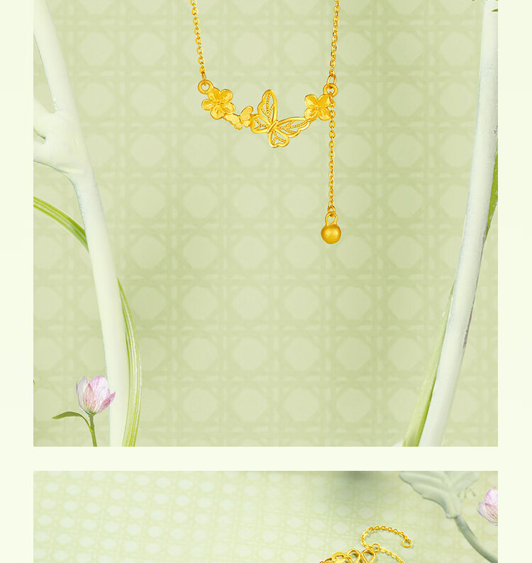 Saturday Bliss Butterfly Dream Pure Gold 999 Gold Necklace Pendant for Women Price A0613053 Approximately 3.82g 40+5cm Gift