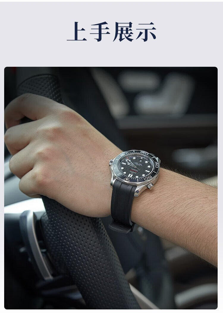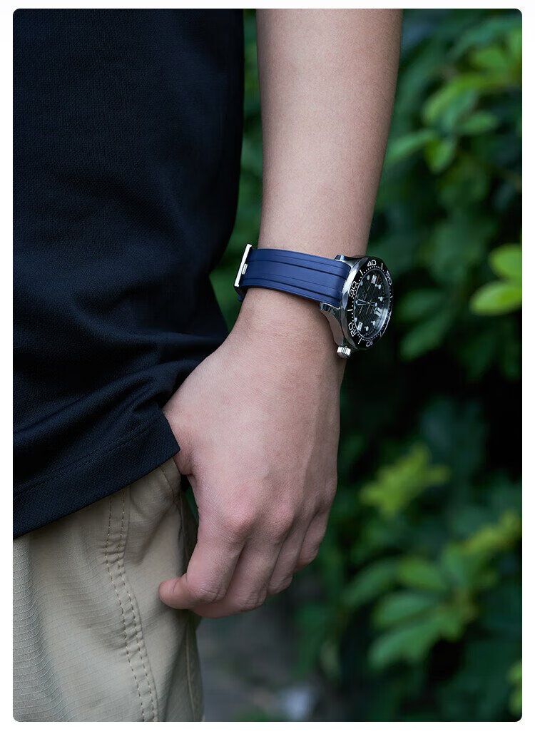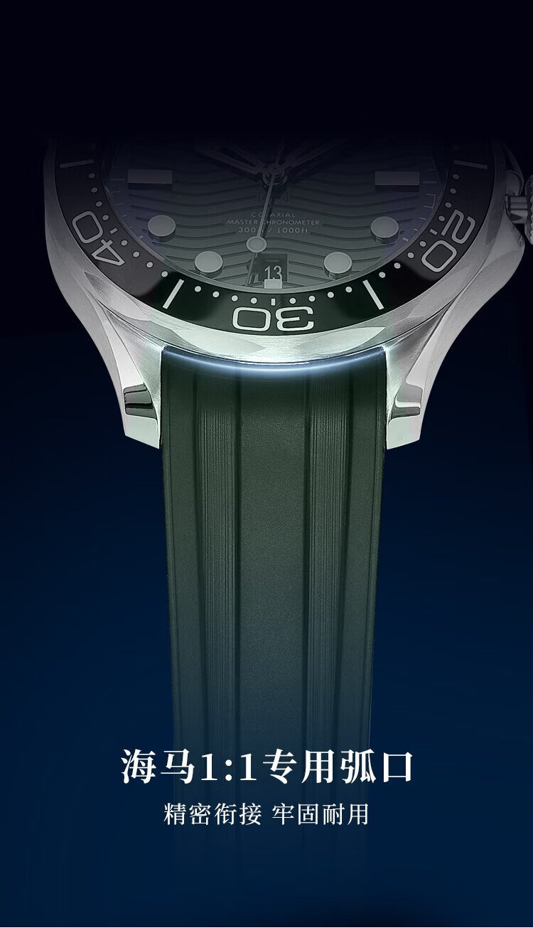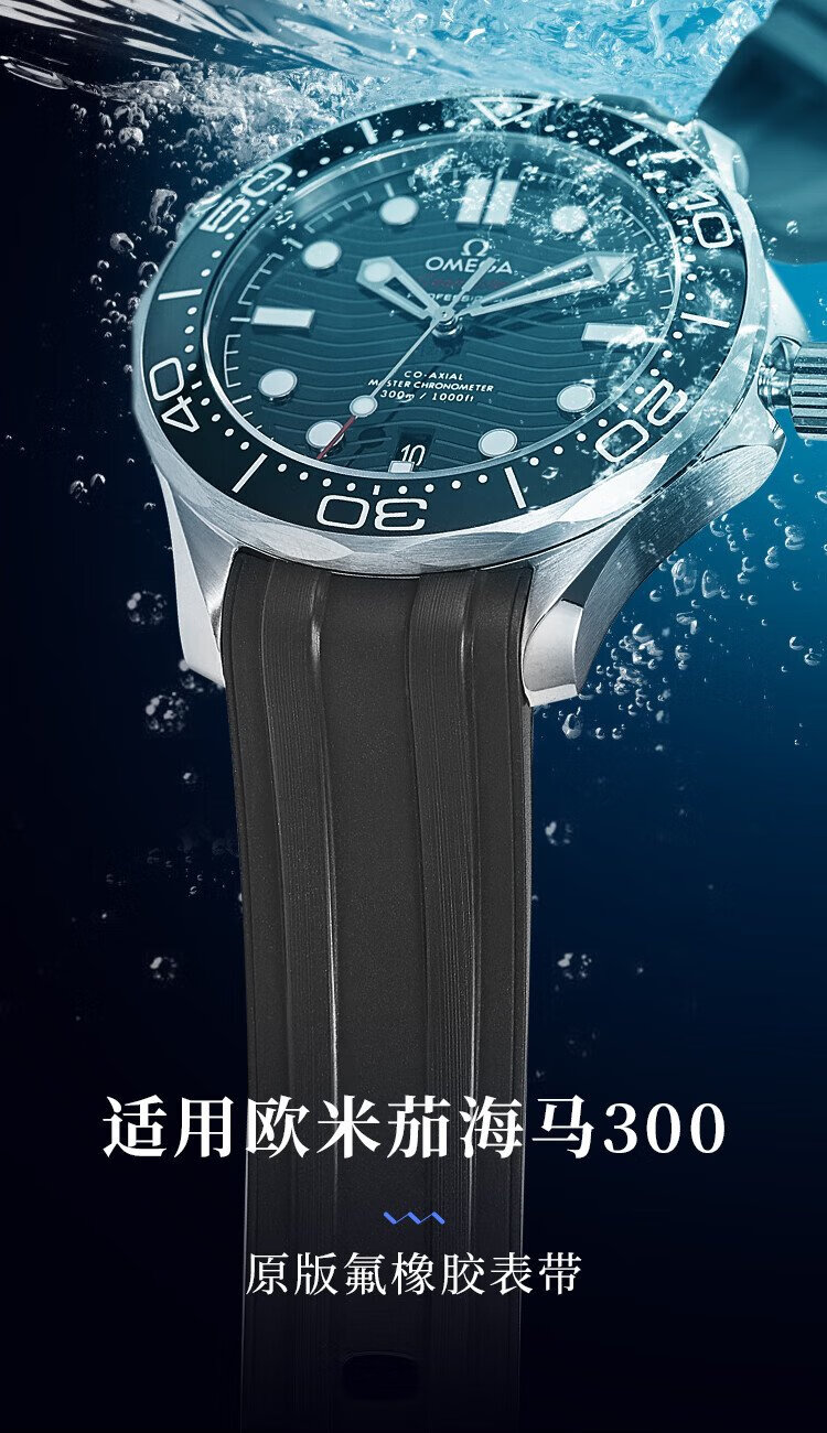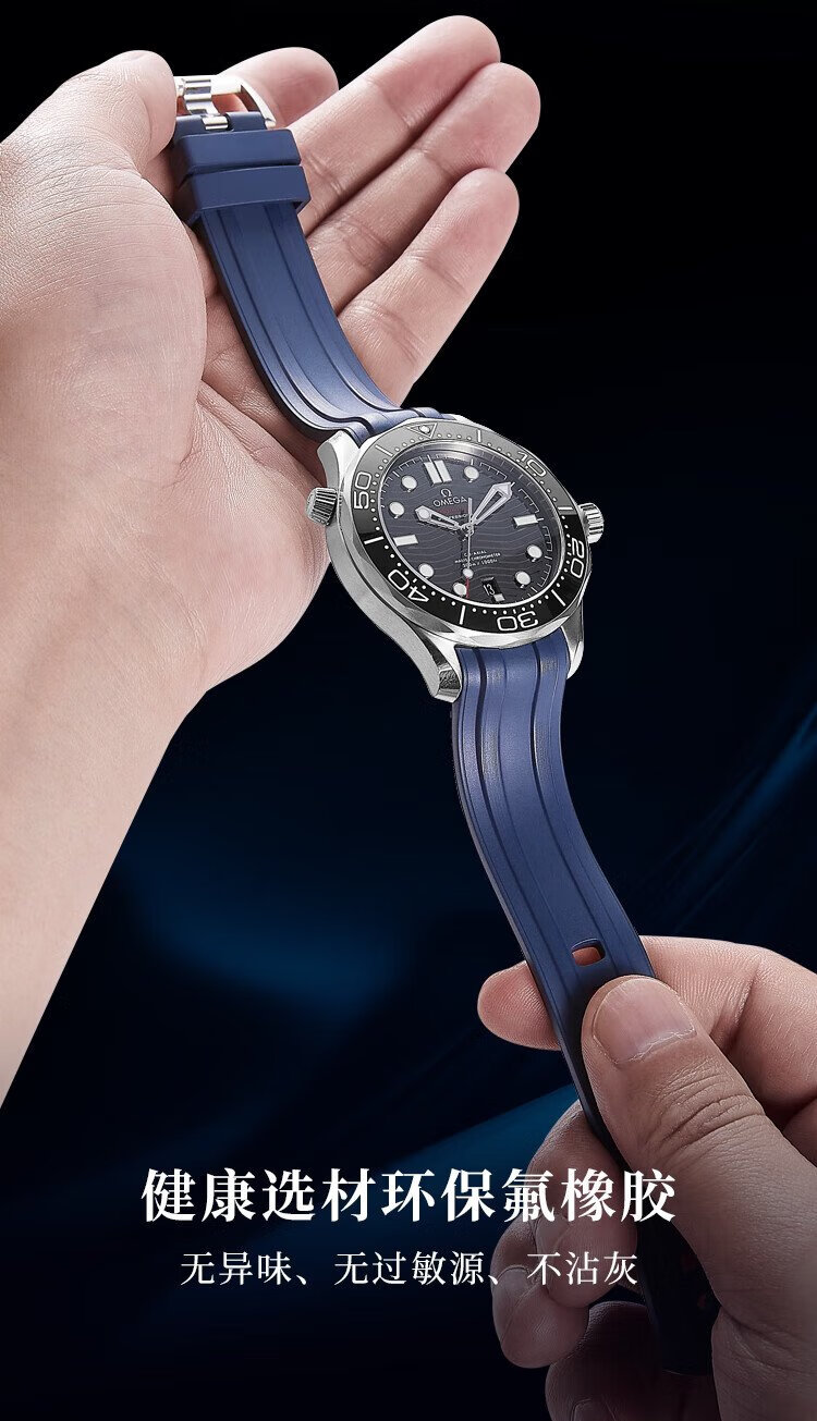 Istrap is suitable for Omega strap Seamaster 300m diving watch Black Warrior men's curved fluororubber watch strap