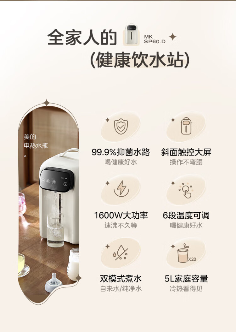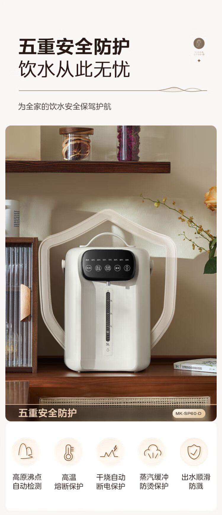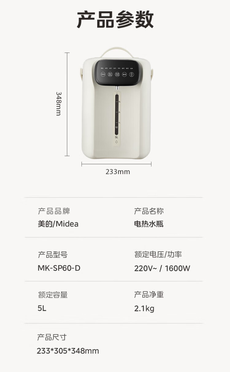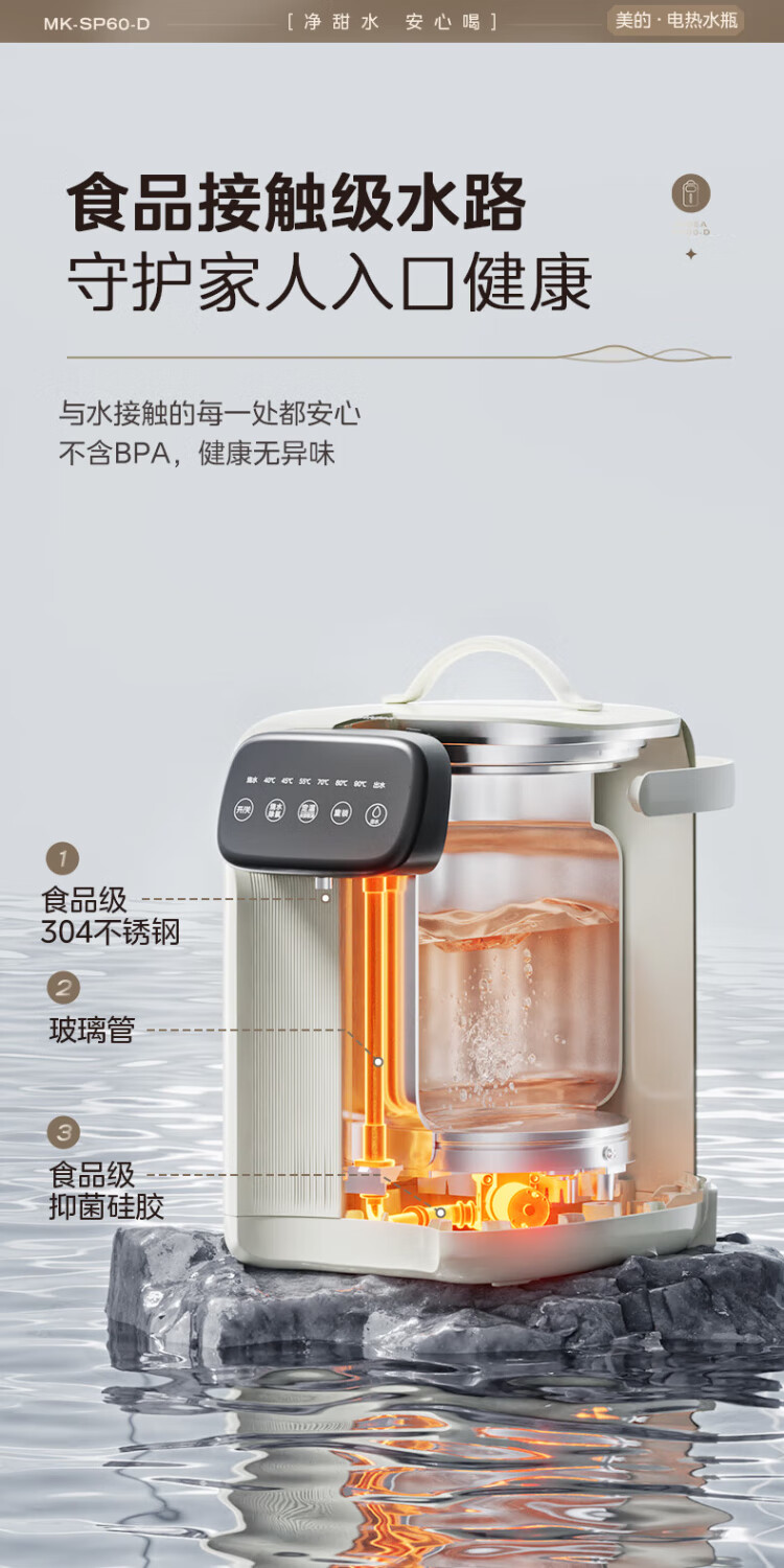 Midea electric thermos stainless steel kettle thermos multi-stage temperature control insulation constant temperature kettle electric kettle kettle state subsidy MK-SP60-D
