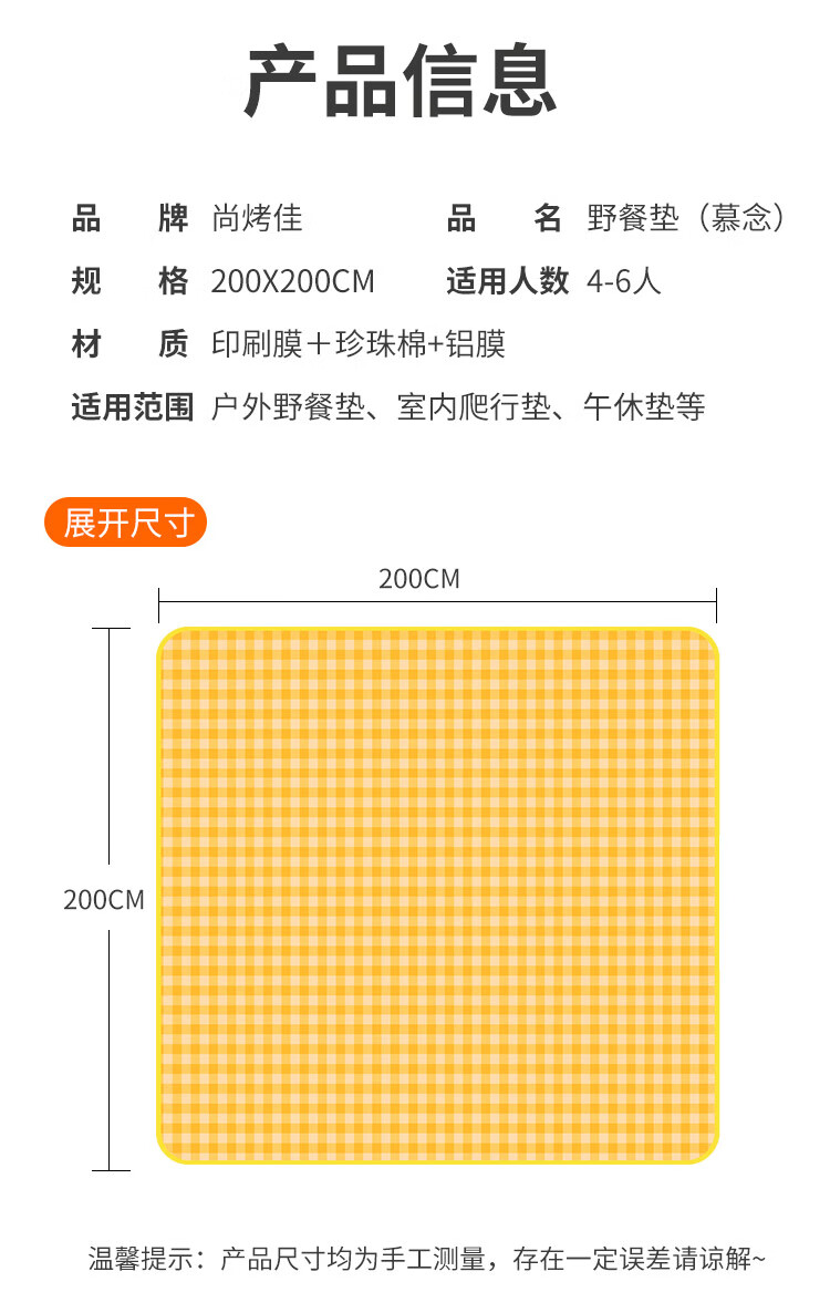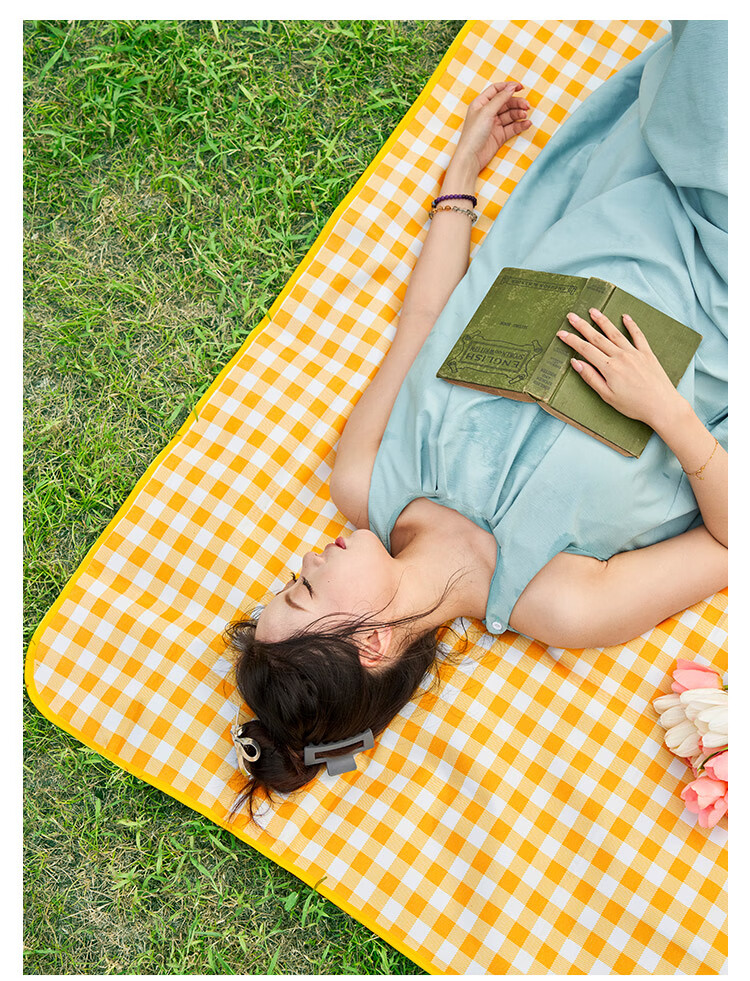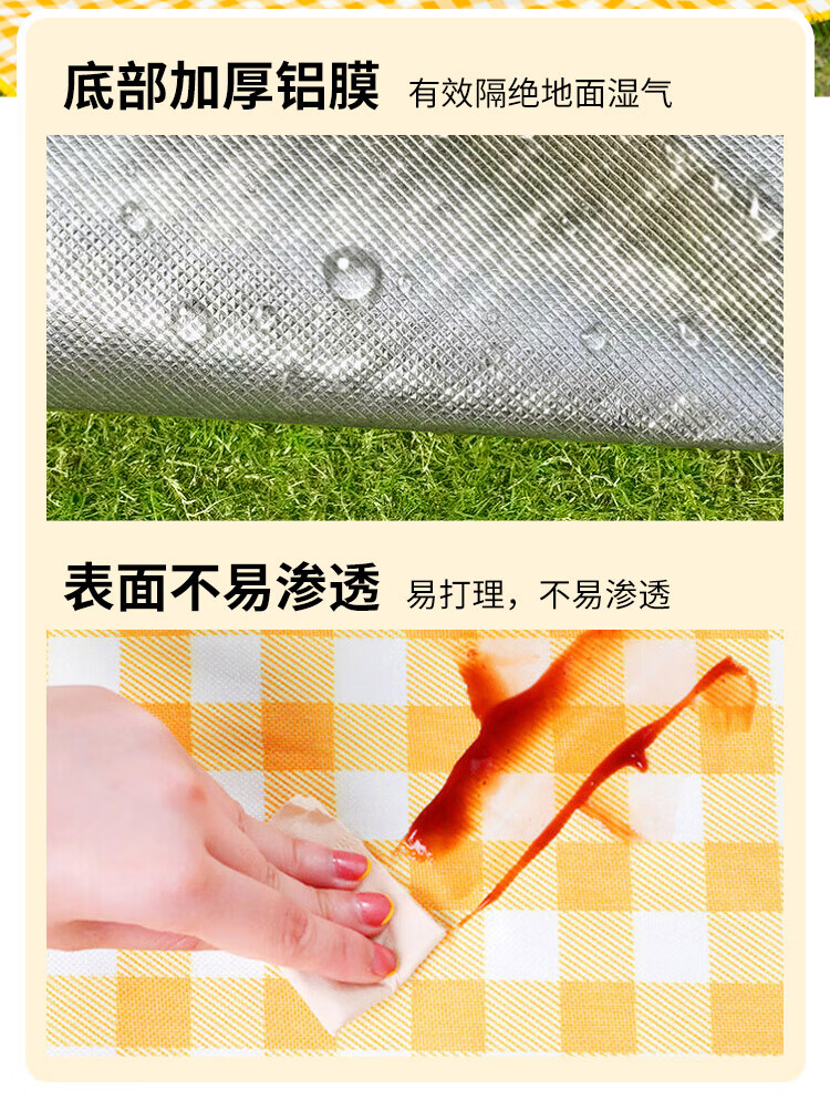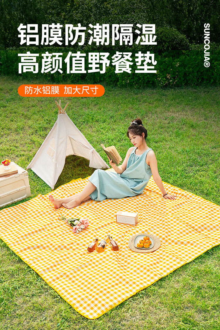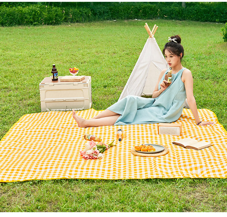 Suncojia picnic mat, moisture-proof mat, yellow and white checkered beach mat, tent moisture-proof crawling mat 2*2 meters