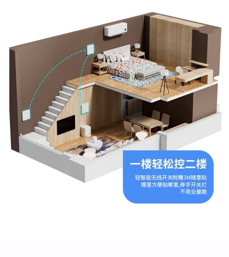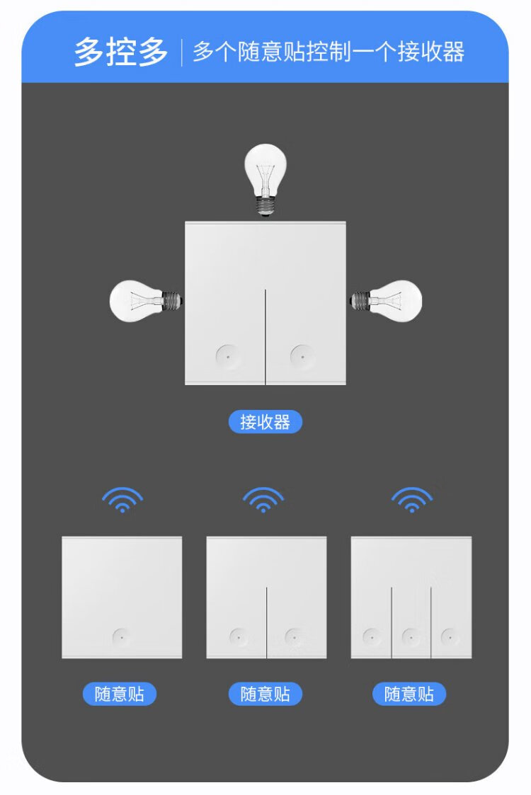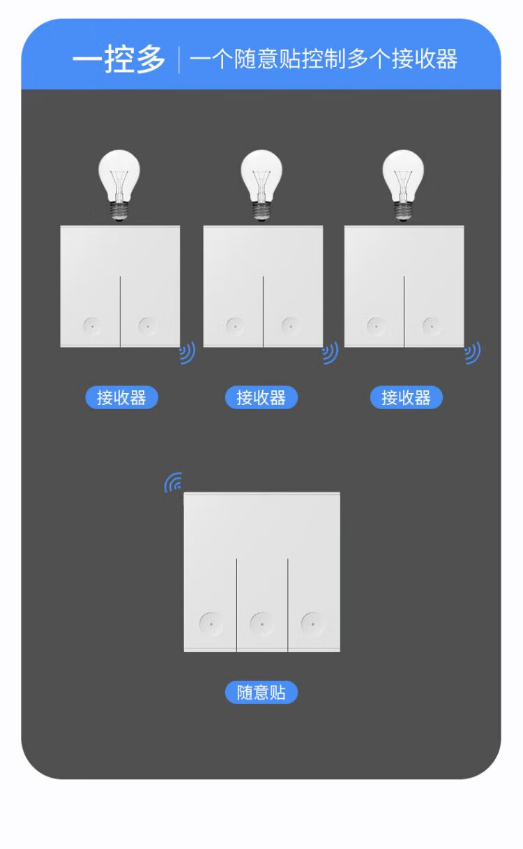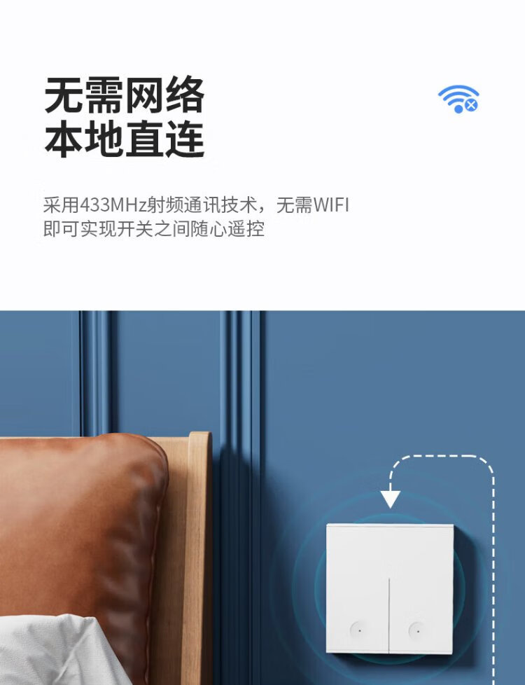 International electrician wireless switch remote control socket panel wall remote smart mother-in-law dual-open dual-control wiring-free bedroom free to stick white one-open set free AA battery