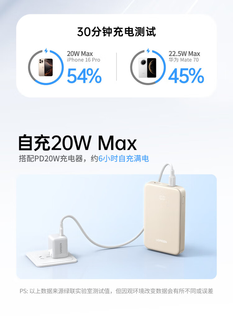 Green Alliance 3C certified, can be used on airplanes, power bank 20000 mAh 22.5W fast charging, large capacity mini compact portable power bank suitable for Apple 17Pro Xiaomi Huawei